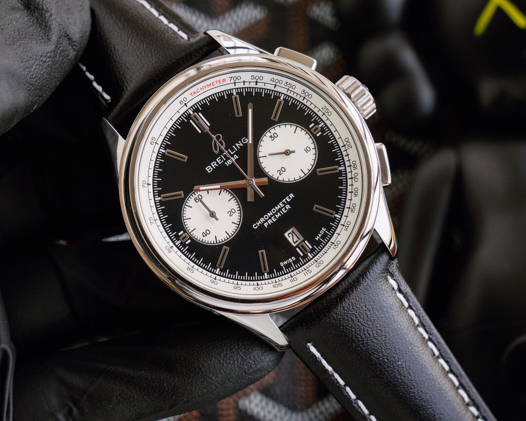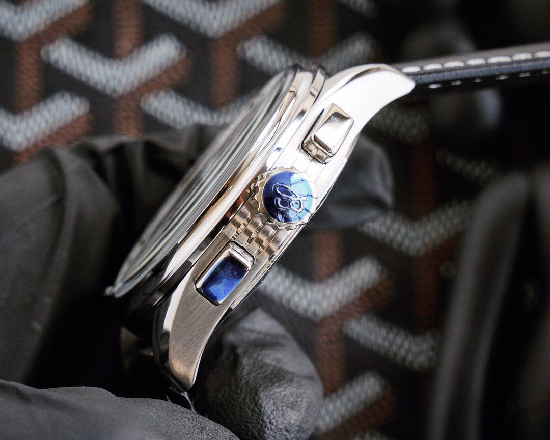这款手表是AAAAA 1:1 质量 (非常棒). 使用了和原版一模一样的材料. 商标部分也保持了和Breitling一样. 图片拍摄是实物手表拍摄, 您所收到的实物保证和我们图片一模一样.