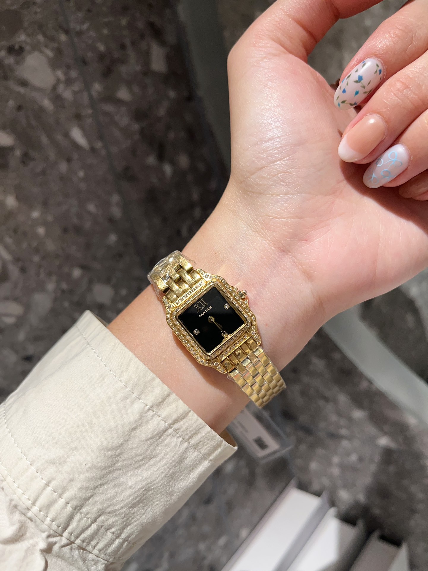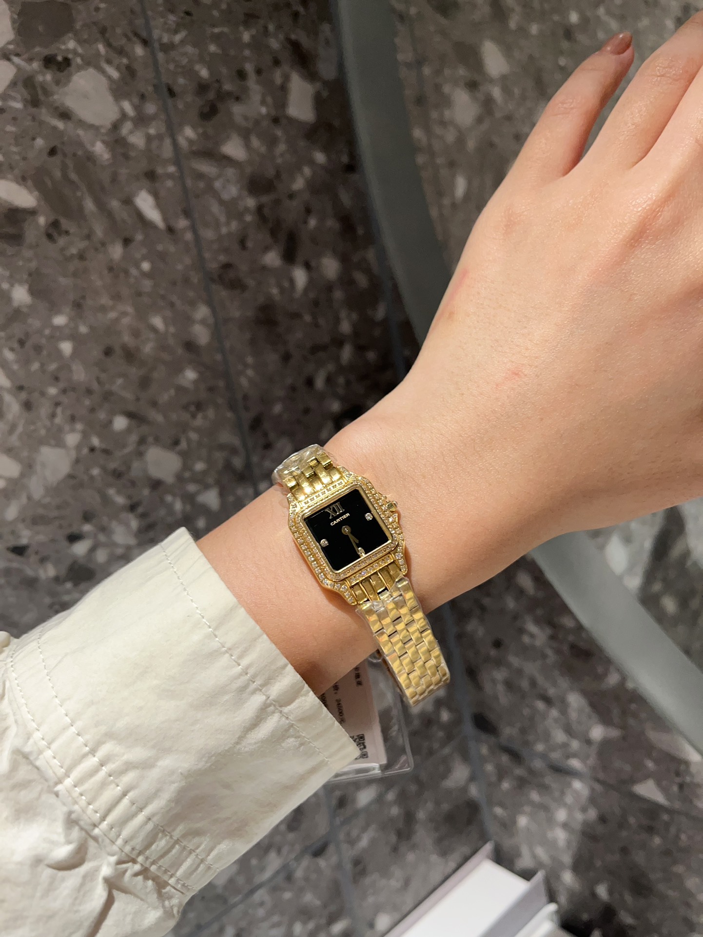 这款手表是AAAAA 1:1 质量 (非常棒). 使用了和原版一模一样的材料. 商标部分也保持了和卡地亚/Cartier一样. 图片拍摄是实物手表拍摄, 您所收到的实物保证和我们图片一模一样.