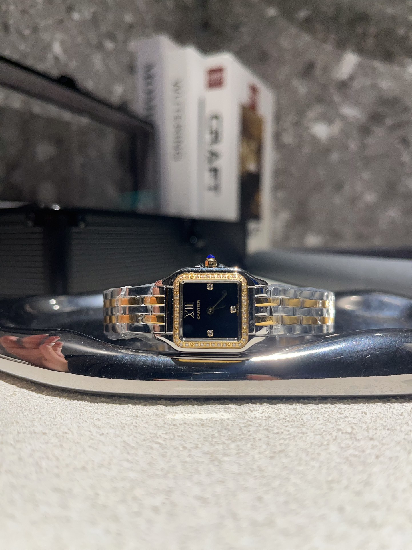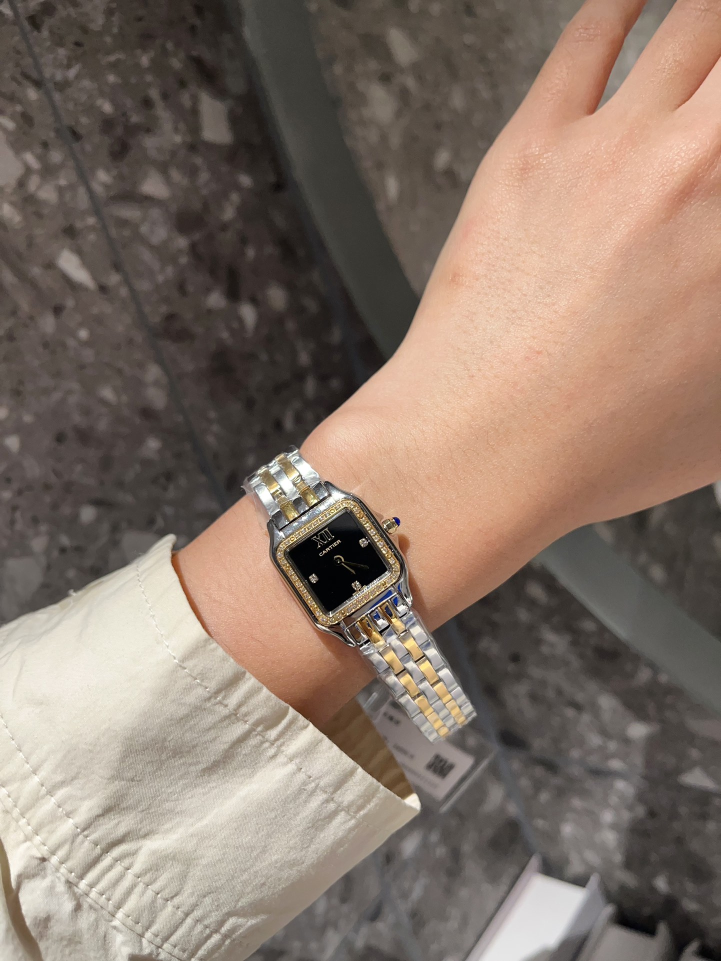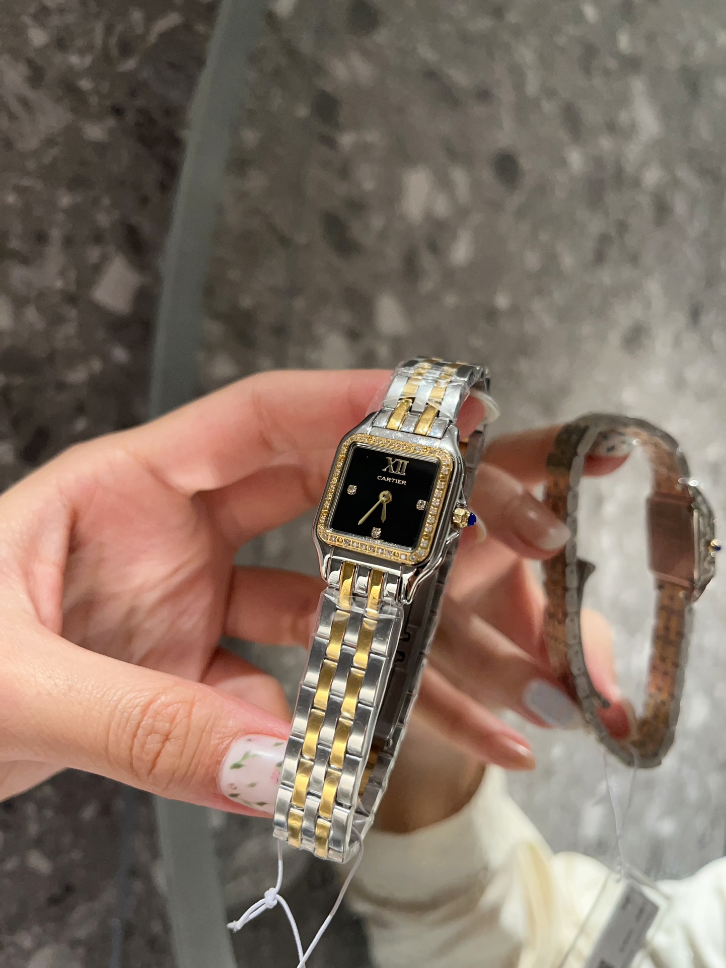 这款手表是AAAAA 1:1 质量 (非常棒). 使用了和原版一模一样的材料. 商标部分也保持了和卡地亚/Cartier一样. 图片拍摄是实物手表拍摄, 您所收到的实物保证和我们图片一模一样.
