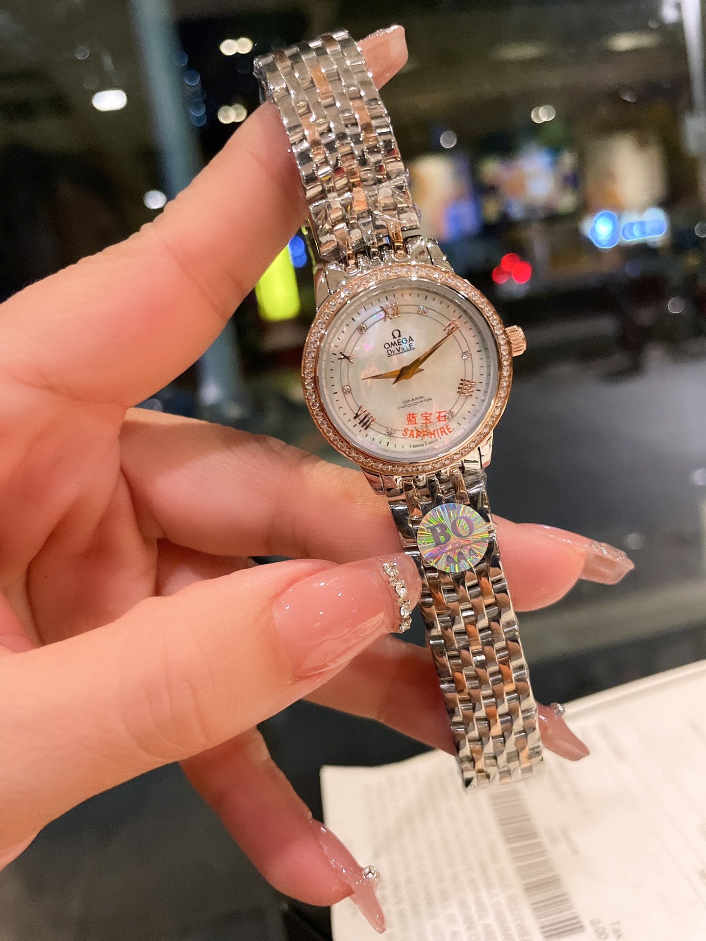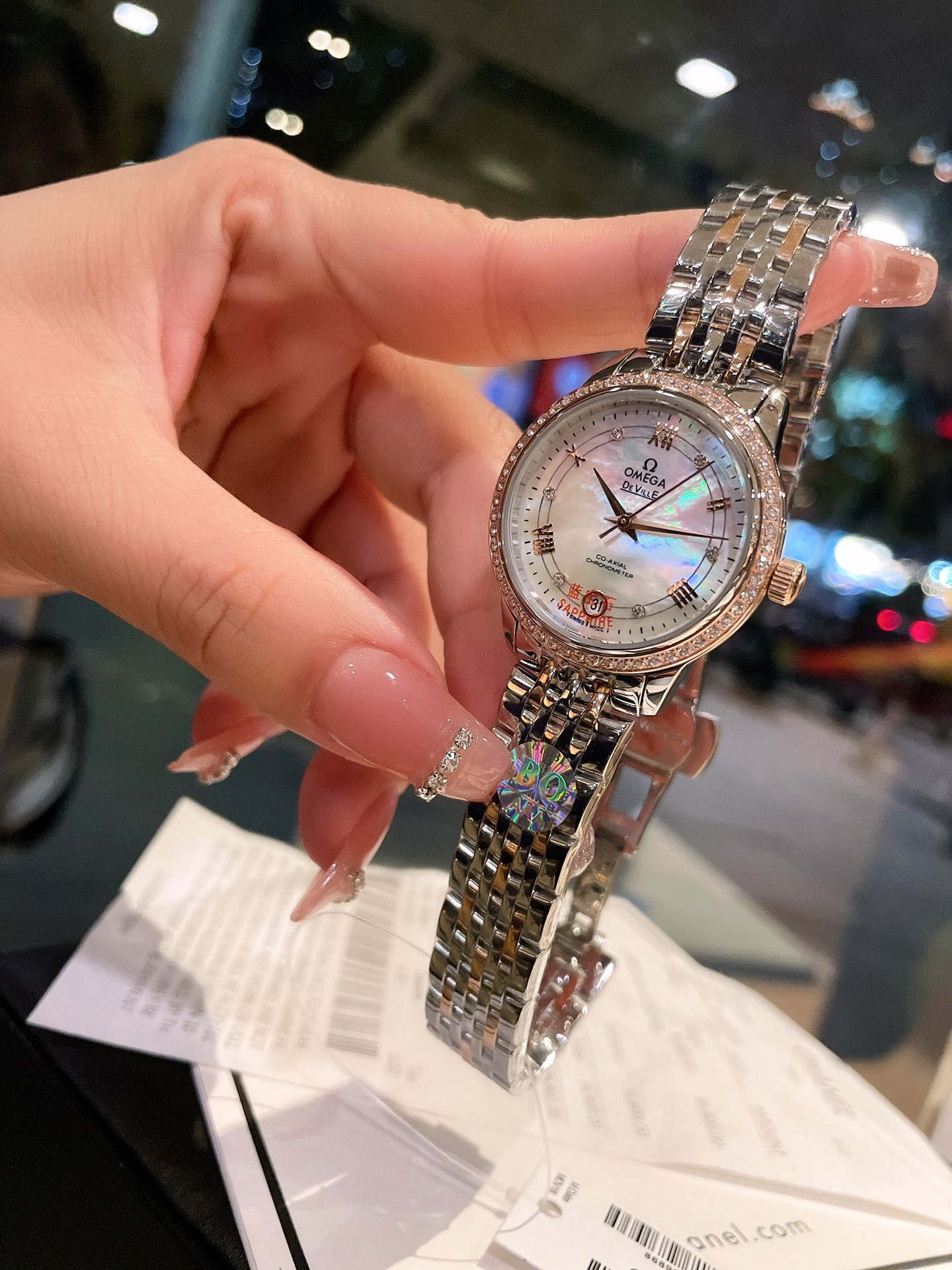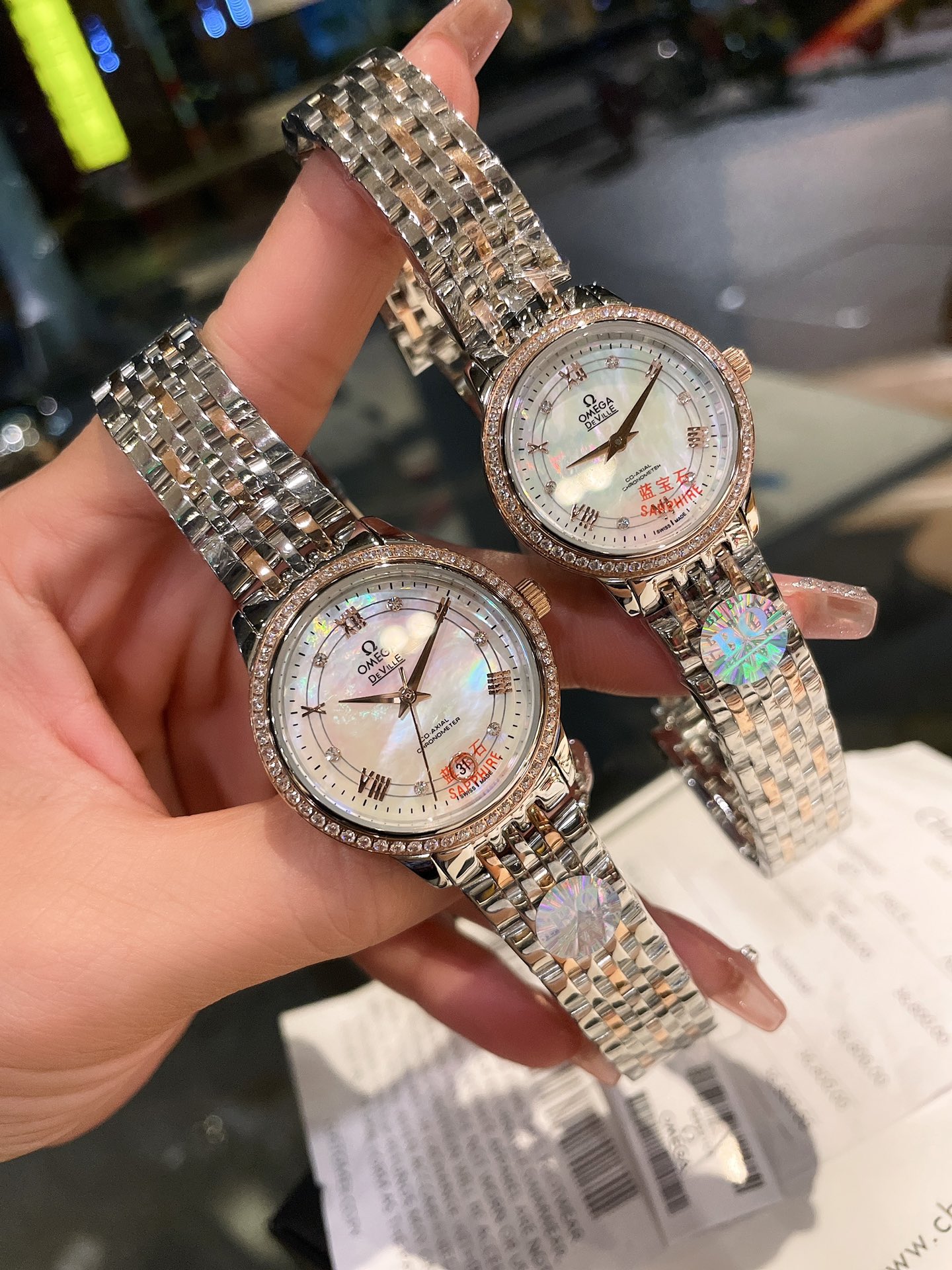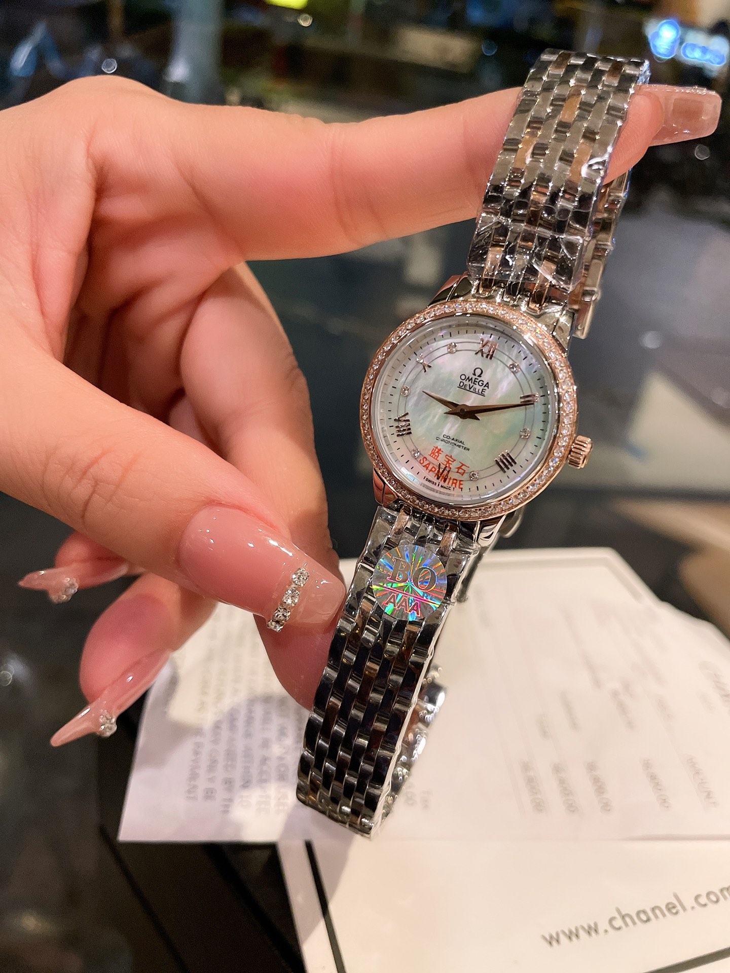 这款手表是AAAAA 1:1 质量 (非常棒). 使用了和原版一模一样的材料. 商标部分也保持了和欧米茄/Omega一样. 图片拍摄是实物手表拍摄, 您所收到的实物保证和我们图片一模一样.