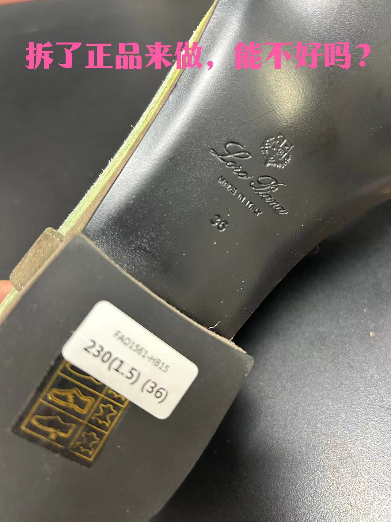 这款鞋子是AAAAA 1:1 质量 (非常棒). 使用了和原版一模一样的材料. 商标部分也保持了和洛罗皮亚纳/Loro Piana一样. 图片拍摄是实物鞋子拍摄, 您所收到的实物保证和我们图片一模一样.