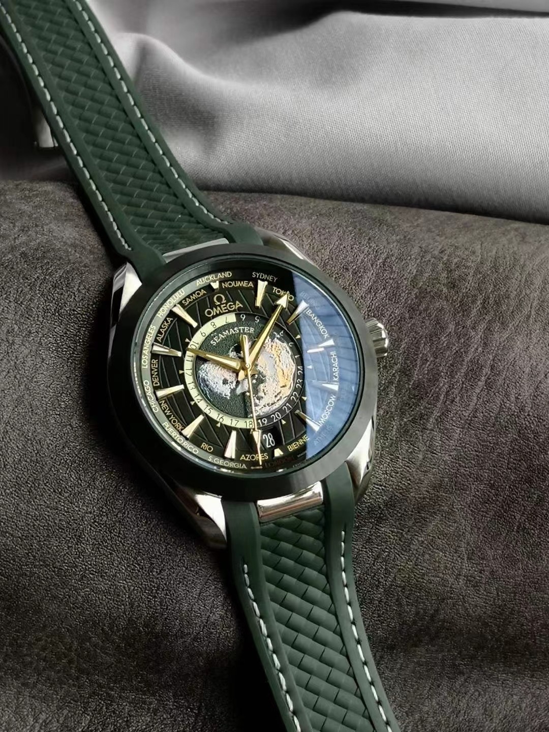 这款手表是AAAAA 1:1 质量 (非常棒). 使用了和原版一模一样的材料. 商标部分也保持了和欧米茄/Omega一样. 图片拍摄是实物手表拍摄, 您所收到的实物保证和我们图片一模一样.