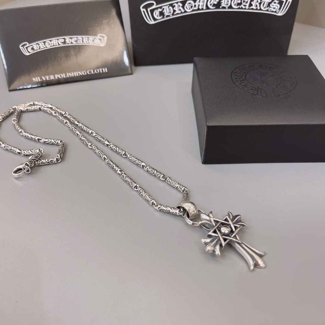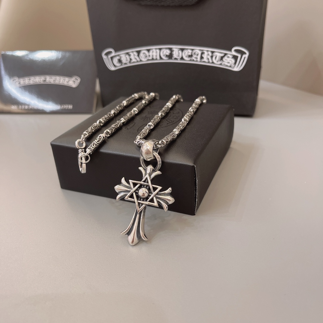 这款首饰是AAAAA 1:1 质量 (非常棒). 使用了和原版一模一样的材料. 商标部分也保持了和克罗心/Chrome Hearts一样. 图片拍摄是实物首饰拍摄, 您所收到的实物保证和我们图片一模一样.