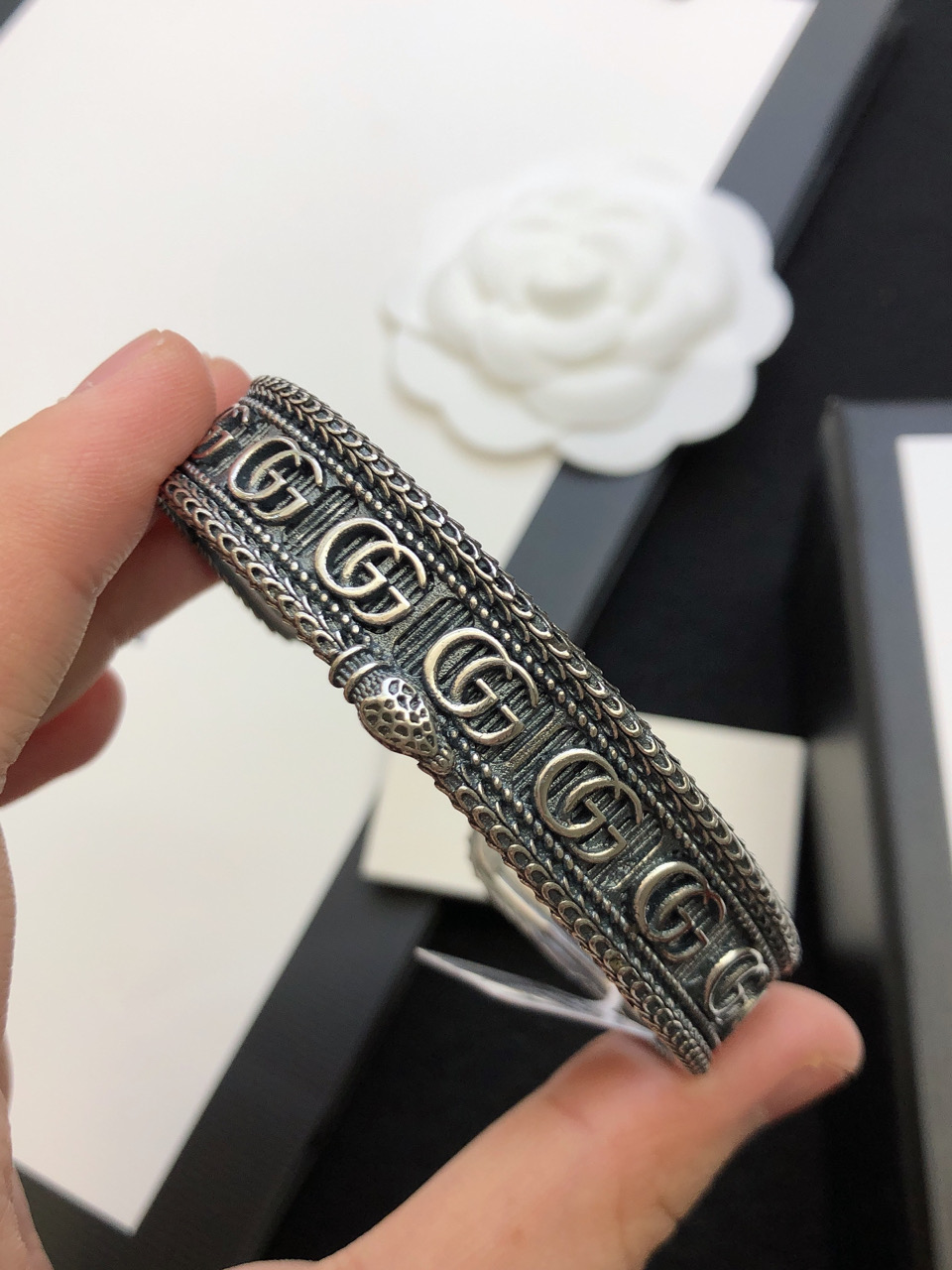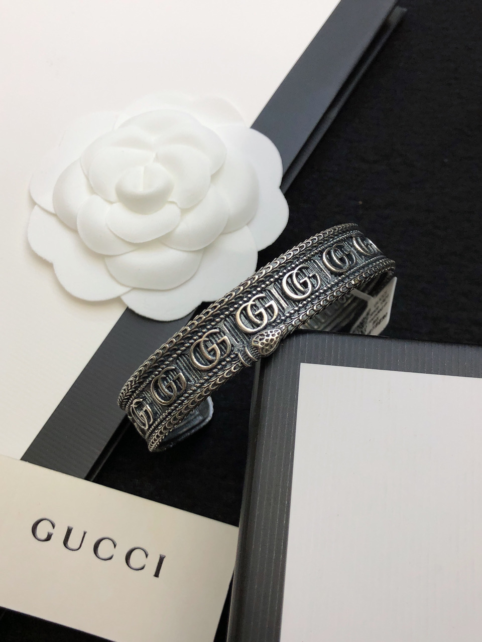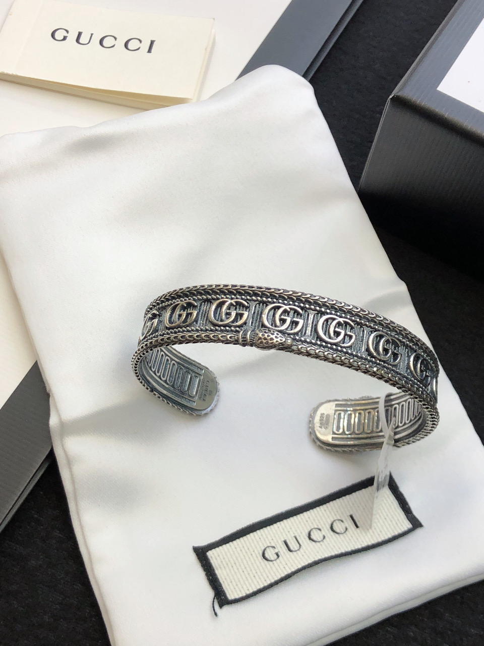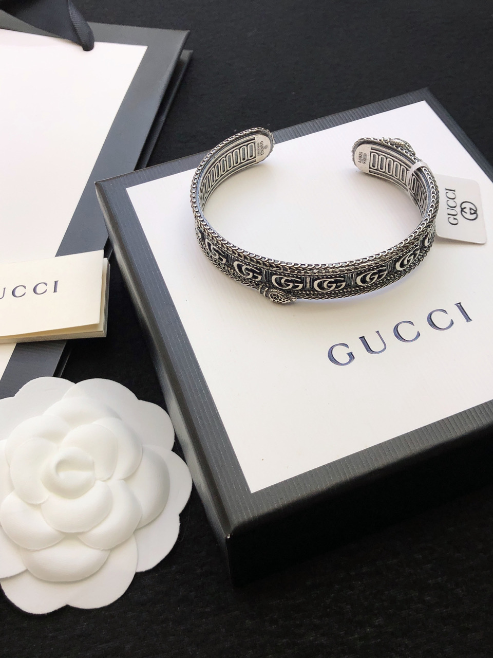 这款首饰是AAAAA 1:1 质量 (非常棒). 使用了和原版一模一样的材料. 商标部分也保持了和古奇/Gucci一样. 图片拍摄是实物首饰拍摄, 您所收到的实物保证和我们图片一模一样.