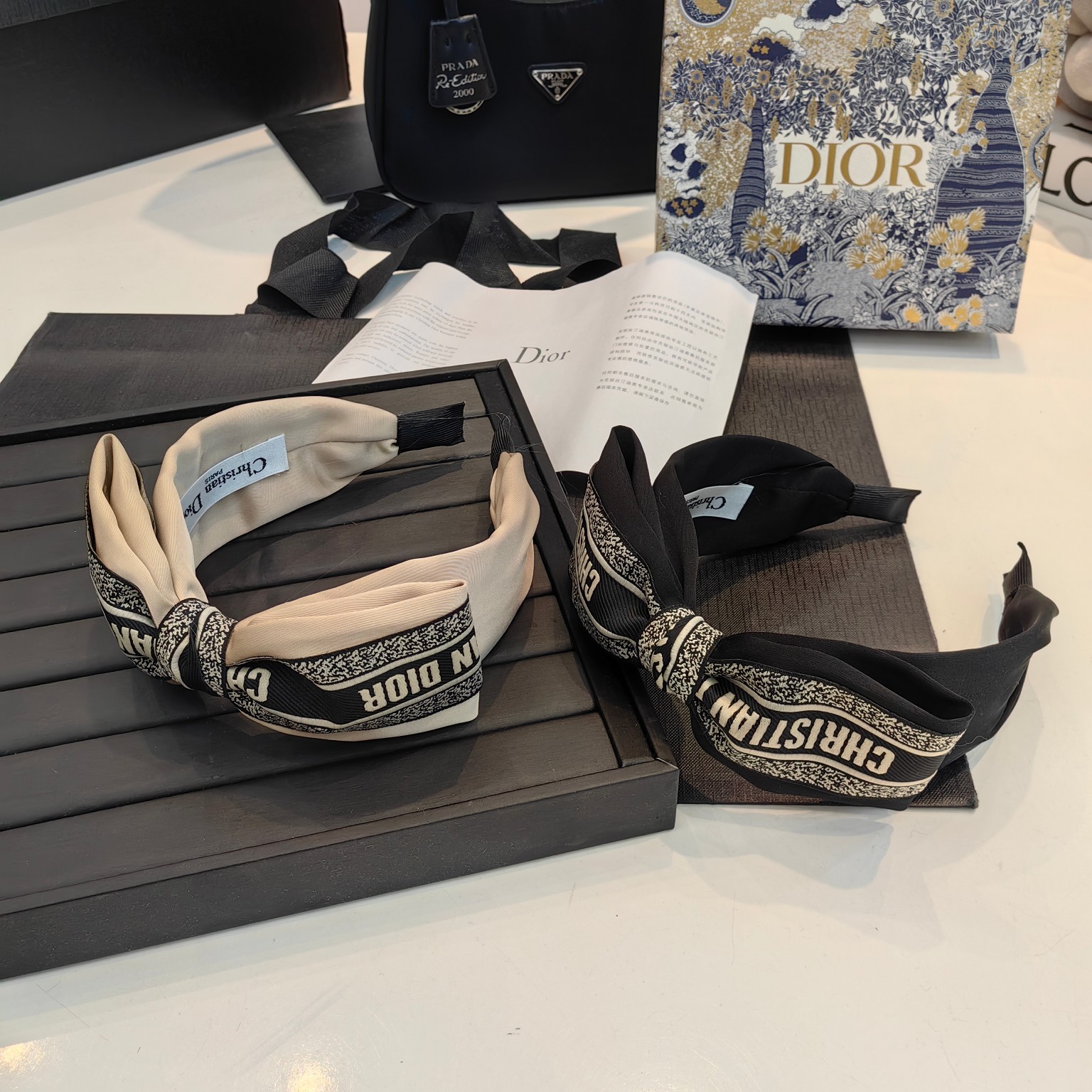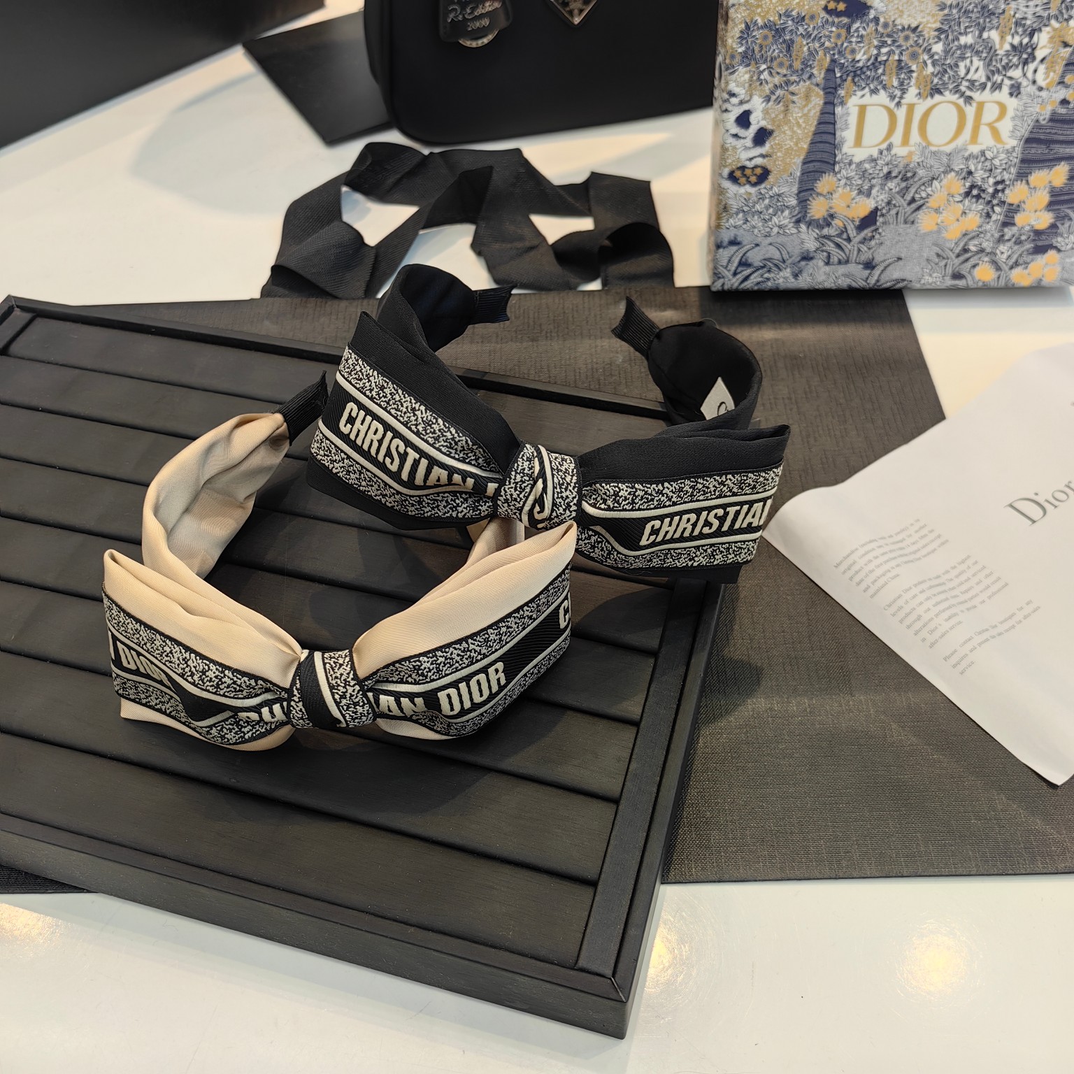 这款hair accessories是AAAAA 1:1 质量 (非常棒). 使用了和原版一模一样的材料. 商标部分也保持了和迪奥/Dior一样. 图片拍摄是实物hair accessories拍摄, 您所收到的实物保证和我们图片一模一样.