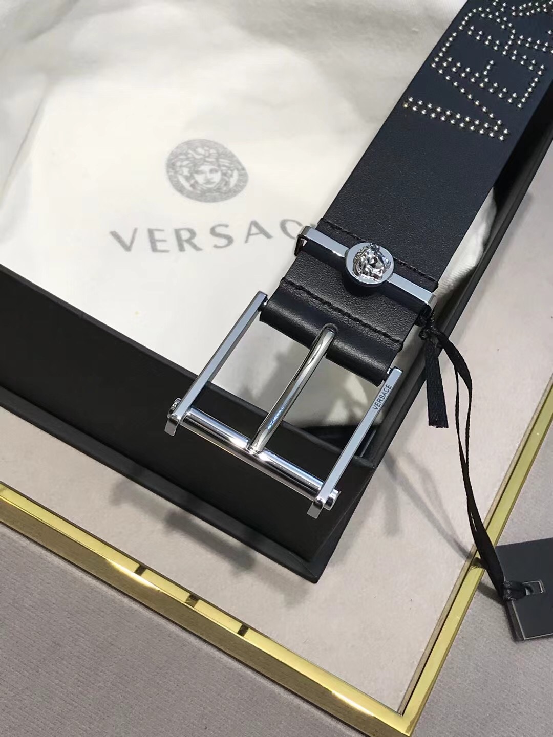 这款首饰是AAAAA 1:1 质量 (非常棒). 使用了和原版一模一样的材料. 商标部分也保持了和范思哲/Versace一样. 图片拍摄是实物首饰拍摄, 您所收到的实物保证和我们图片一模一样.