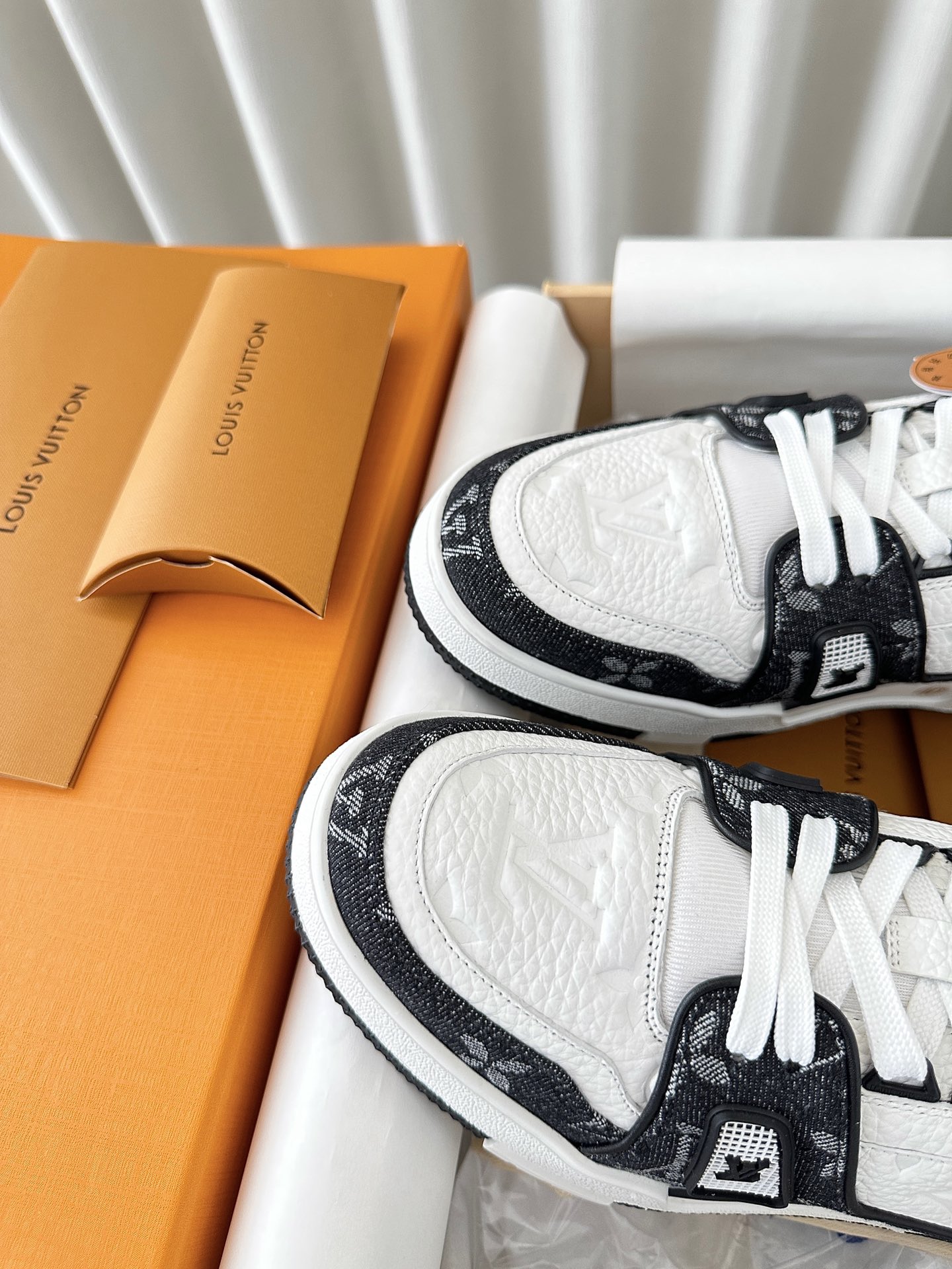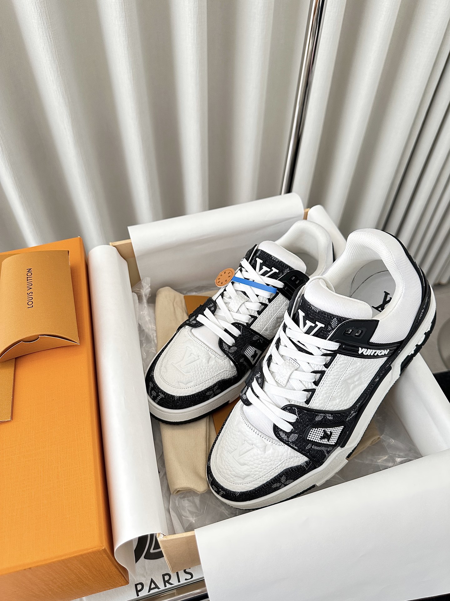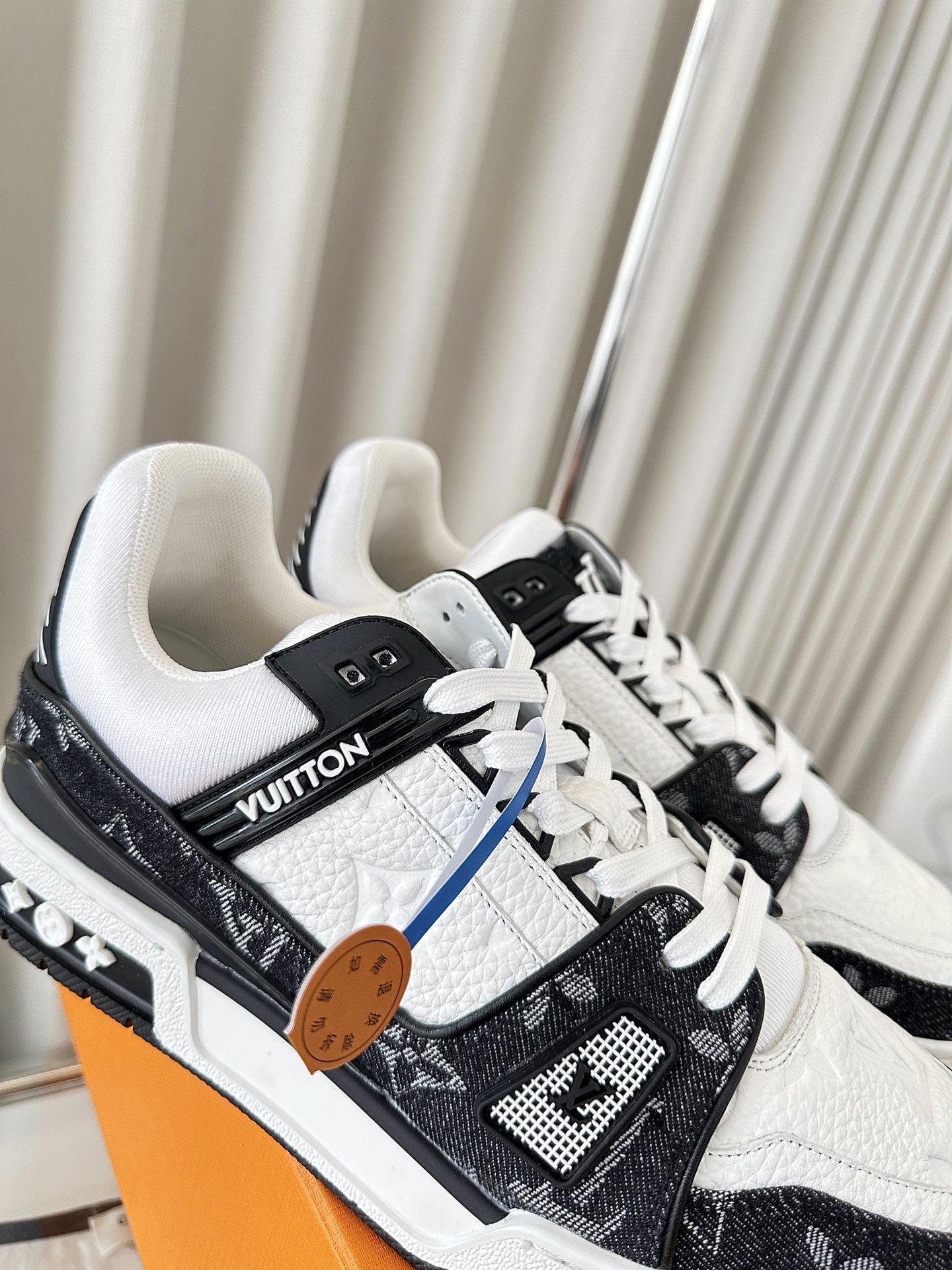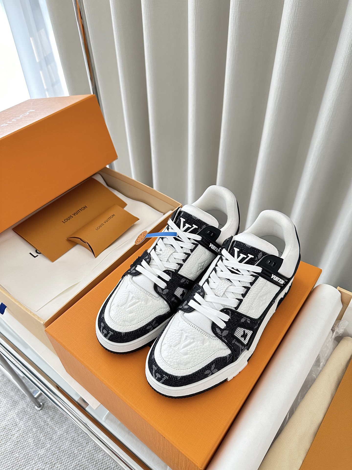 这款鞋子是AAAAA 1:1 质量 (非常棒). 使用了和原版一模一样的材料. 商标部分也保持了和路易威登/Louis Vuitton一样. 图片拍摄是实物鞋子拍摄, 您所收到的实物保证和我们图片一模一样.