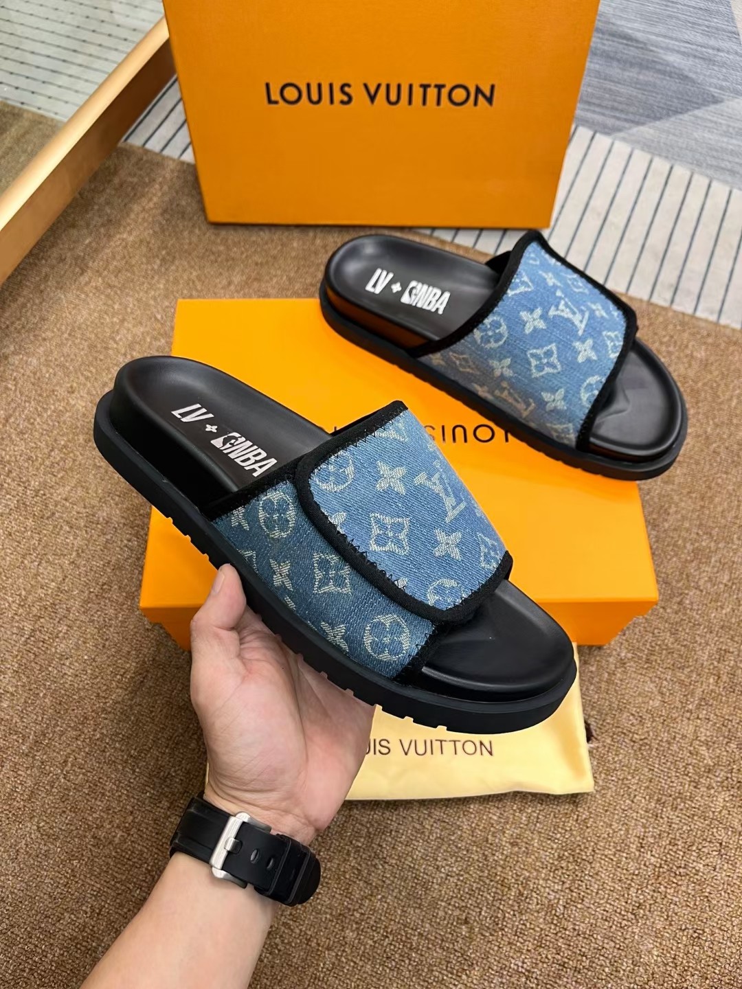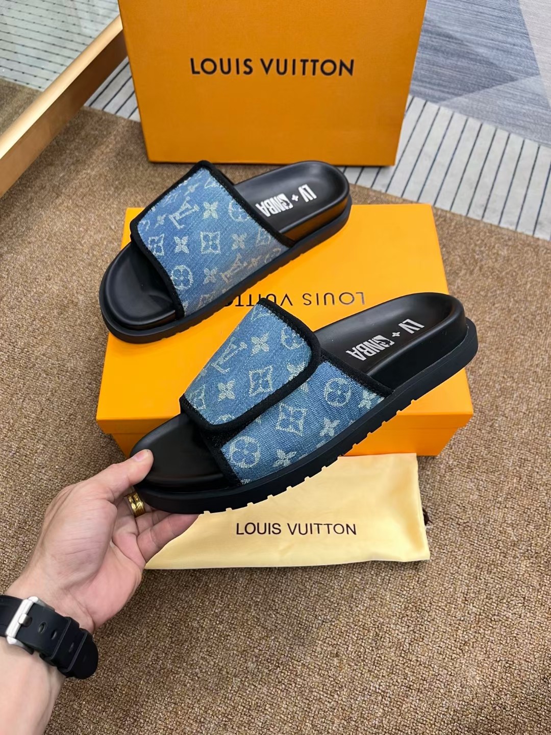 这款鞋子是AAAAA 1:1 质量 (非常棒). 使用了和原版一模一样的材料. 商标部分也保持了和路易威登/Louis Vuitton一样. 图片拍摄是实物鞋子拍摄, 您所收到的实物保证和我们图片一模一样.