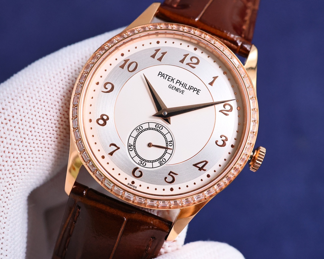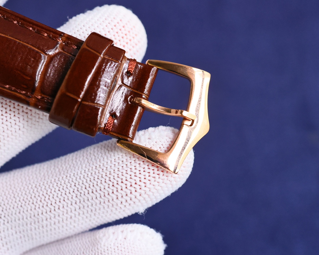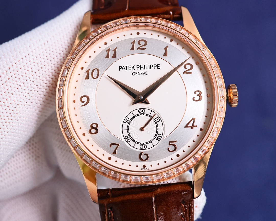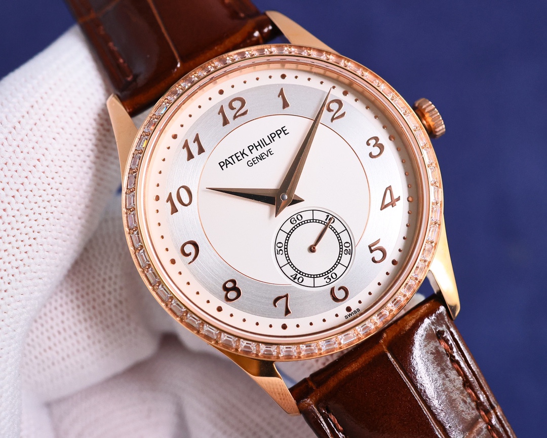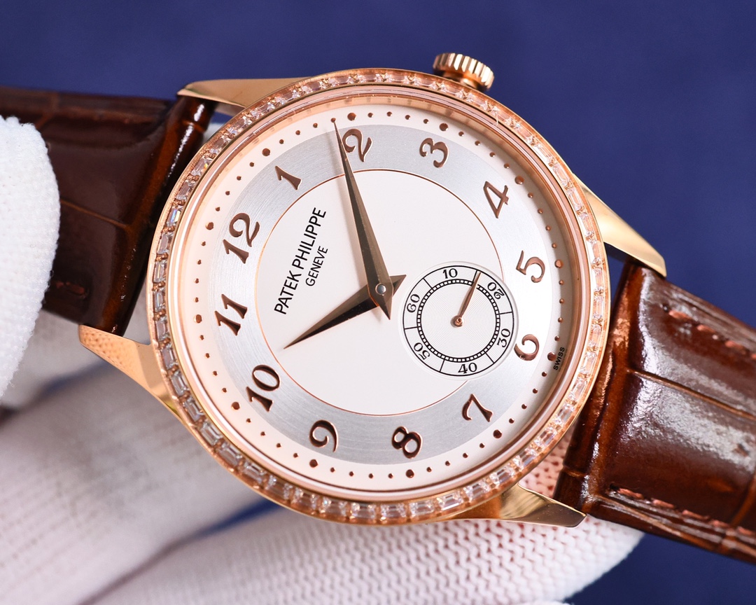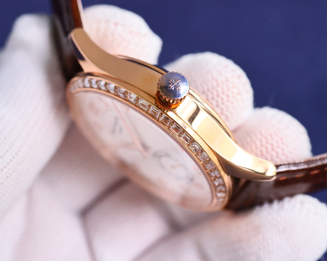 这款手表是AAAAA 1:1 质量 (非常棒). 使用了和原版一模一样的材料. 商标部分也保持了和百达翡丽/Patek Philippe一样. 图片拍摄是实物手表拍摄, 您所收到的实物保证和我们图片一模一样.