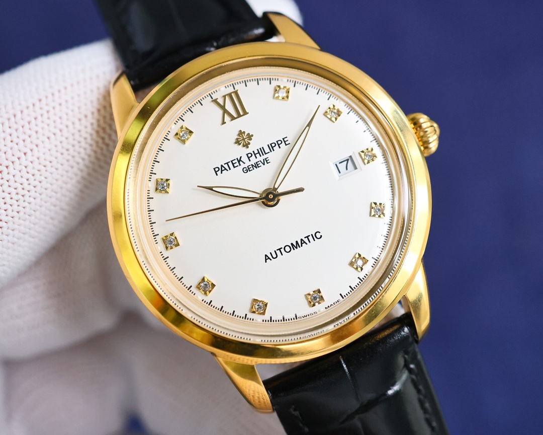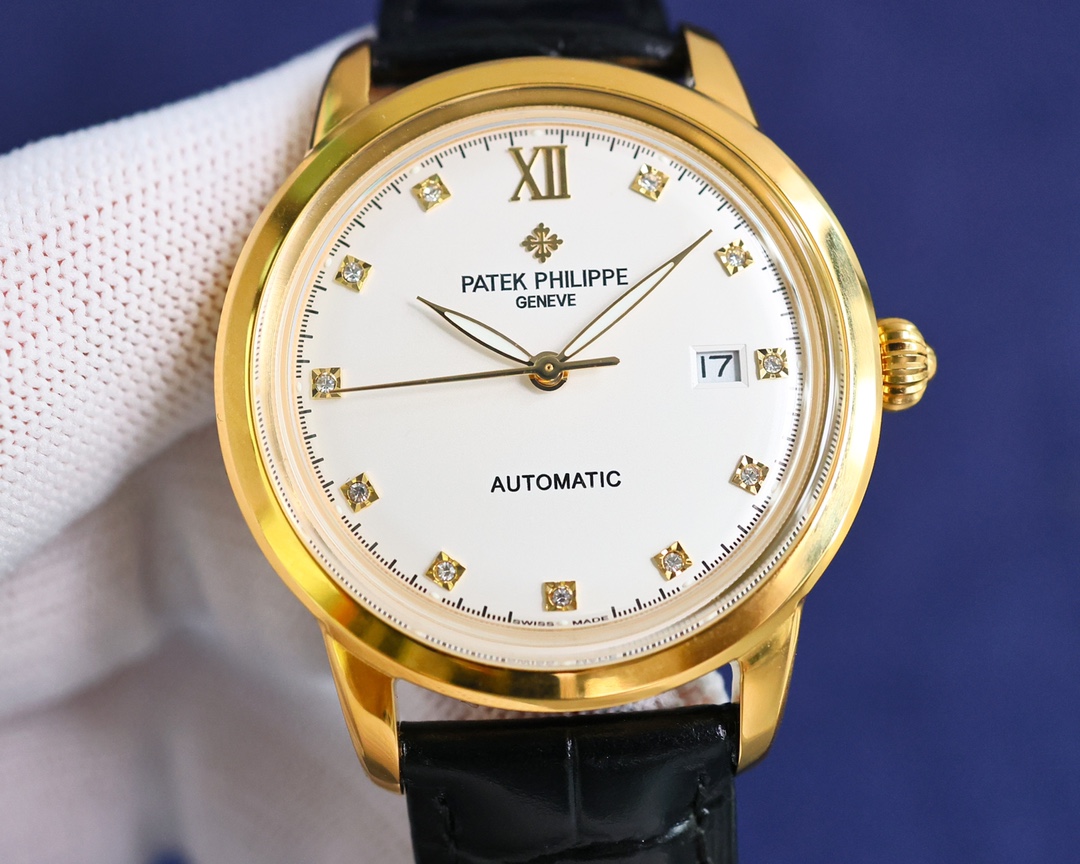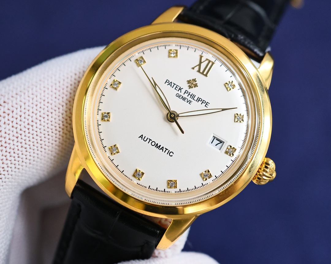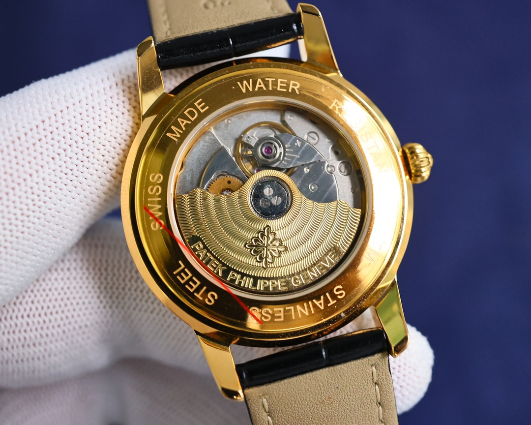 这款手表是AAAAA 1:1 质量 (非常棒). 使用了和原版一模一样的材料. 商标部分也保持了和百达翡丽/Patek Philippe一样. 图片拍摄是实物手表拍摄, 您所收到的实物保证和我们图片一模一样.
