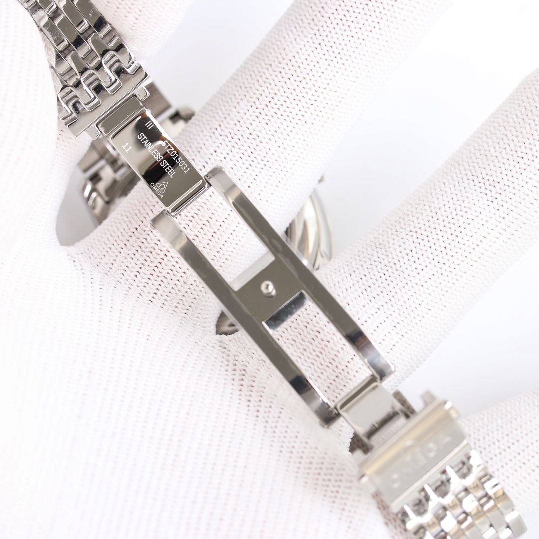 这款手表是AAAAA 1:1 质量 (非常棒). 使用了和原版一模一样的材料. 商标部分也保持了和欧米茄/Omega一样. 图片拍摄是实物手表拍摄, 您所收到的实物保证和我们图片一模一样.
