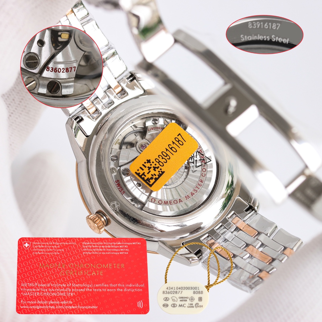 这款手表是AAAAA 1:1 质量 (非常棒). 使用了和原版一模一样的材料. 商标部分也保持了和欧米茄/Omega一样. 图片拍摄是实物手表拍摄, 您所收到的实物保证和我们图片一模一样.