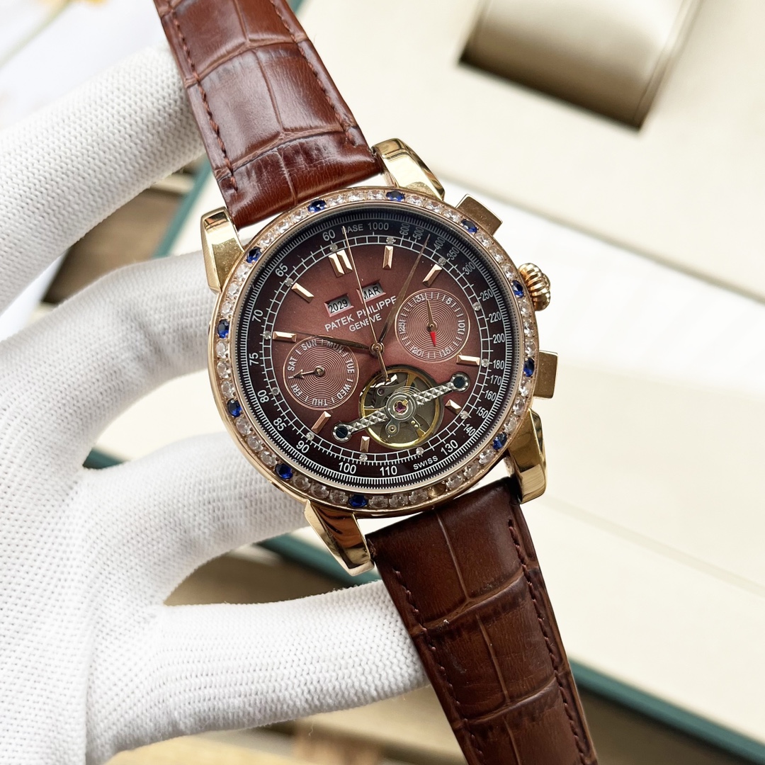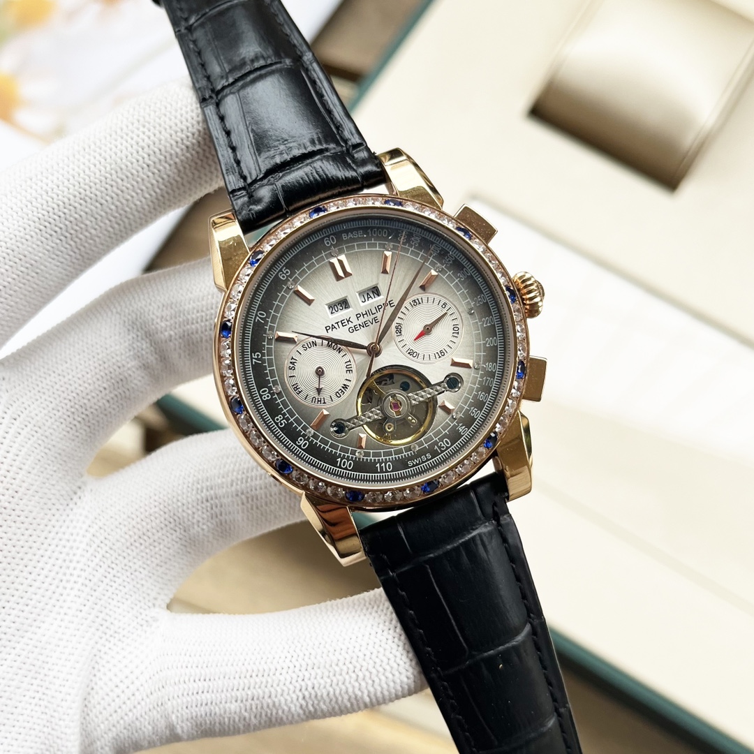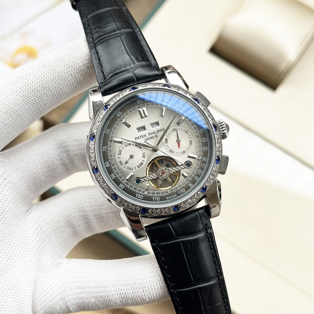 这款手表是AAAAA 1:1 质量 (非常棒). 使用了和原版一模一样的材料. 商标部分也保持了和百达翡丽/Patek Philippe一样. 图片拍摄是实物手表拍摄, 您所收到的实物保证和我们图片一模一样.