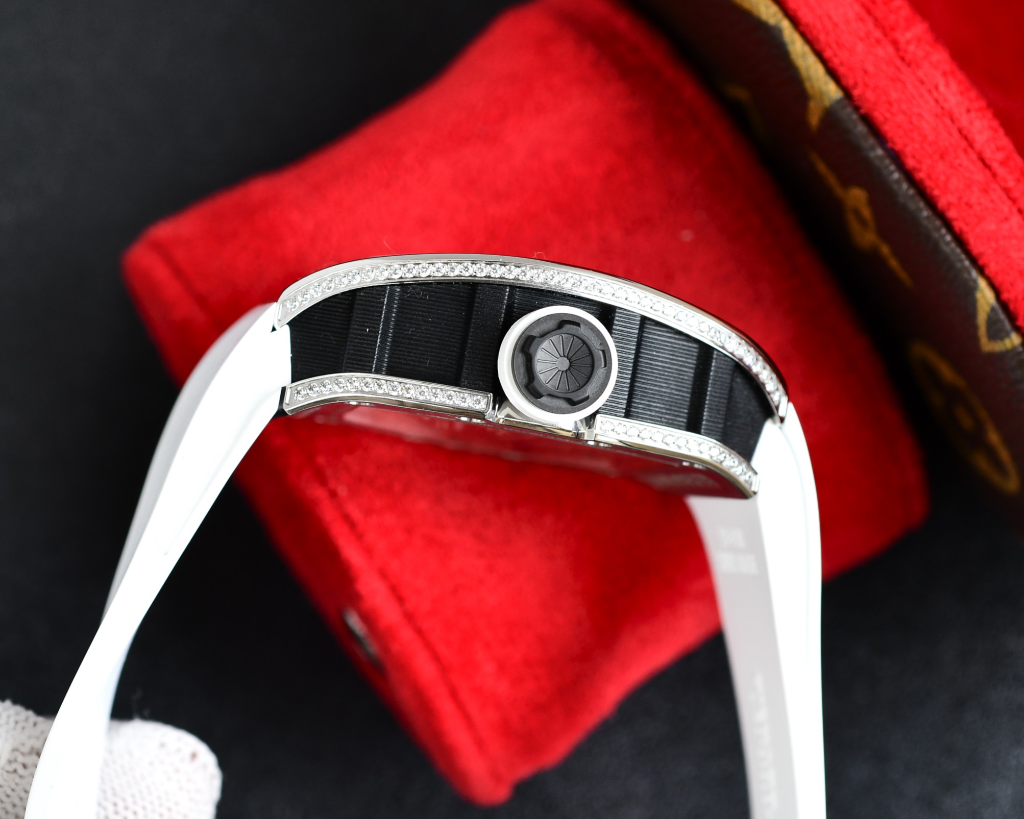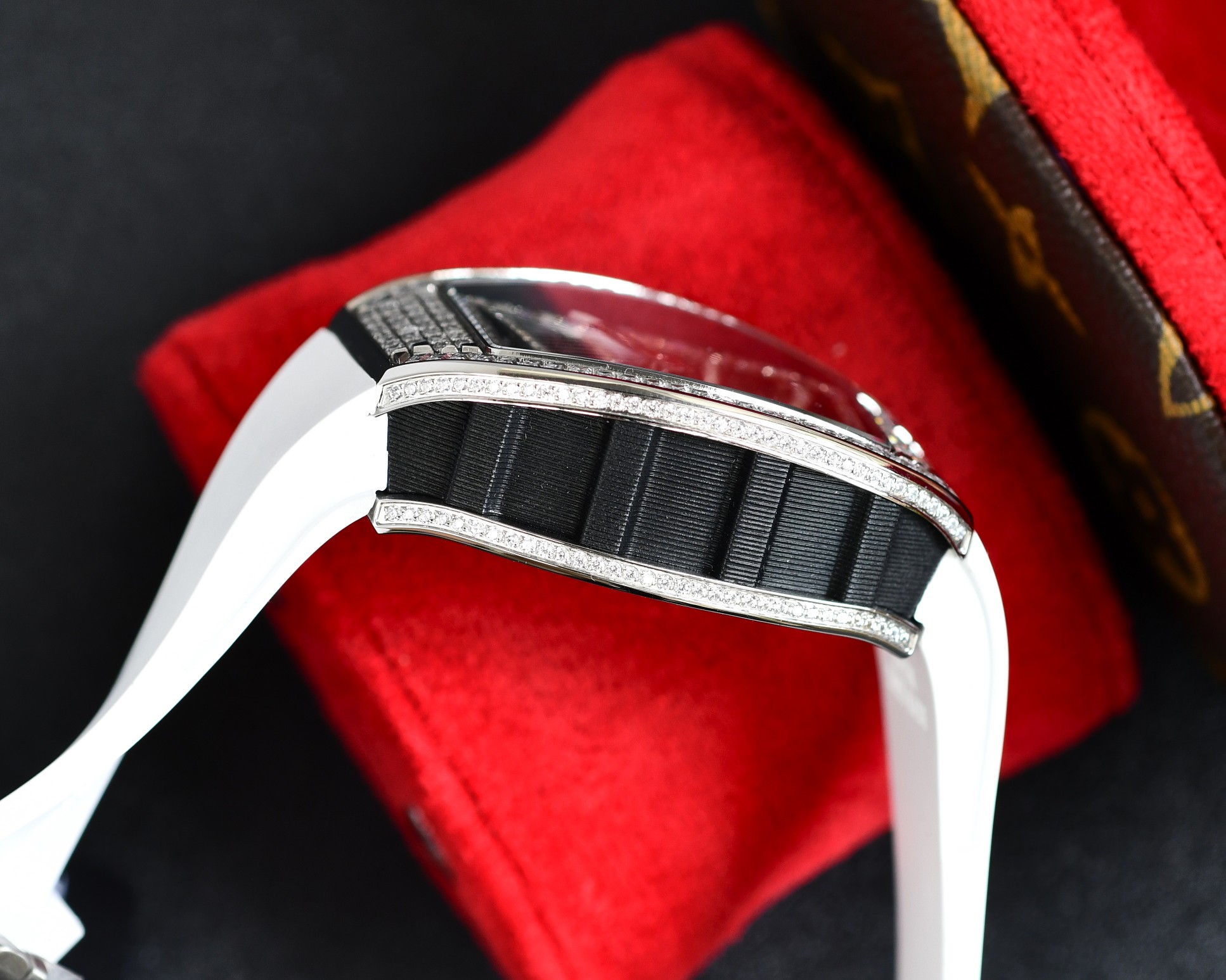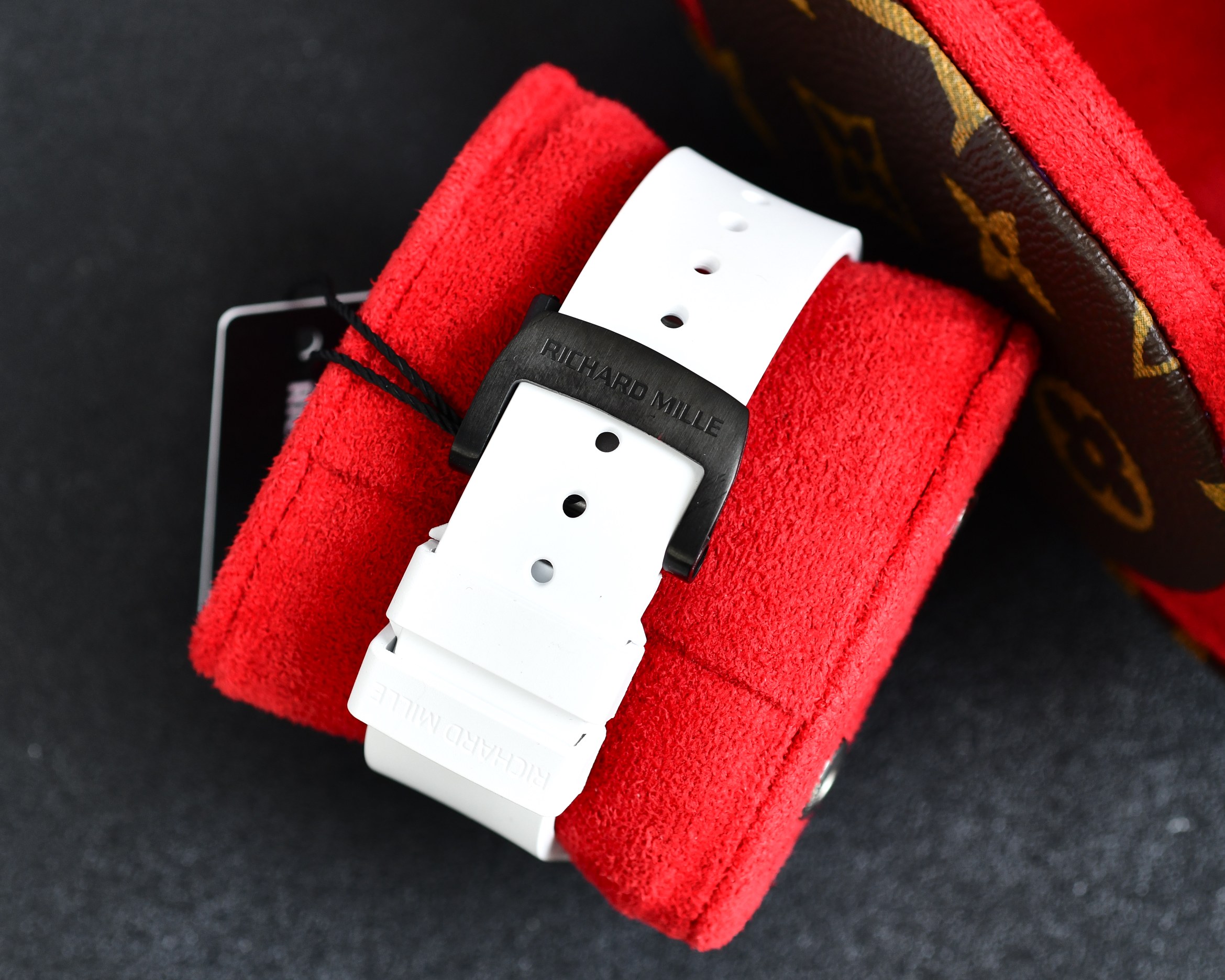 这款手表是AAAAA 1:1 质量 (非常棒). 使用了和原版一模一样的材料. 商标部分也保持了和理查德·米尔/Richard Mille一样. 图片拍摄是实物手表拍摄, 您所收到的实物保证和我们图片一模一样.