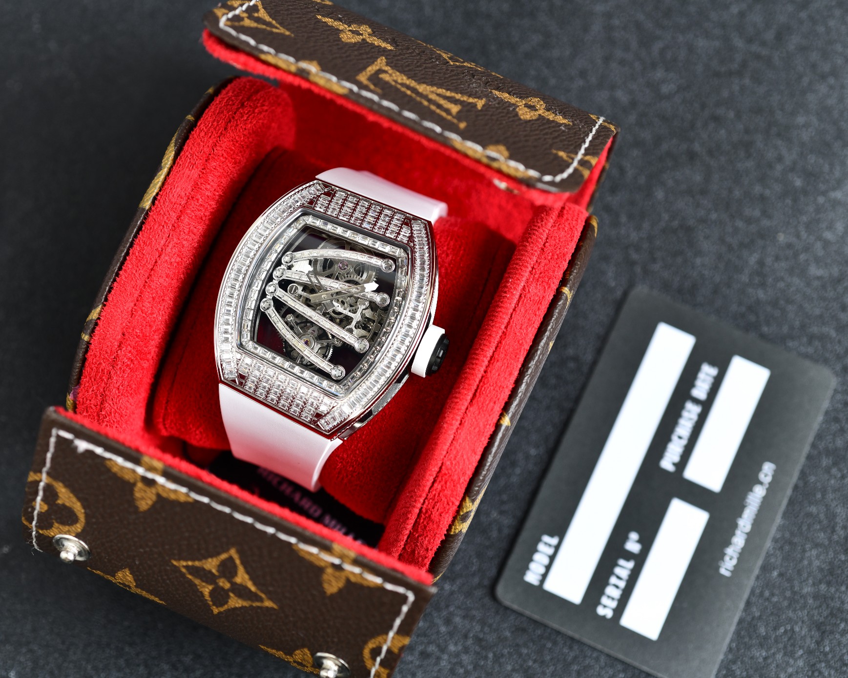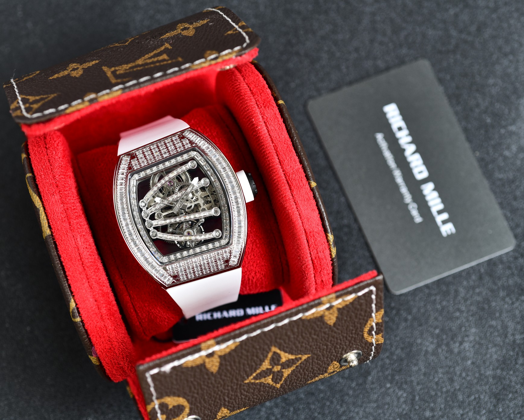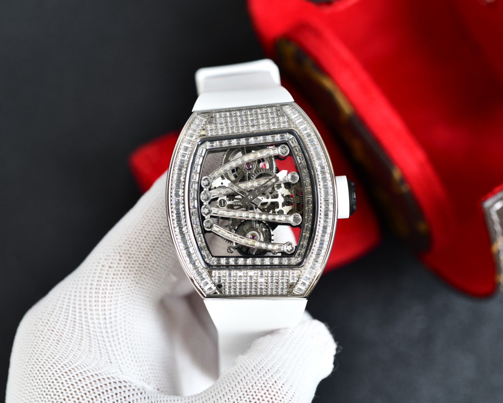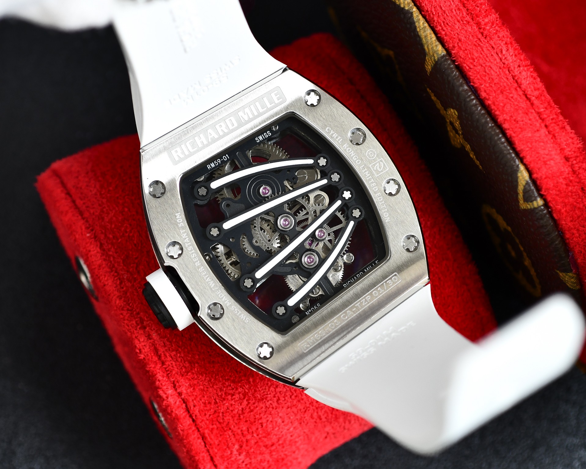 这款手表是AAAAA 1:1 质量 (非常棒). 使用了和原版一模一样的材料. 商标部分也保持了和理查德·米尔/Richard Mille一样. 图片拍摄是实物手表拍摄, 您所收到的实物保证和我们图片一模一样.