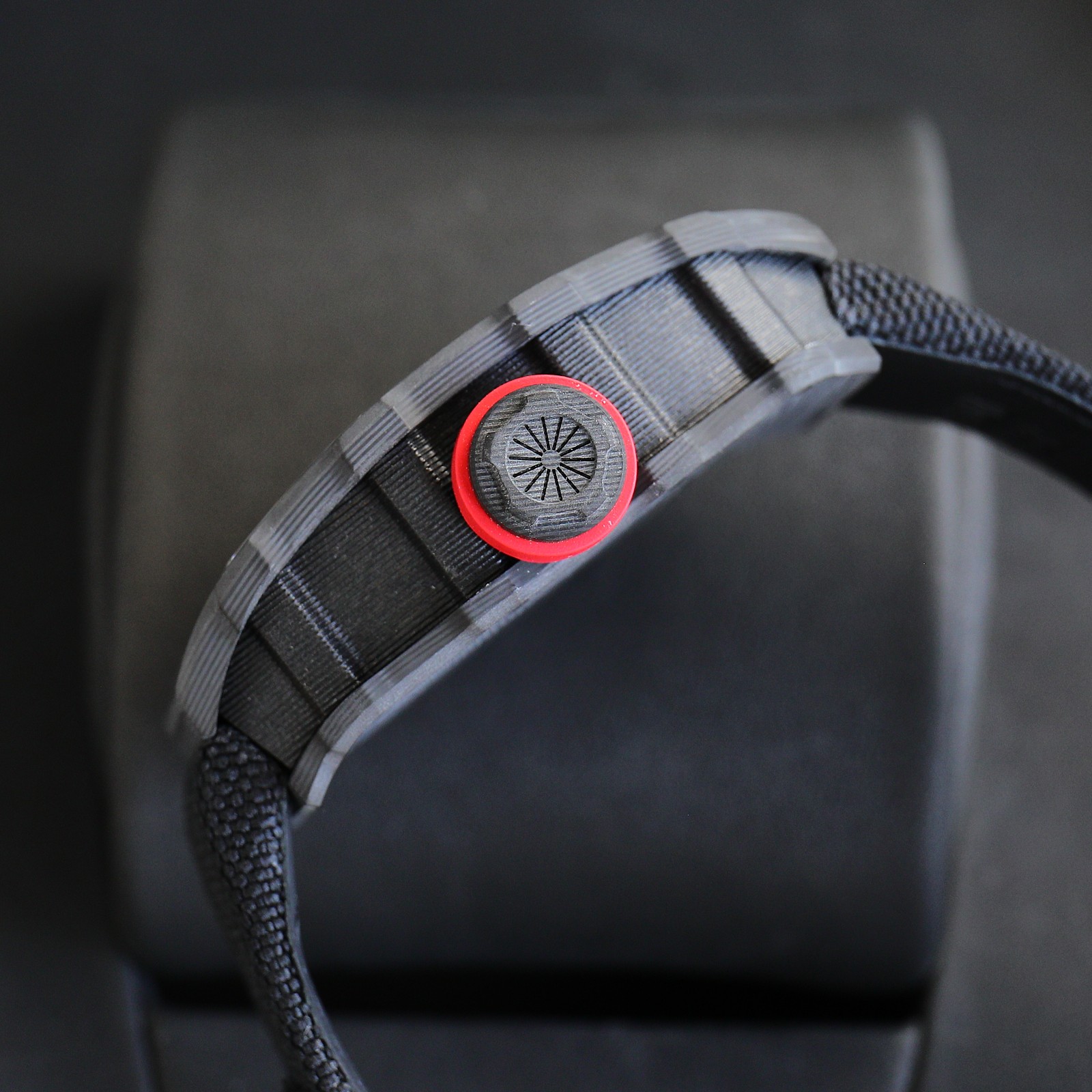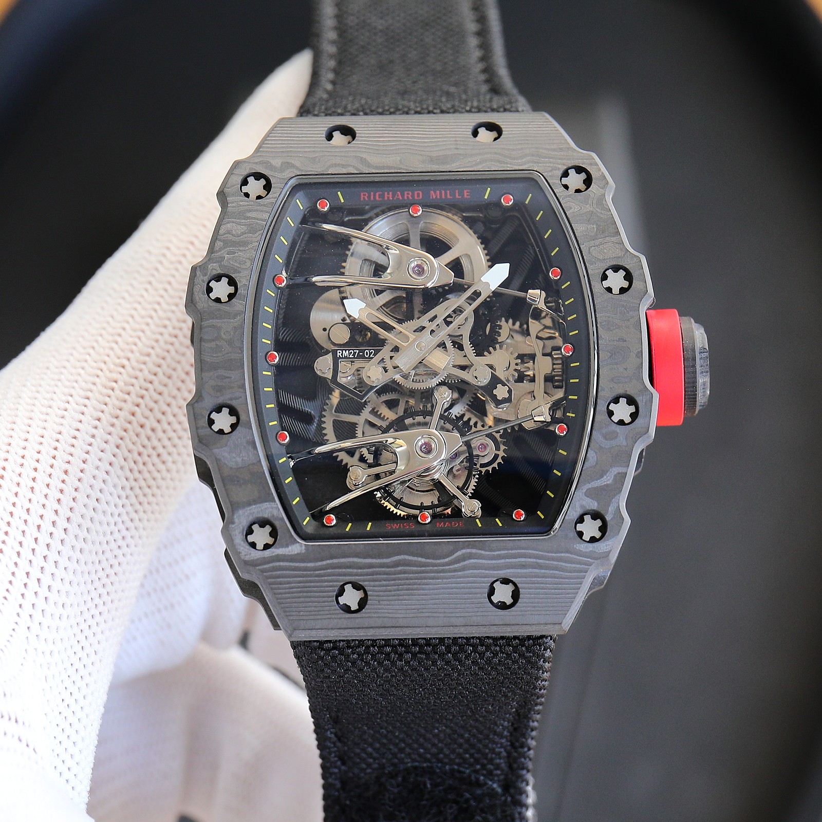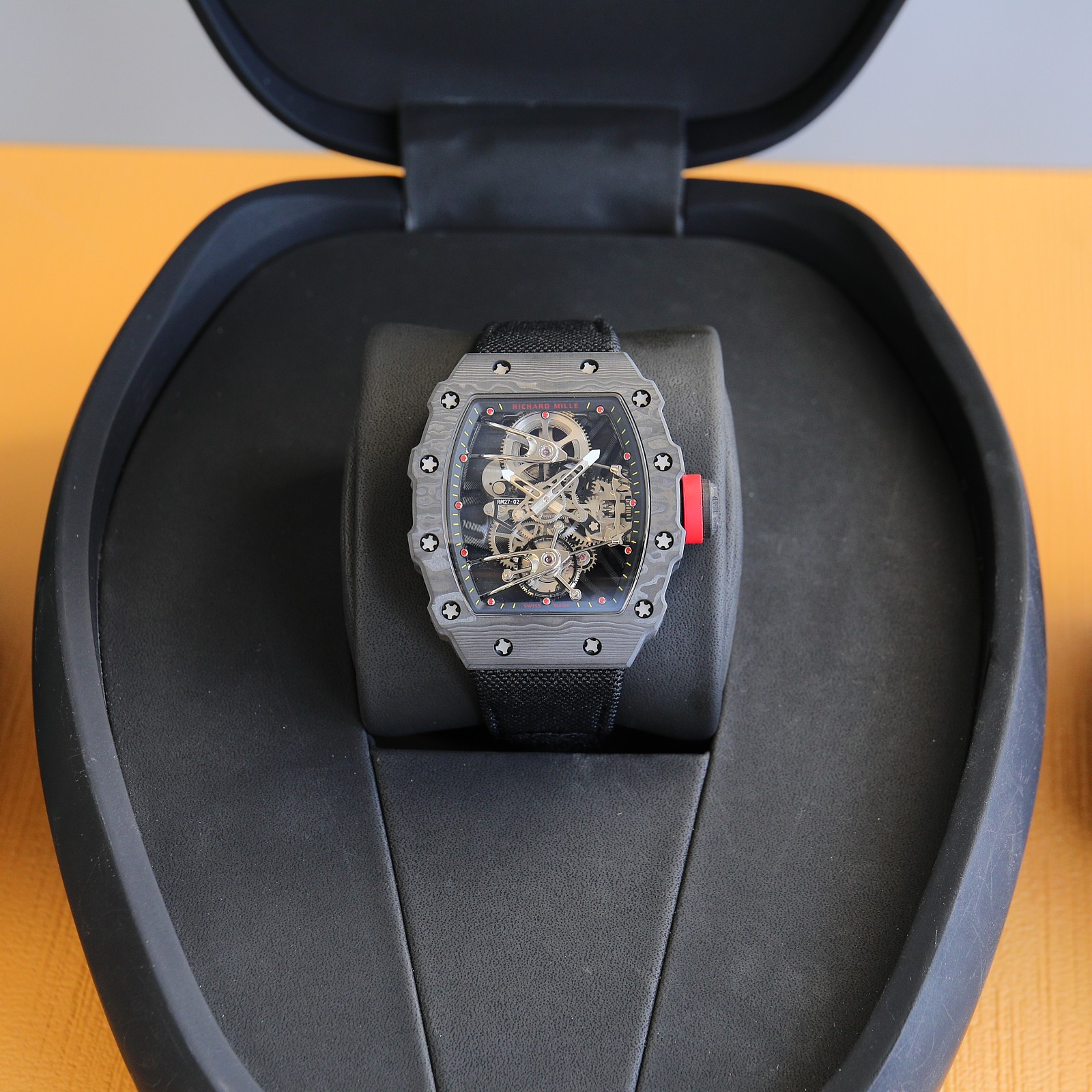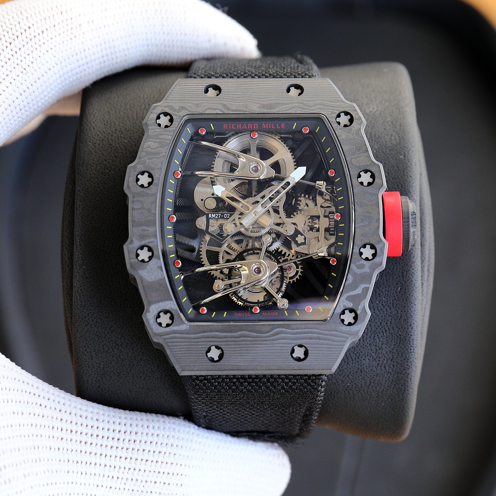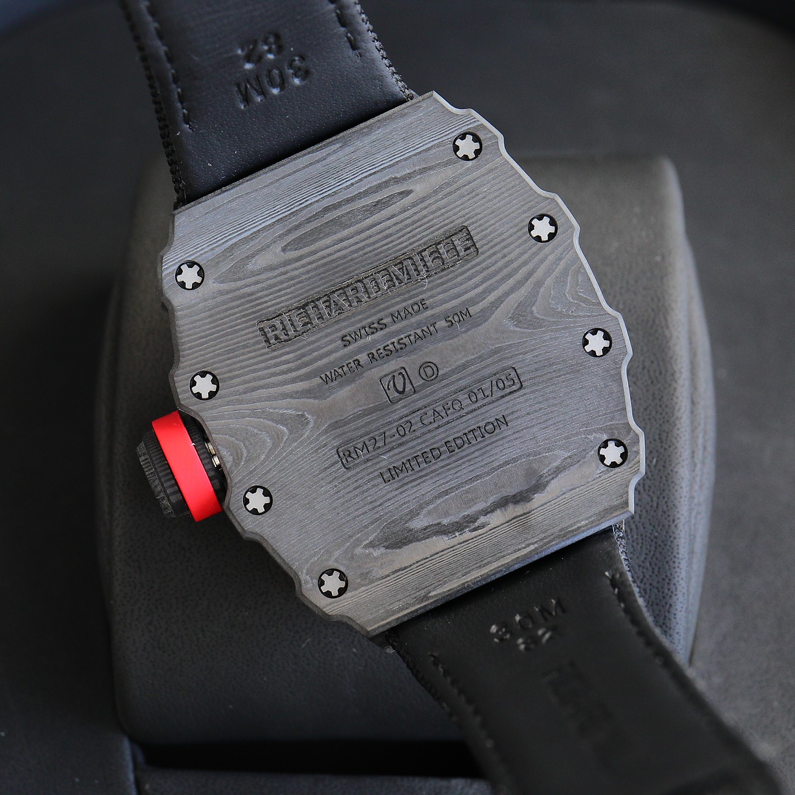 这款手表是AAAAA 1:1 质量 (非常棒). 使用了和原版一模一样的材料. 商标部分也保持了和理查德·米尔/Richard Mille一样. 图片拍摄是实物手表拍摄, 您所收到的实物保证和我们图片一模一样.