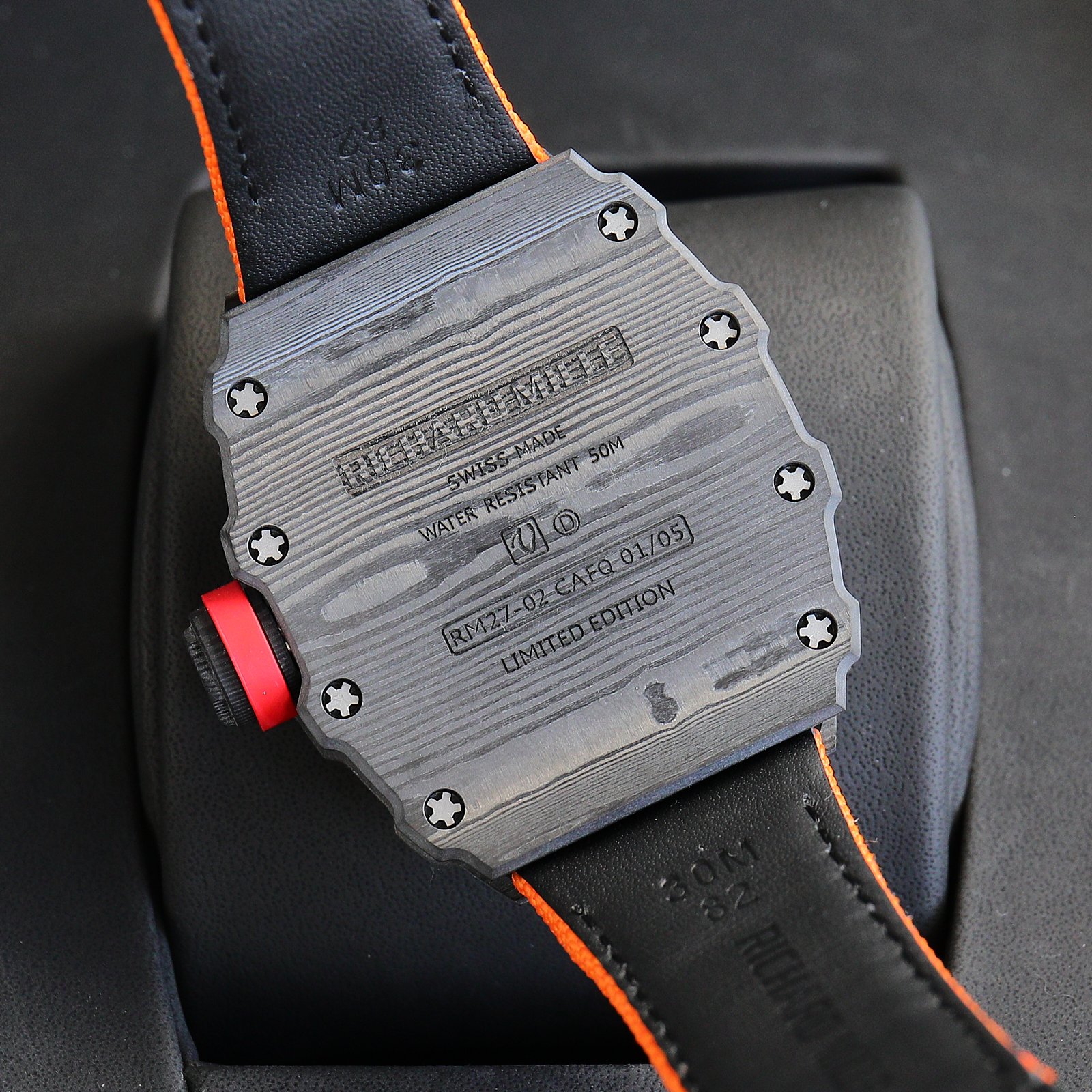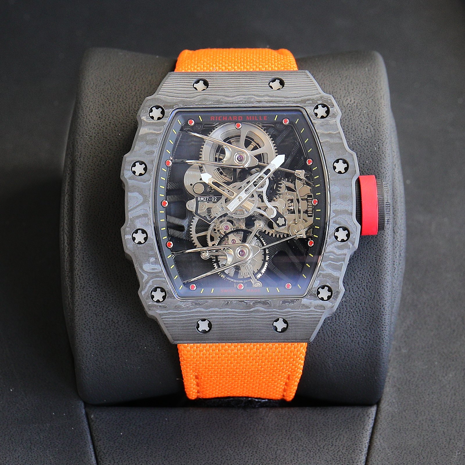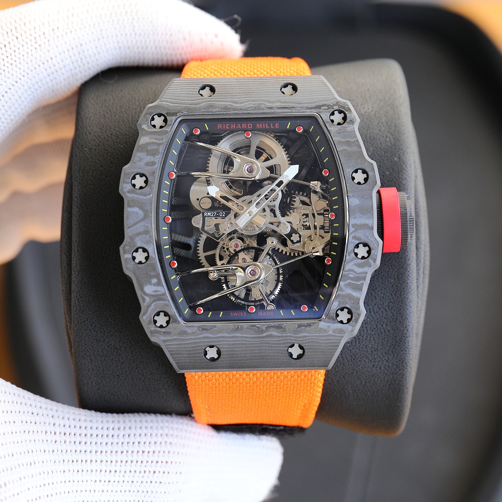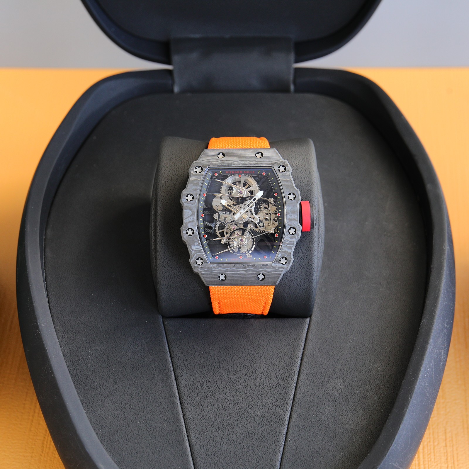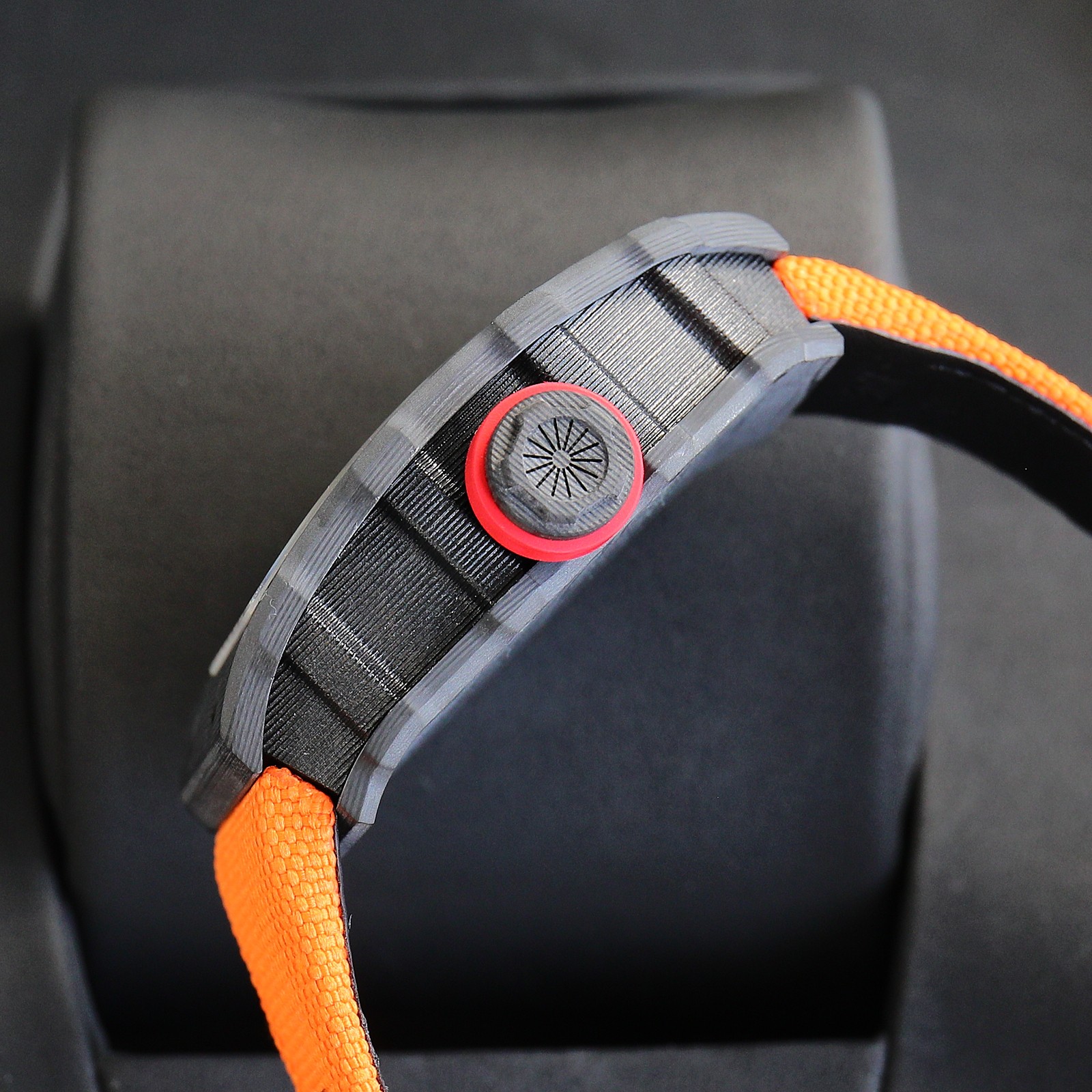 这款手表是AAAAA 1:1 质量 (非常棒). 使用了和原版一模一样的材料. 商标部分也保持了和理查德·米尔/Richard Mille一样. 图片拍摄是实物手表拍摄, 您所收到的实物保证和我们图片一模一样.