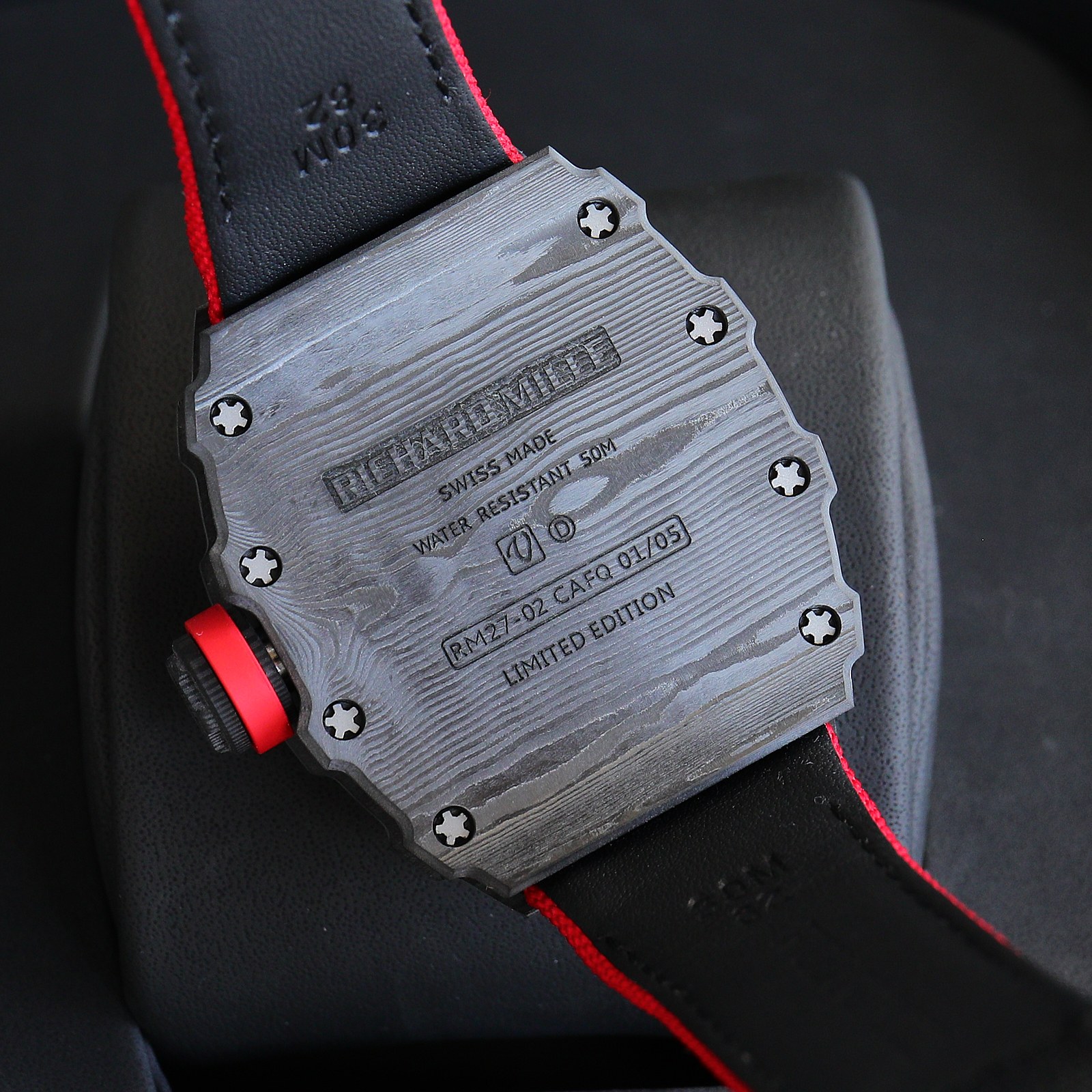 这款手表是AAAAA 1:1 质量 (非常棒). 使用了和原版一模一样的材料. 商标部分也保持了和理查德·米尔/Richard Mille一样. 图片拍摄是实物手表拍摄, 您所收到的实物保证和我们图片一模一样.