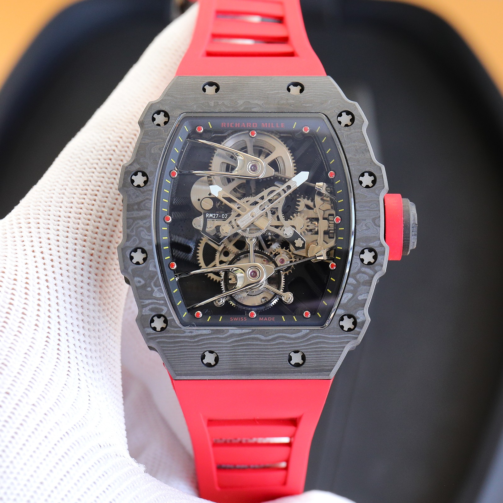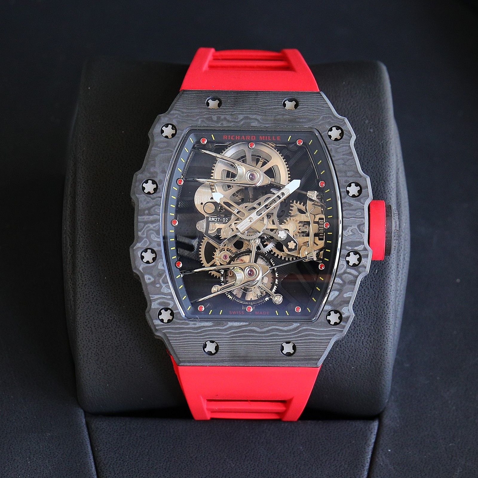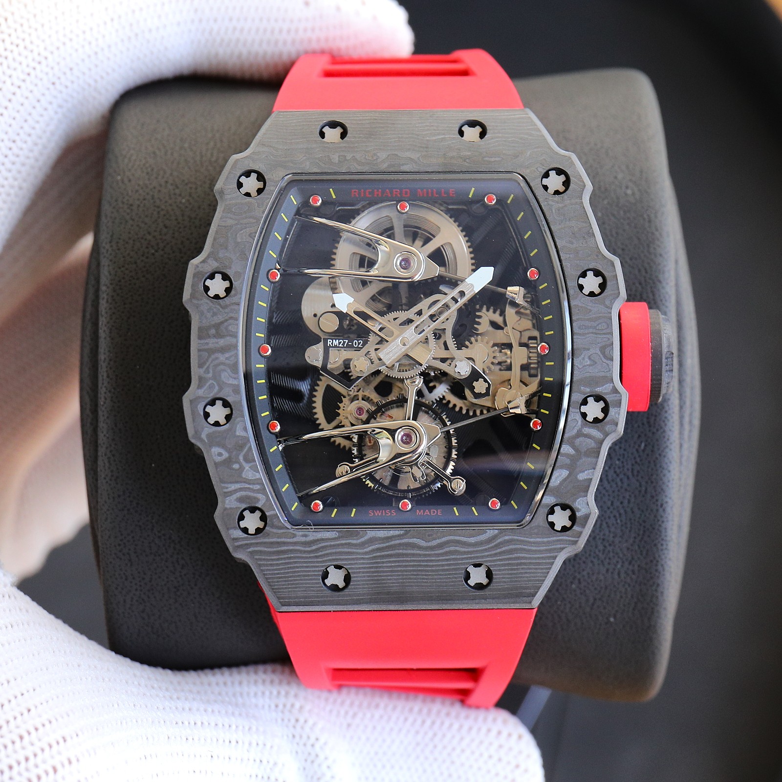 这款手表是AAAAA 1:1 质量 (非常棒). 使用了和原版一模一样的材料. 商标部分也保持了和理查德·米尔/Richard Mille一样. 图片拍摄是实物手表拍摄, 您所收到的实物保证和我们图片一模一样.