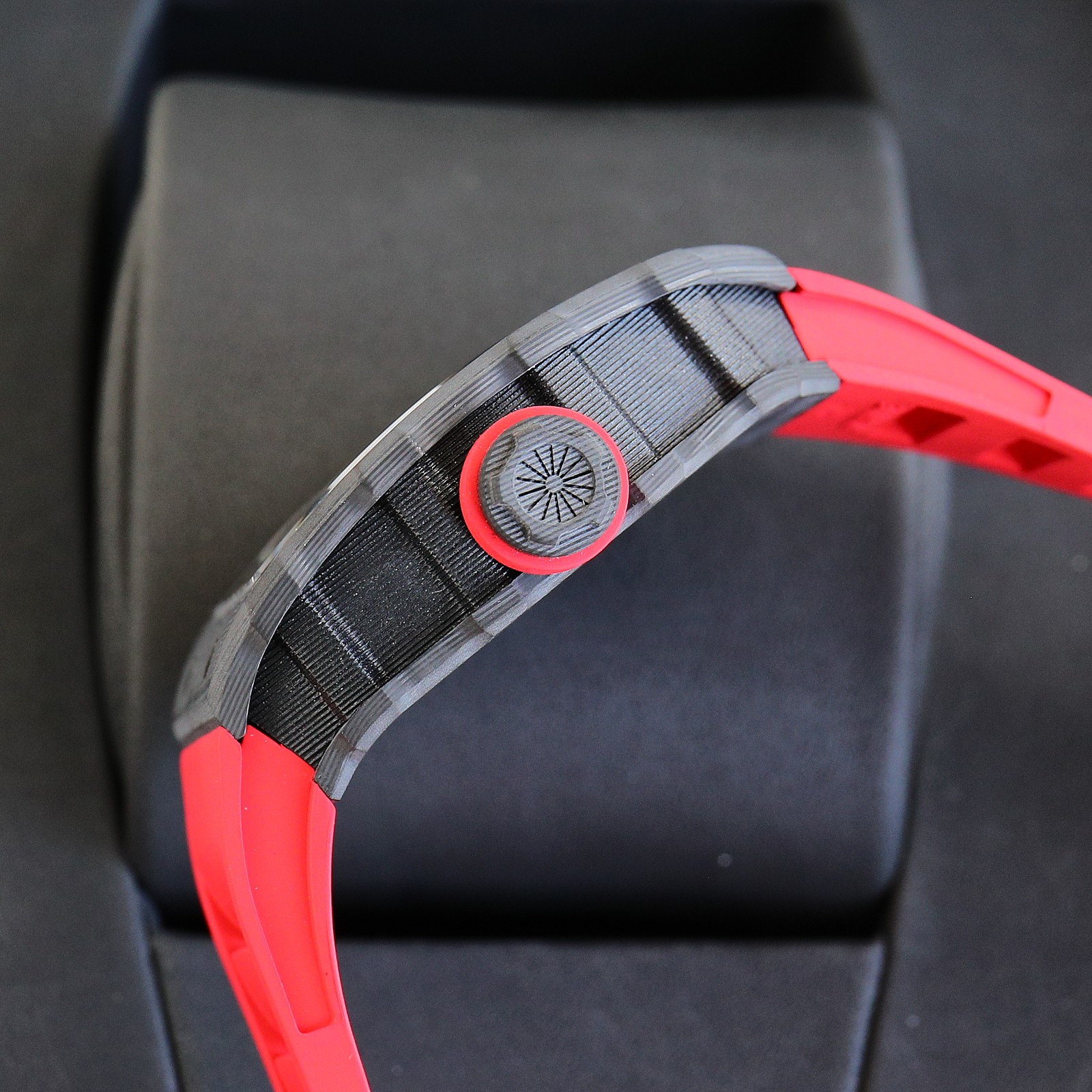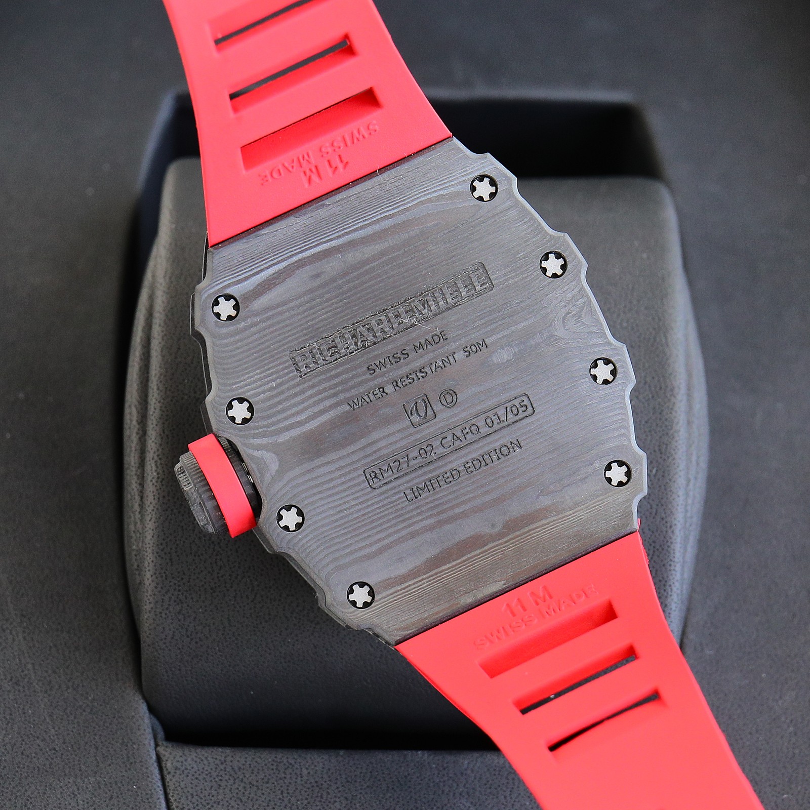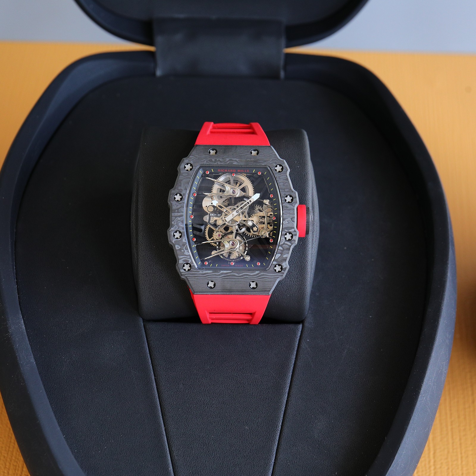 这款手表是AAAAA 1:1 质量 (非常棒). 使用了和原版一模一样的材料. 商标部分也保持了和理查德·米尔/Richard Mille一样. 图片拍摄是实物手表拍摄, 您所收到的实物保证和我们图片一模一样.