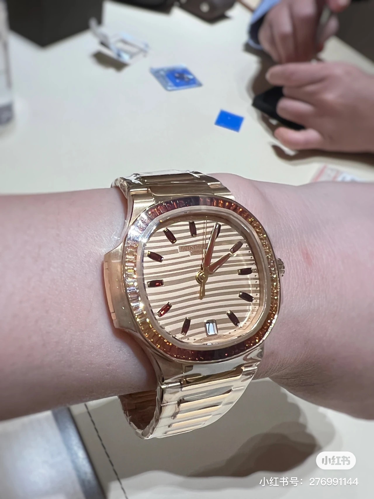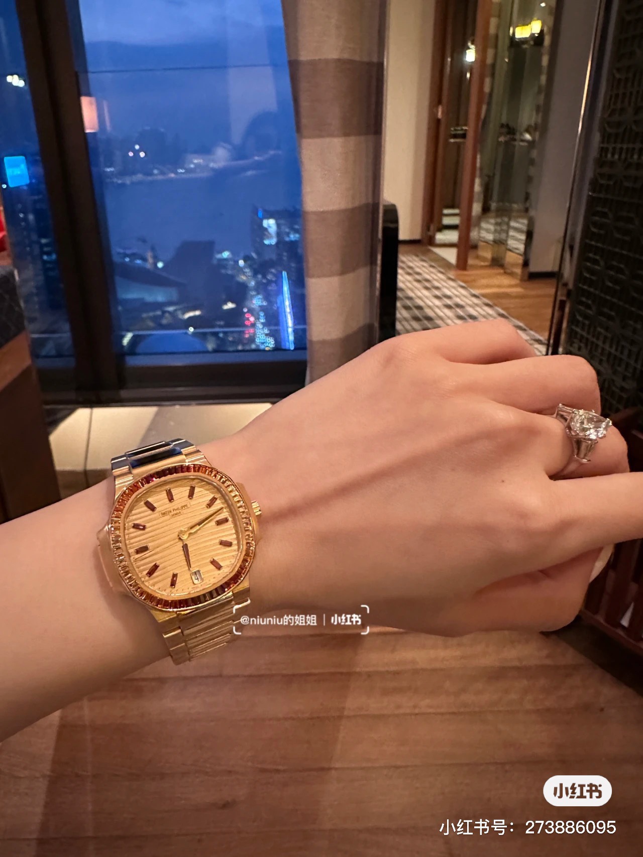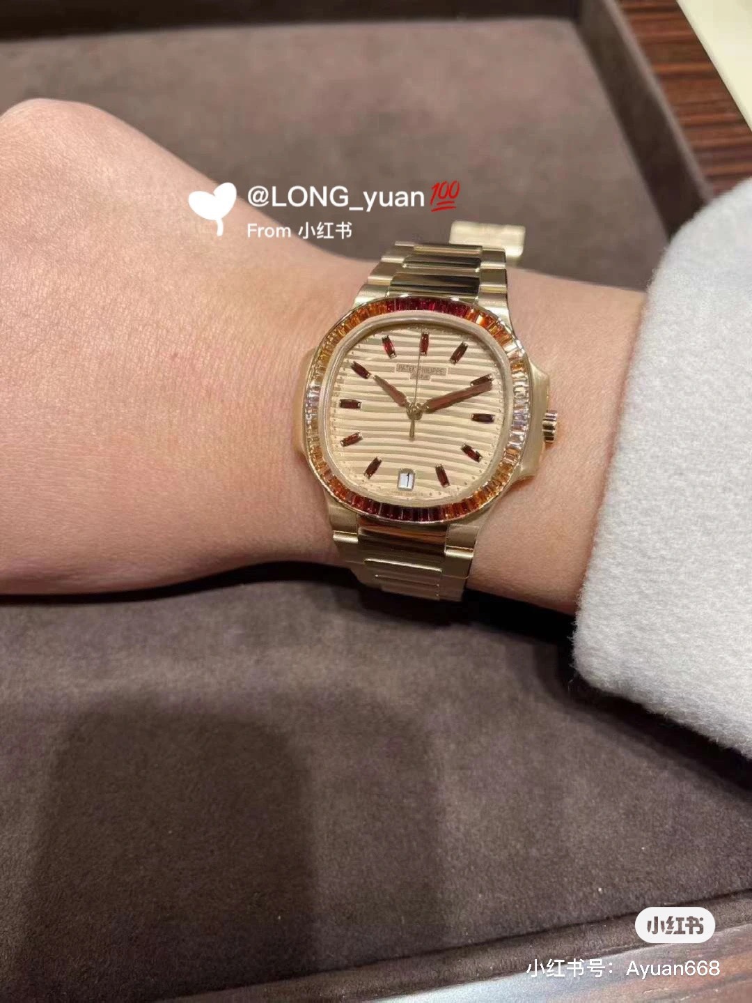 这款手表是AAAAA 1:1 质量 (非常棒). 使用了和原版一模一样的材料. 商标部分也保持了和百达翡丽/Patek Philippe一样. 图片拍摄是实物手表拍摄, 您所收到的实物保证和我们图片一模一样.
