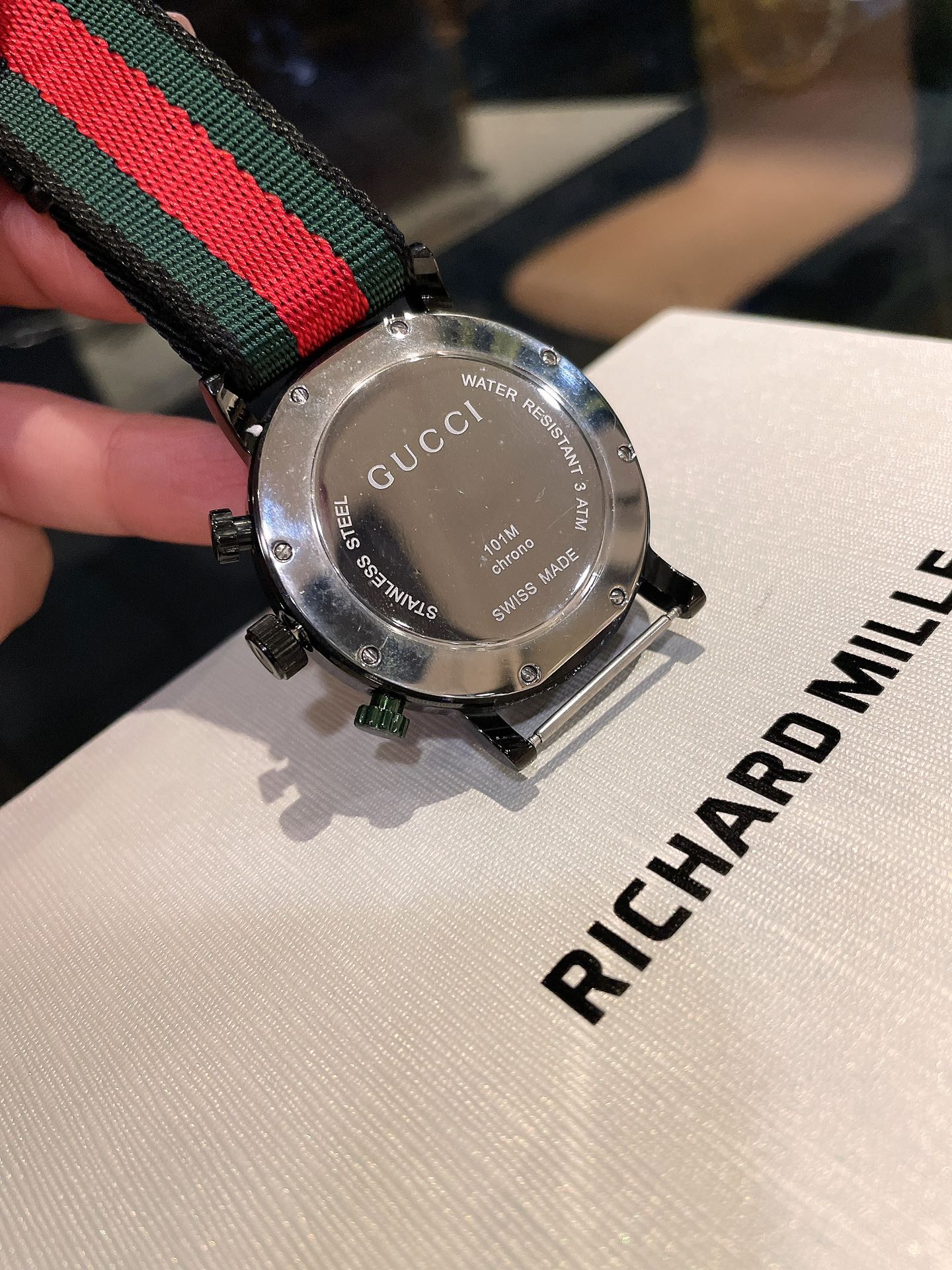 这款手表是AAAAA 1:1 质量 (非常棒). 使用了和原版一模一样的材料. 商标部分也保持了和古奇/Gucci一样. 图片拍摄是实物手表拍摄, 您所收到的实物保证和我们图片一模一样.