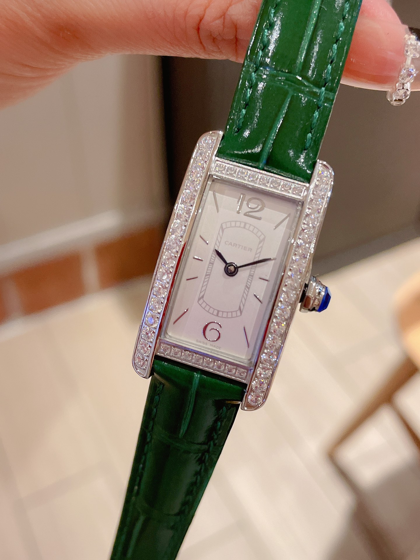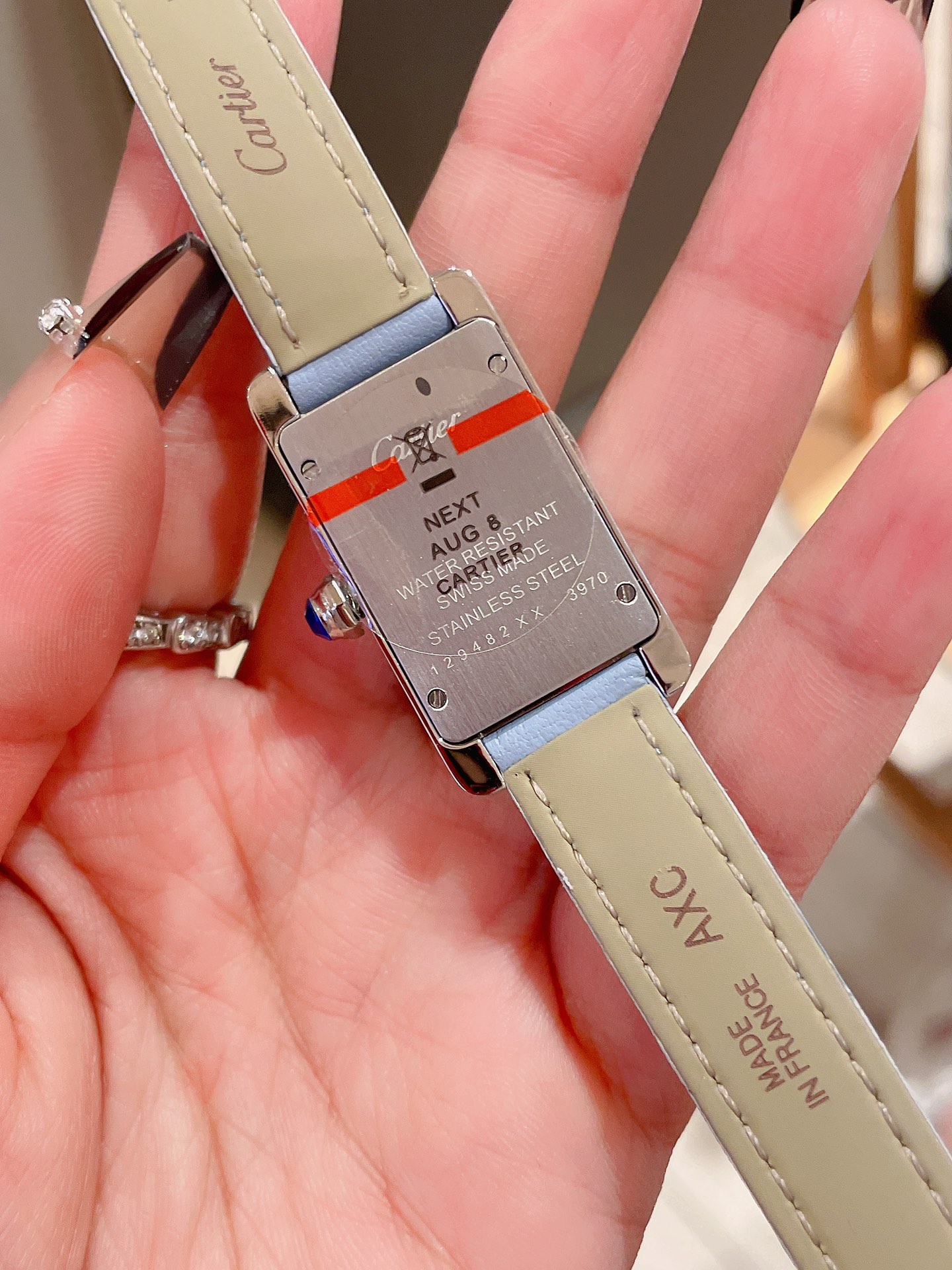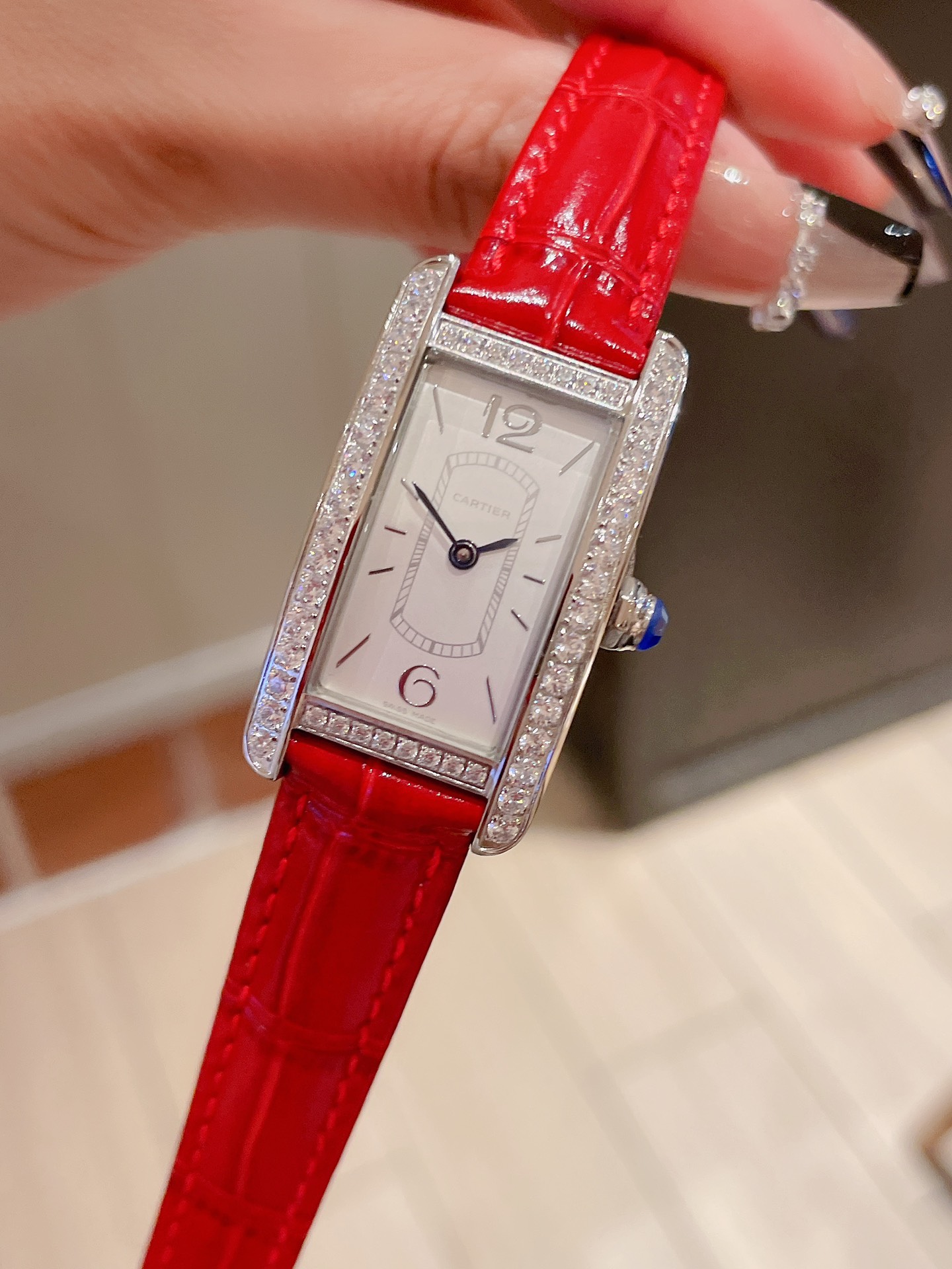 这款手表是AAAAA 1:1 质量 (非常棒). 使用了和原版一模一样的材料. 商标部分也保持了和卡地亚/Cartier一样. 图片拍摄是实物手表拍摄, 您所收到的实物保证和我们图片一模一样.
