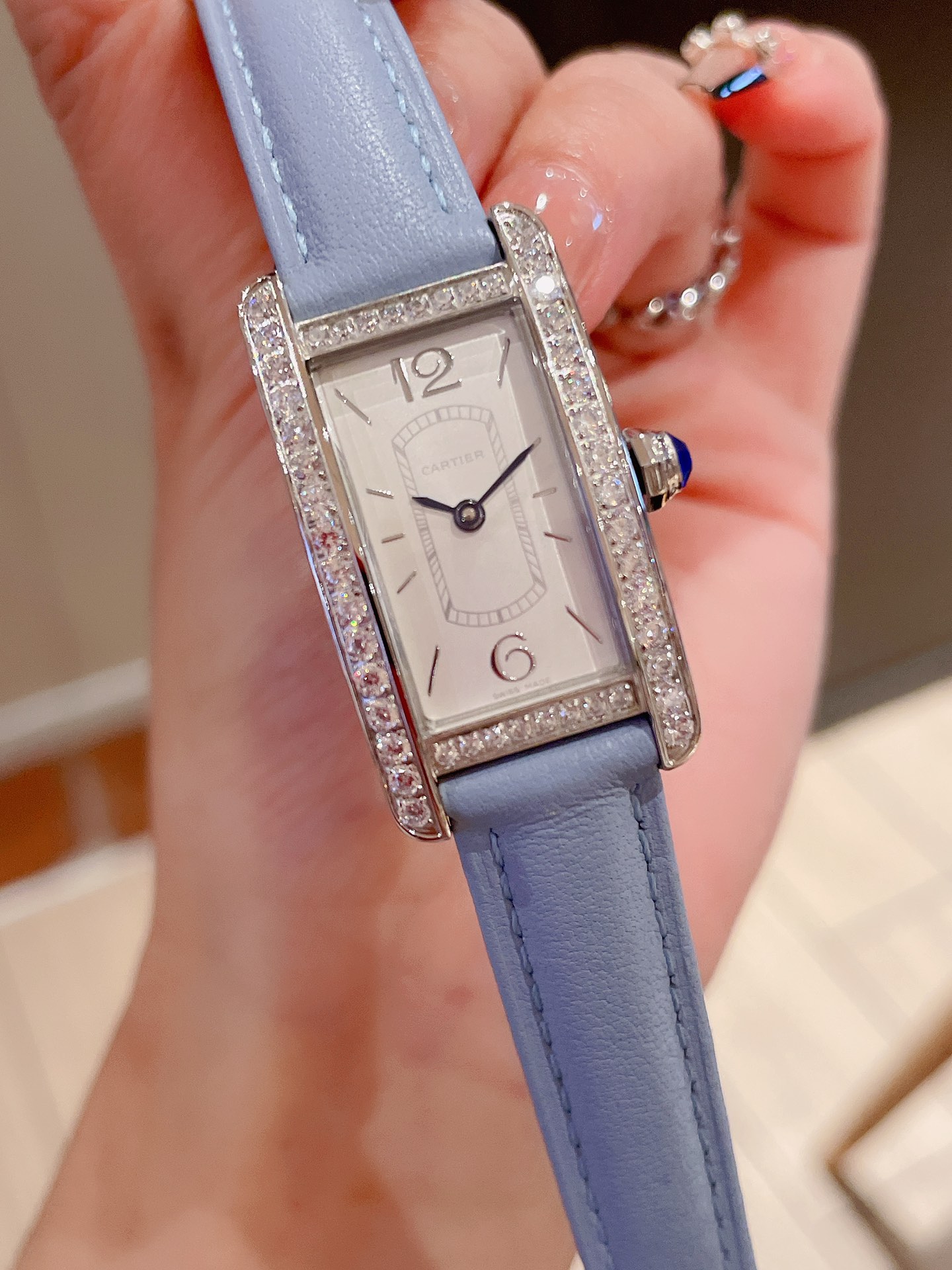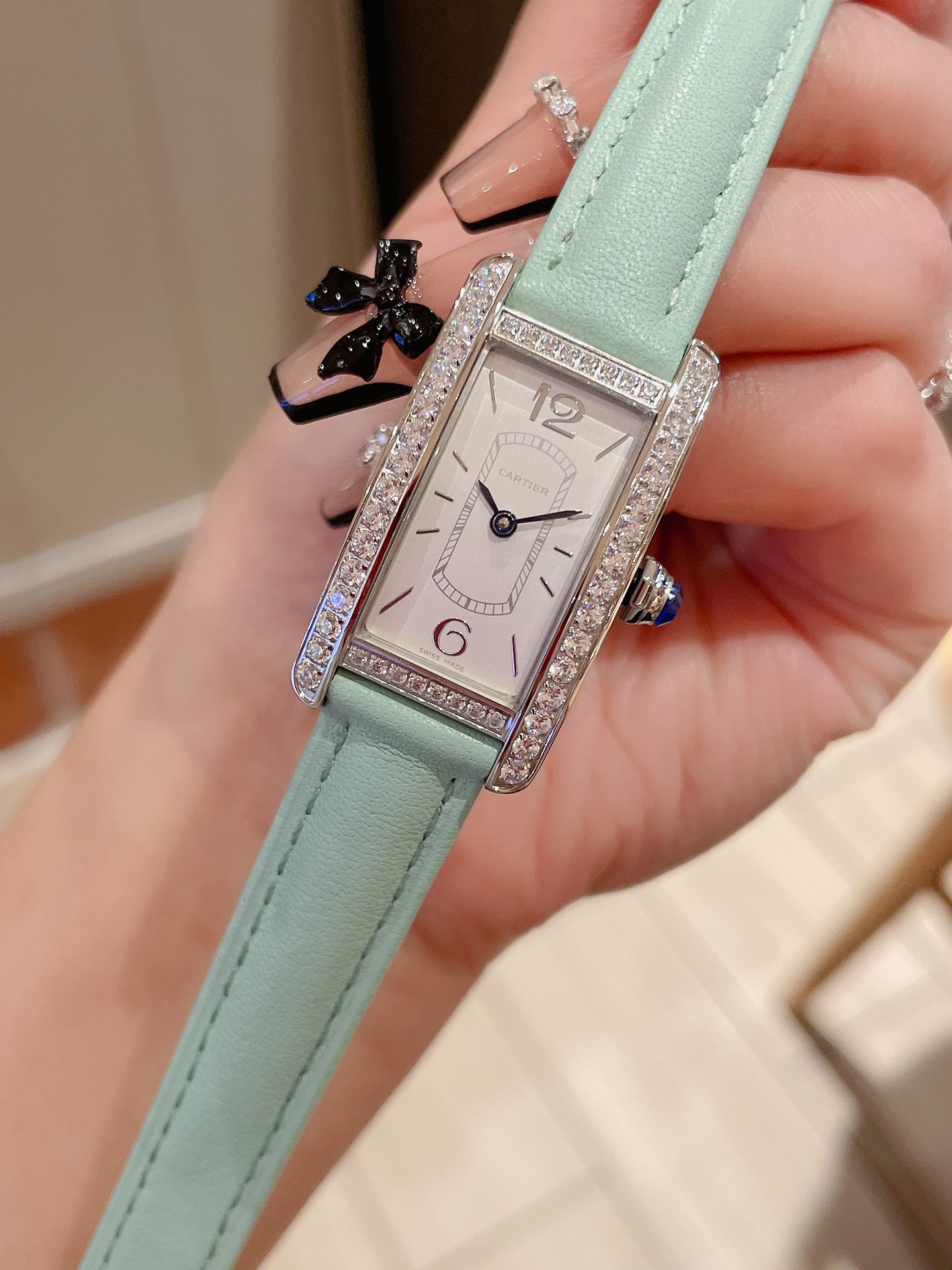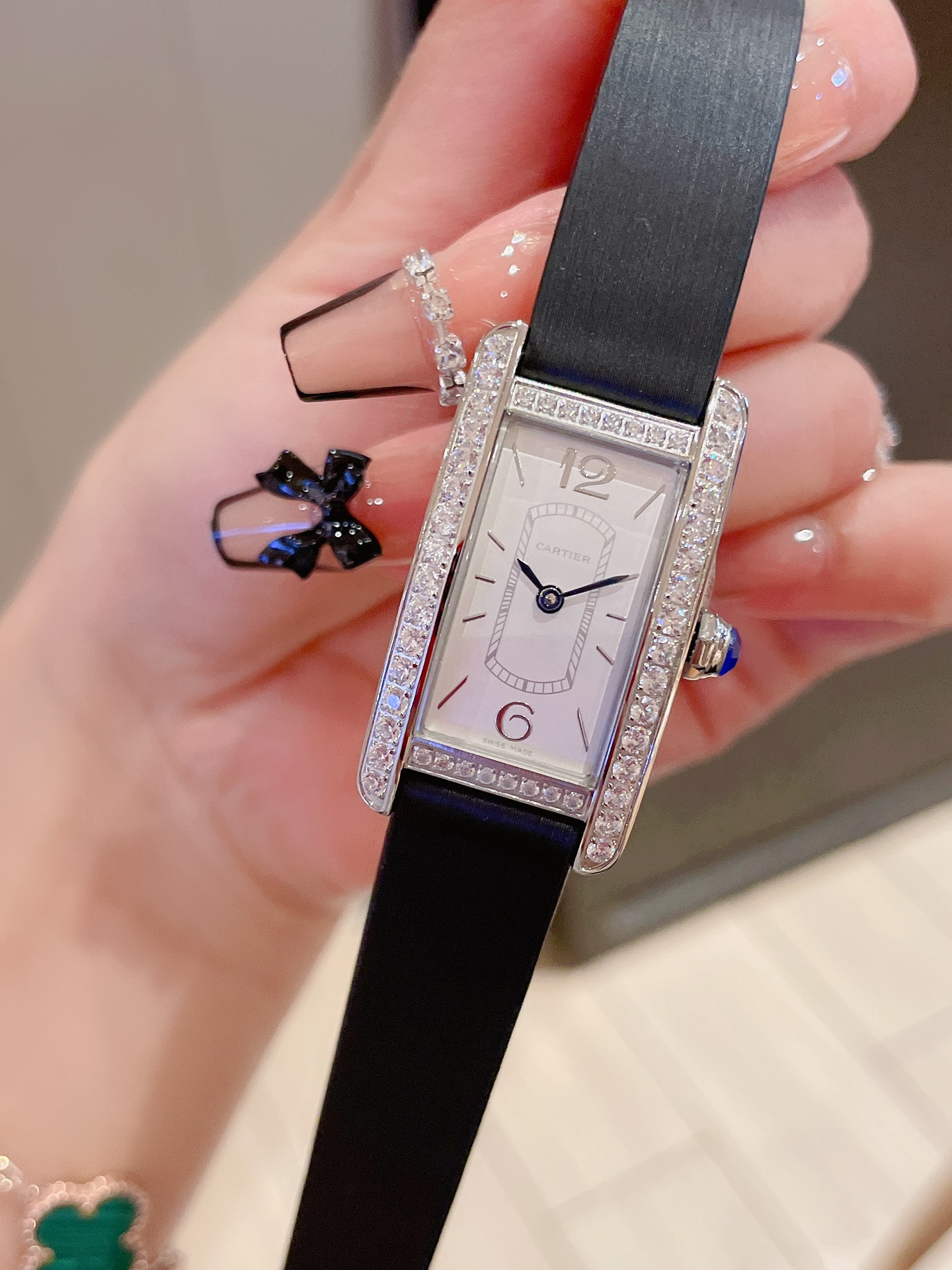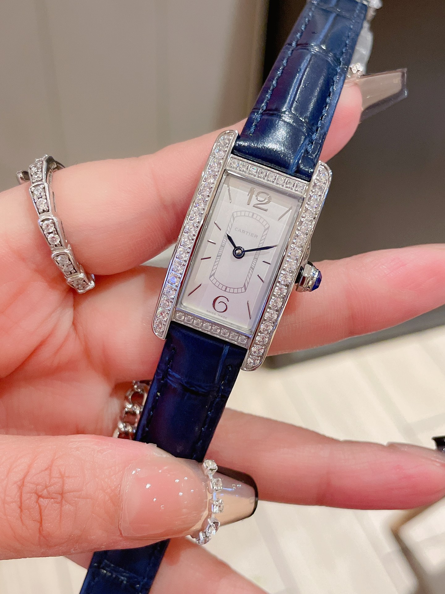 这款手表是AAAAA 1:1 质量 (非常棒). 使用了和原版一模一样的材料. 商标部分也保持了和卡地亚/Cartier一样. 图片拍摄是实物手表拍摄, 您所收到的实物保证和我们图片一模一样.