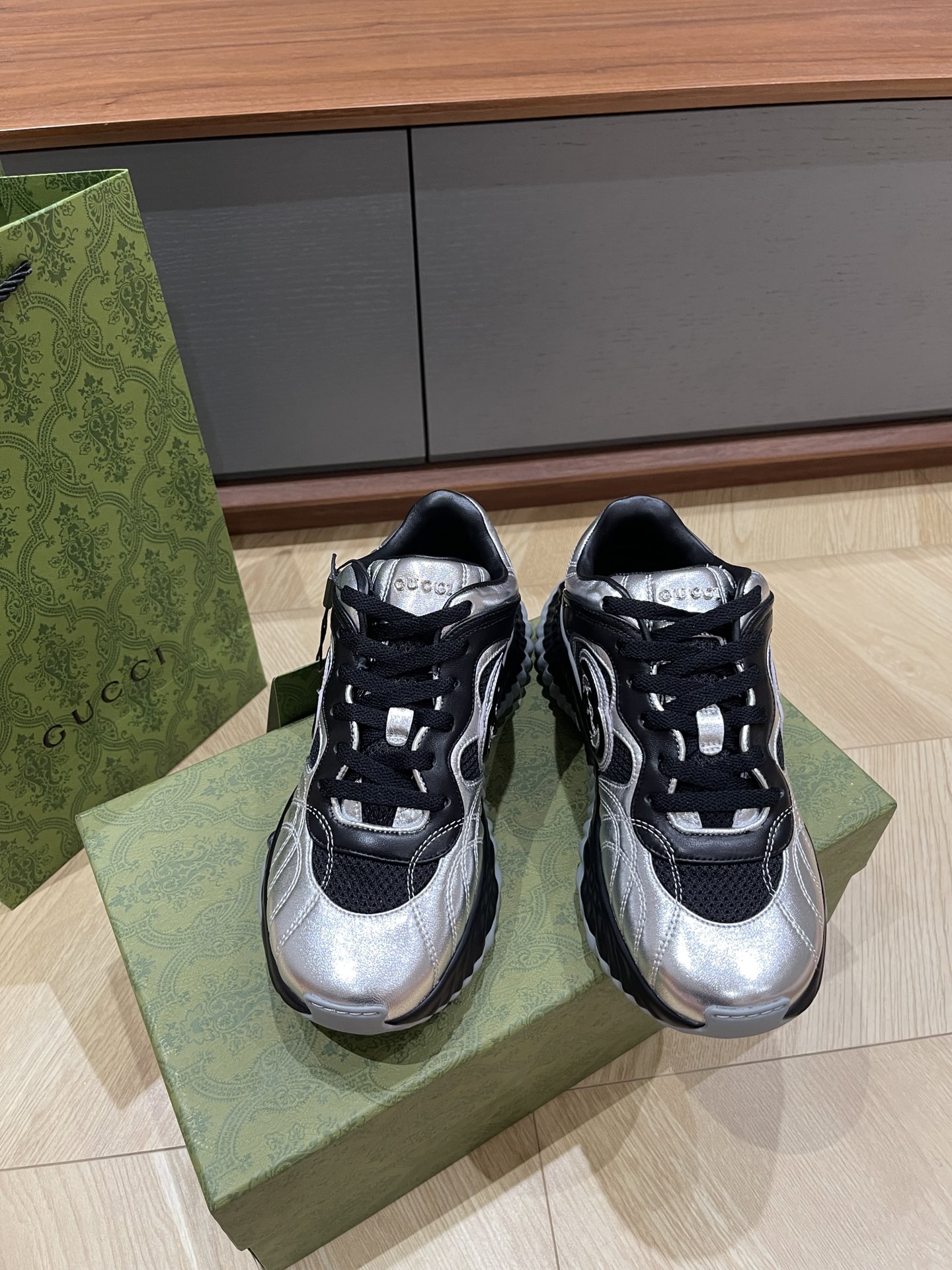 这款鞋子是AAAAA 1:1 质量 (非常棒). 使用了和原版一模一样的材料. 商标部分也保持了和古奇/Gucci一样. 图片拍摄是实物鞋子拍摄, 您所收到的实物保证和我们图片一模一样.
