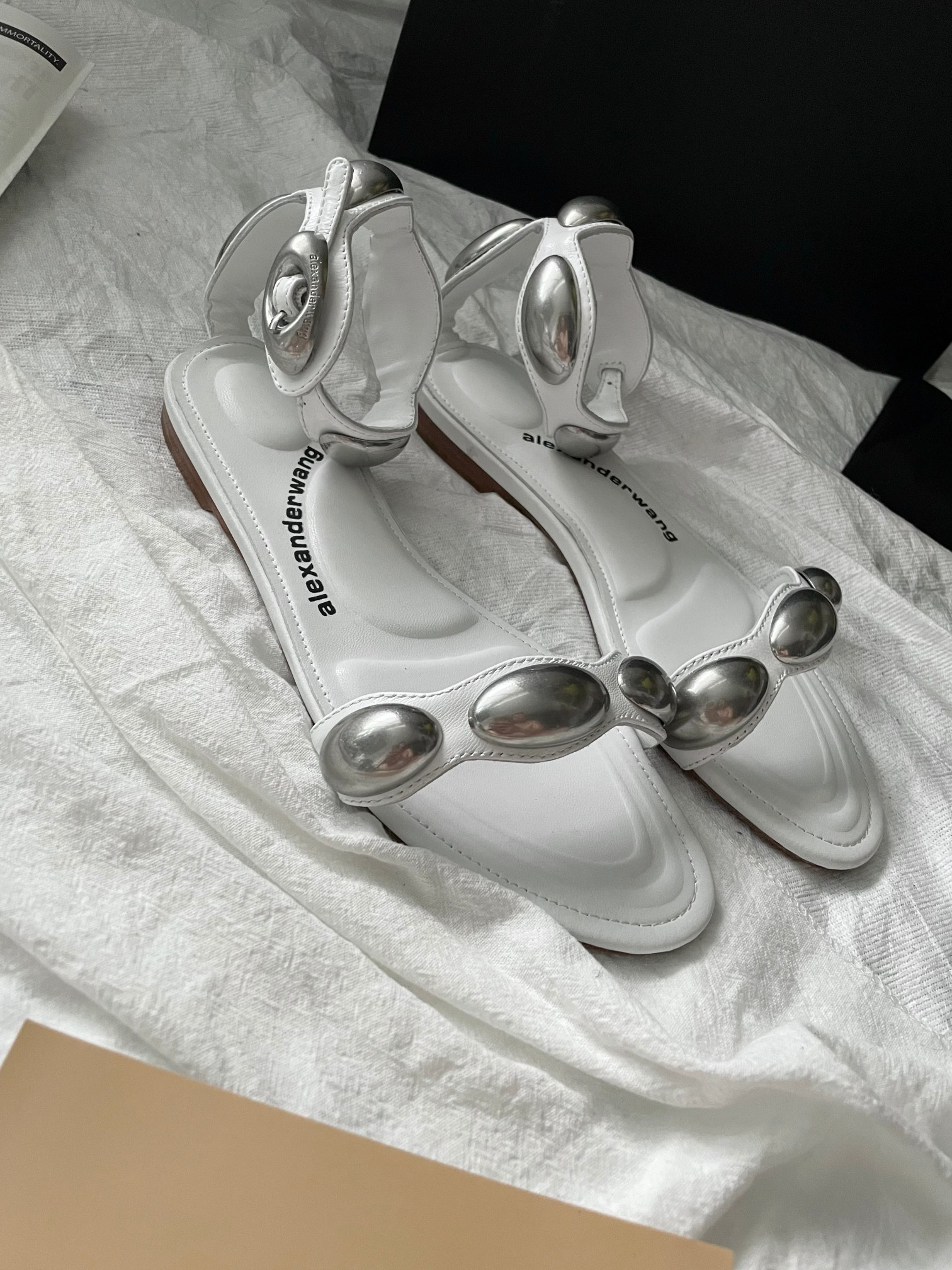 这款鞋子是AAAAA 1:1 质量 (非常棒). 使用了和原版一模一样的材料. 商标部分也保持了和亚历山大王/Alexander Wang一样. 图片拍摄是实物鞋子拍摄, 您所收到的实物保证和我们图片一模一样.