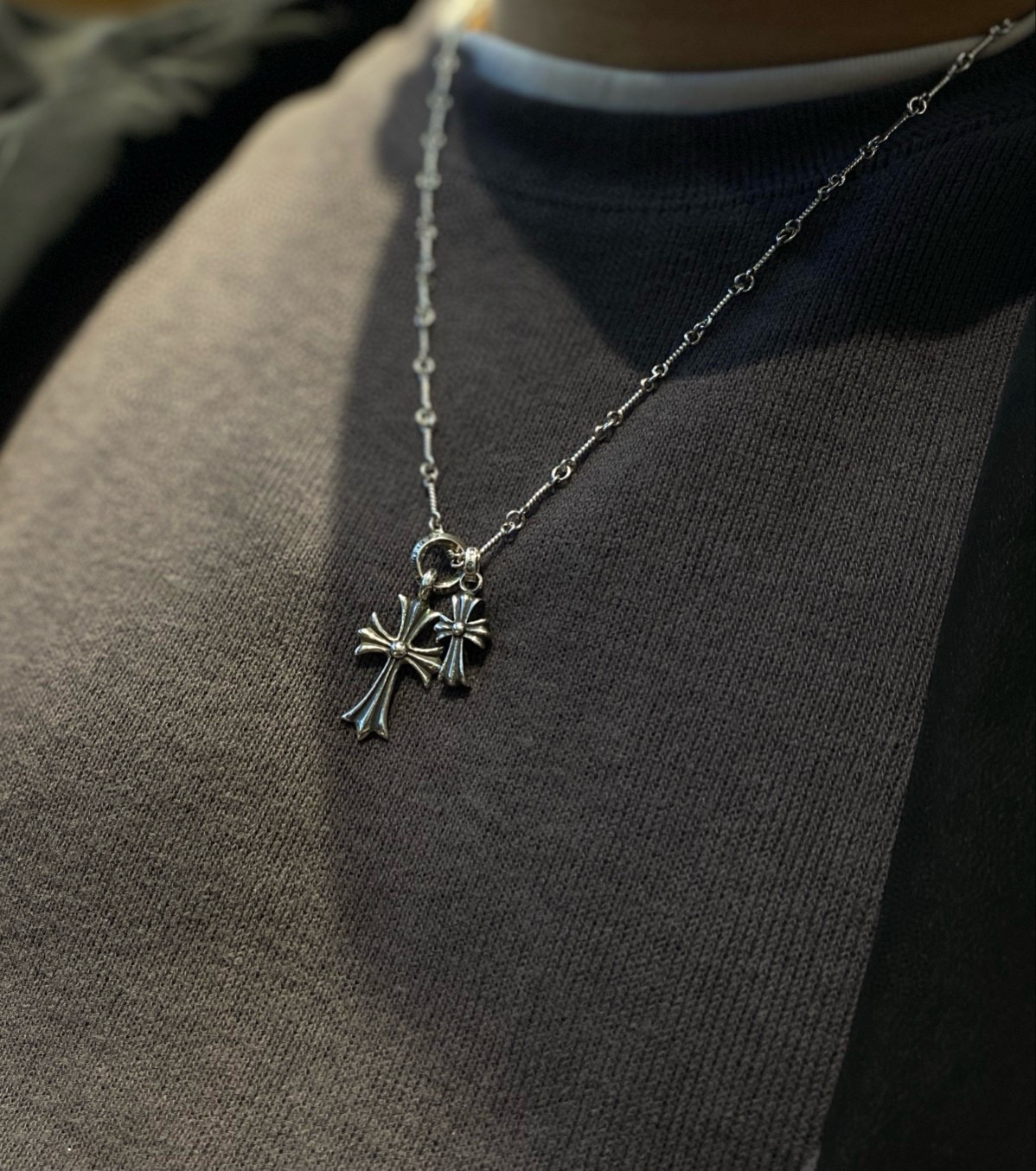 这款首饰是AAAAA 1:1 质量 (非常棒). 使用了和原版一模一样的材料. 商标部分也保持了和克罗心/Chrome Hearts一样. 图片拍摄是实物首饰拍摄, 您所收到的实物保证和我们图片一模一样.