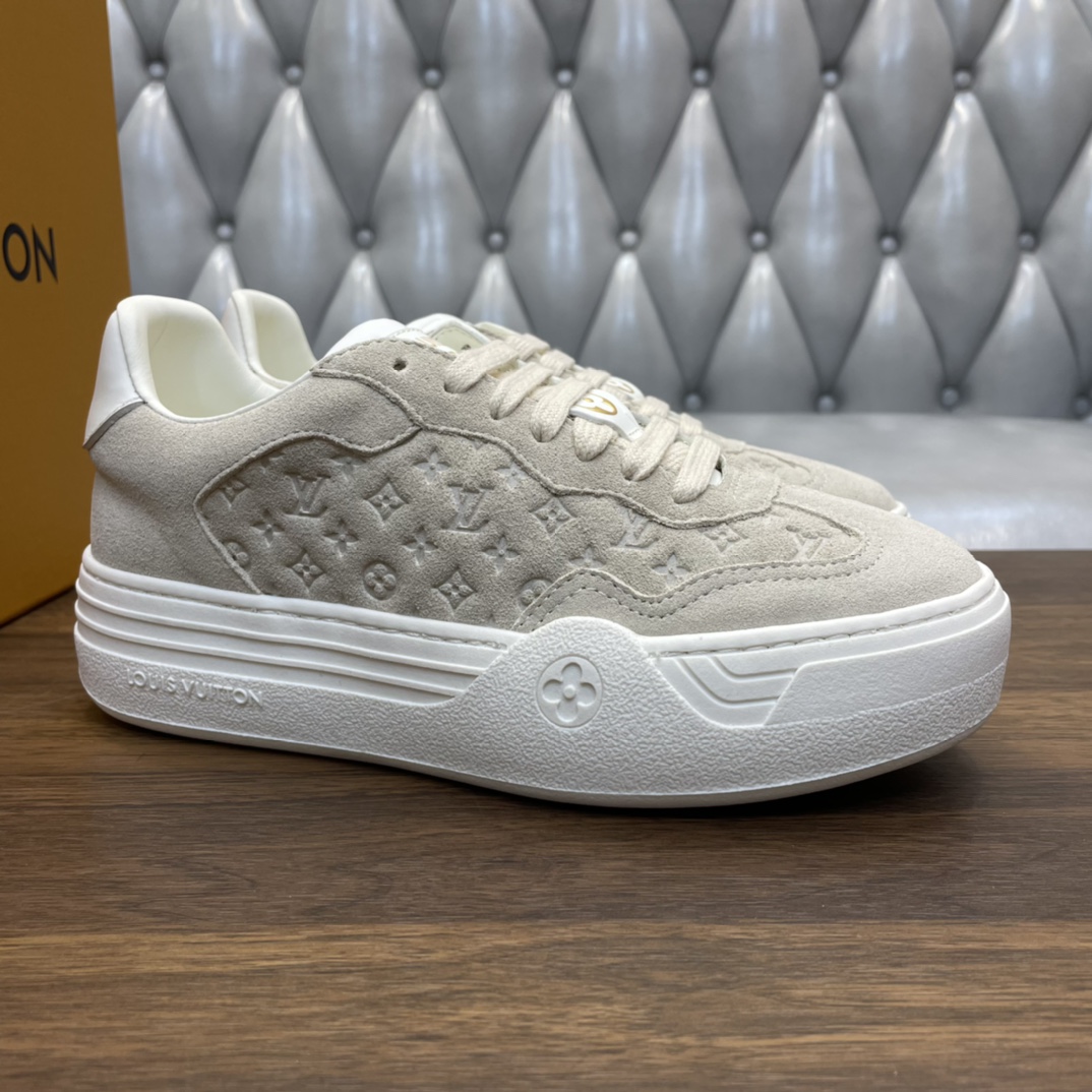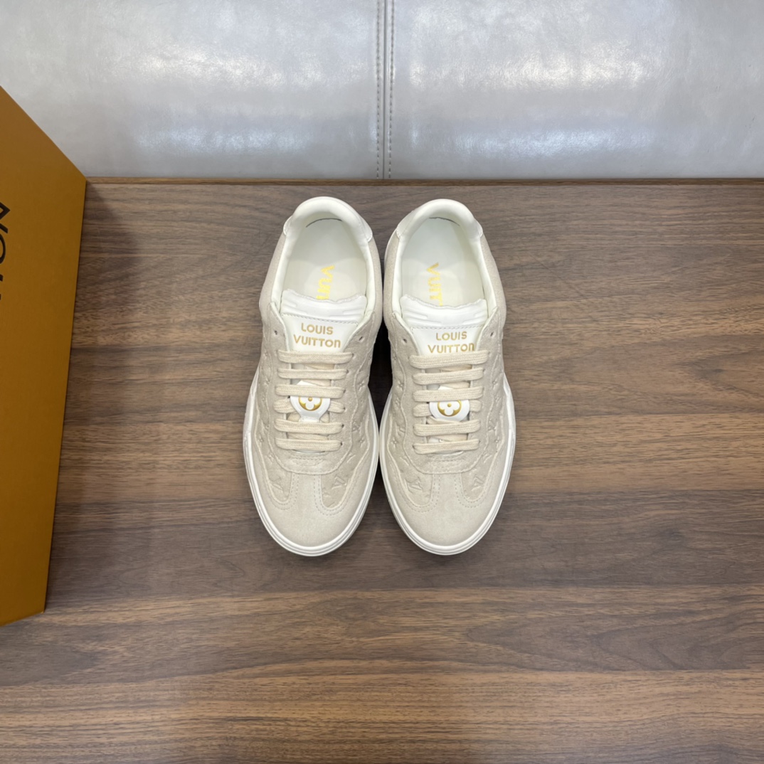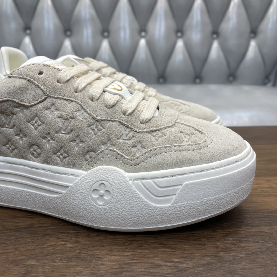 这款鞋子是AAAAA 1:1 质量 (非常棒). 使用了和原版一模一样的材料. 商标部分也保持了和路易威登/Louis Vuitton一样. 图片拍摄是实物鞋子拍摄, 您所收到的实物保证和我们图片一模一样.
