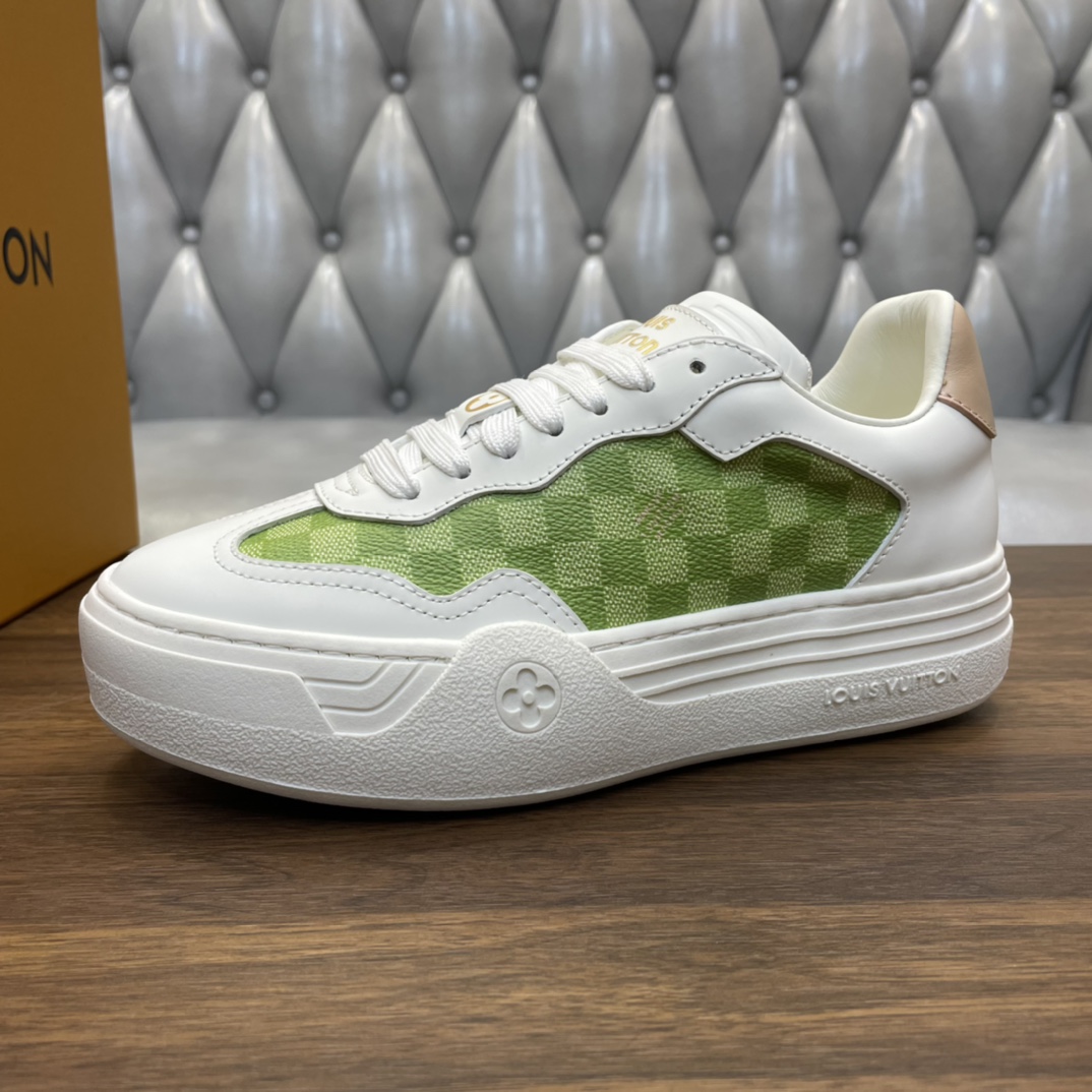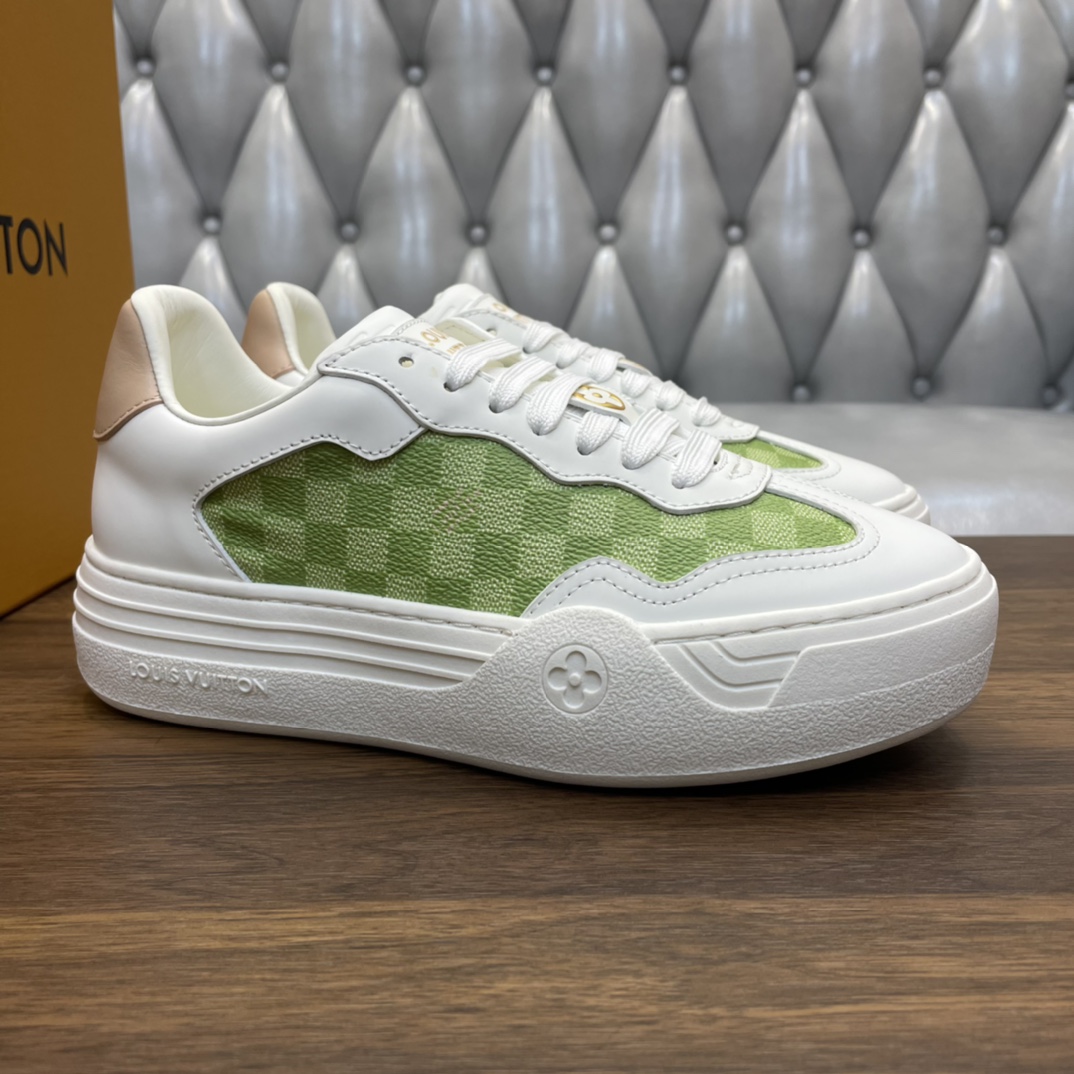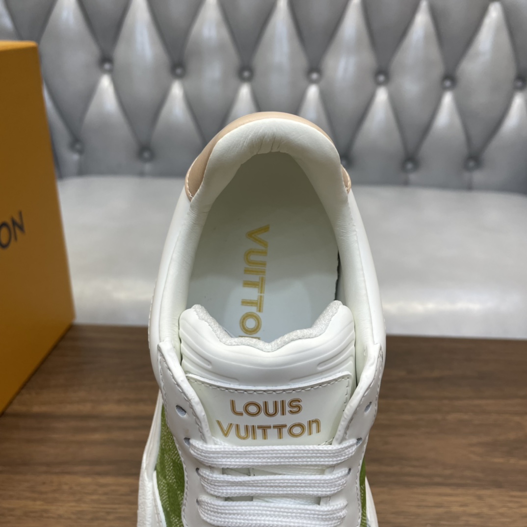 这款鞋子是AAAAA 1:1 质量 (非常棒). 使用了和原版一模一样的材料. 商标部分也保持了和路易威登/Louis Vuitton一样. 图片拍摄是实物鞋子拍摄, 您所收到的实物保证和我们图片一模一样.