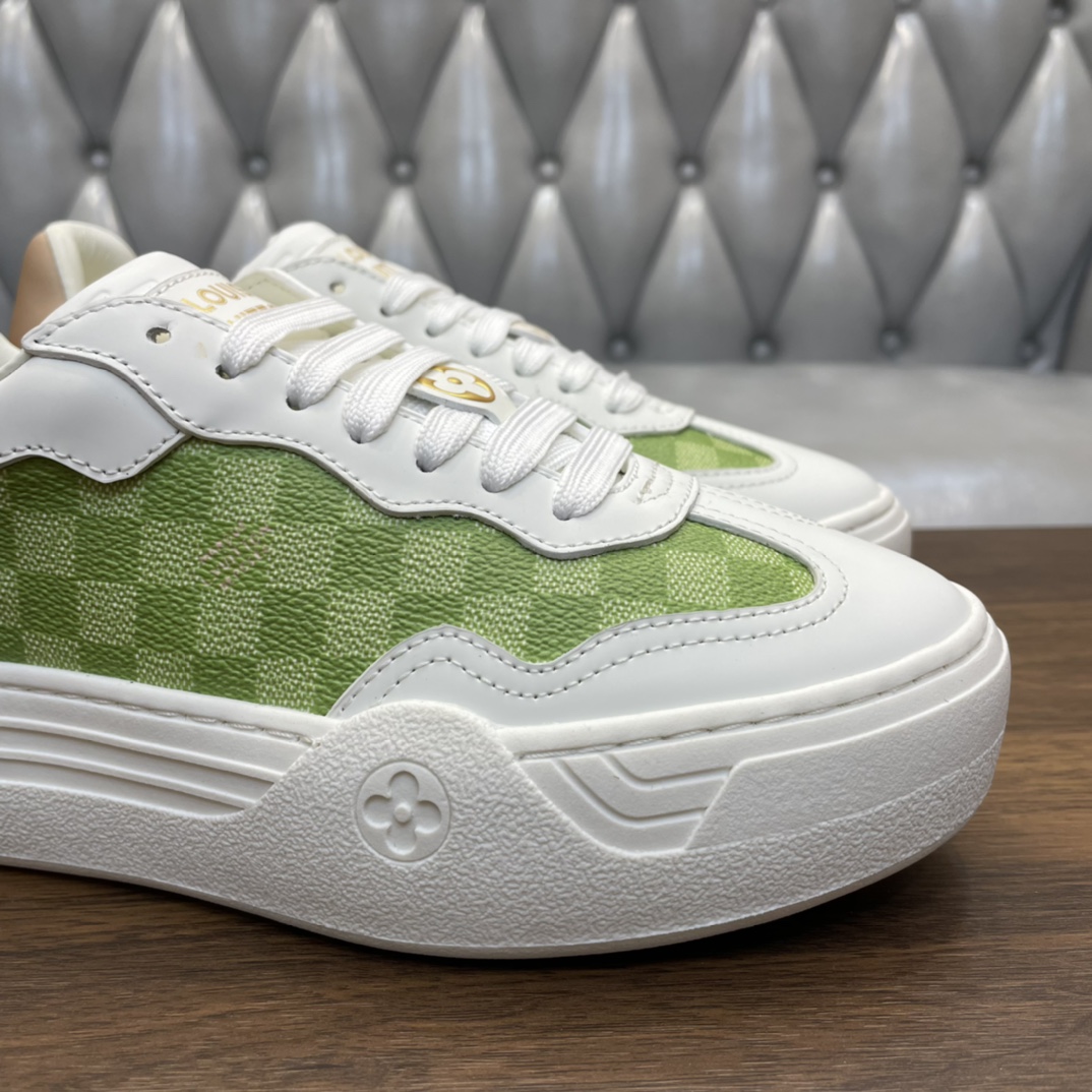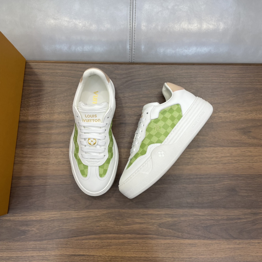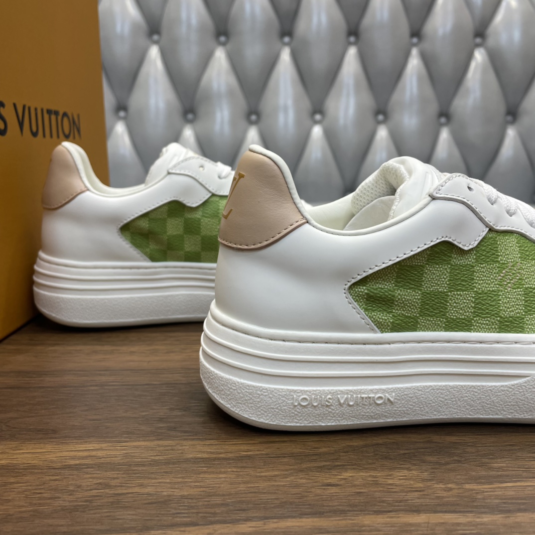 这款鞋子是AAAAA 1:1 质量 (非常棒). 使用了和原版一模一样的材料. 商标部分也保持了和路易威登/Louis Vuitton一样. 图片拍摄是实物鞋子拍摄, 您所收到的实物保证和我们图片一模一样.