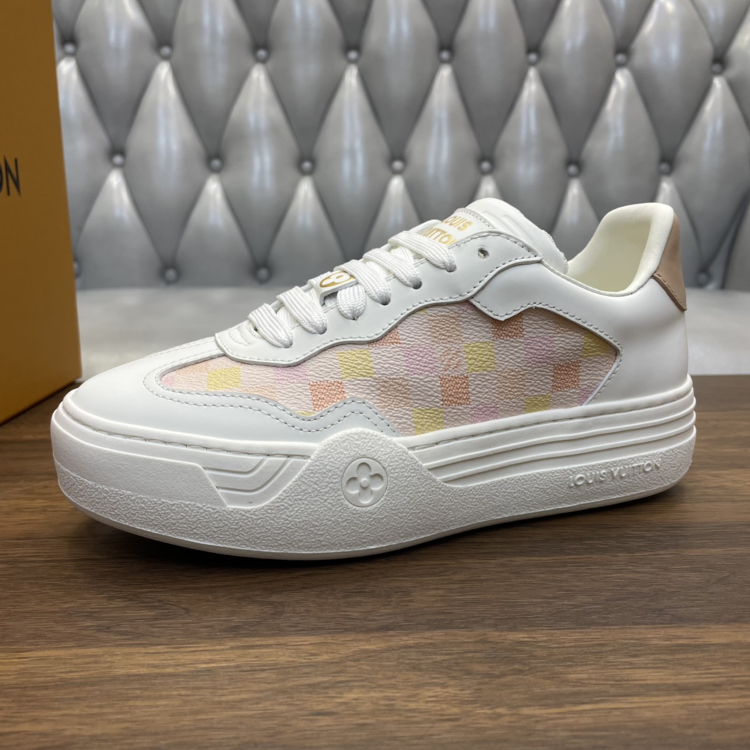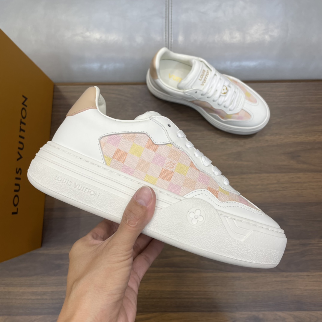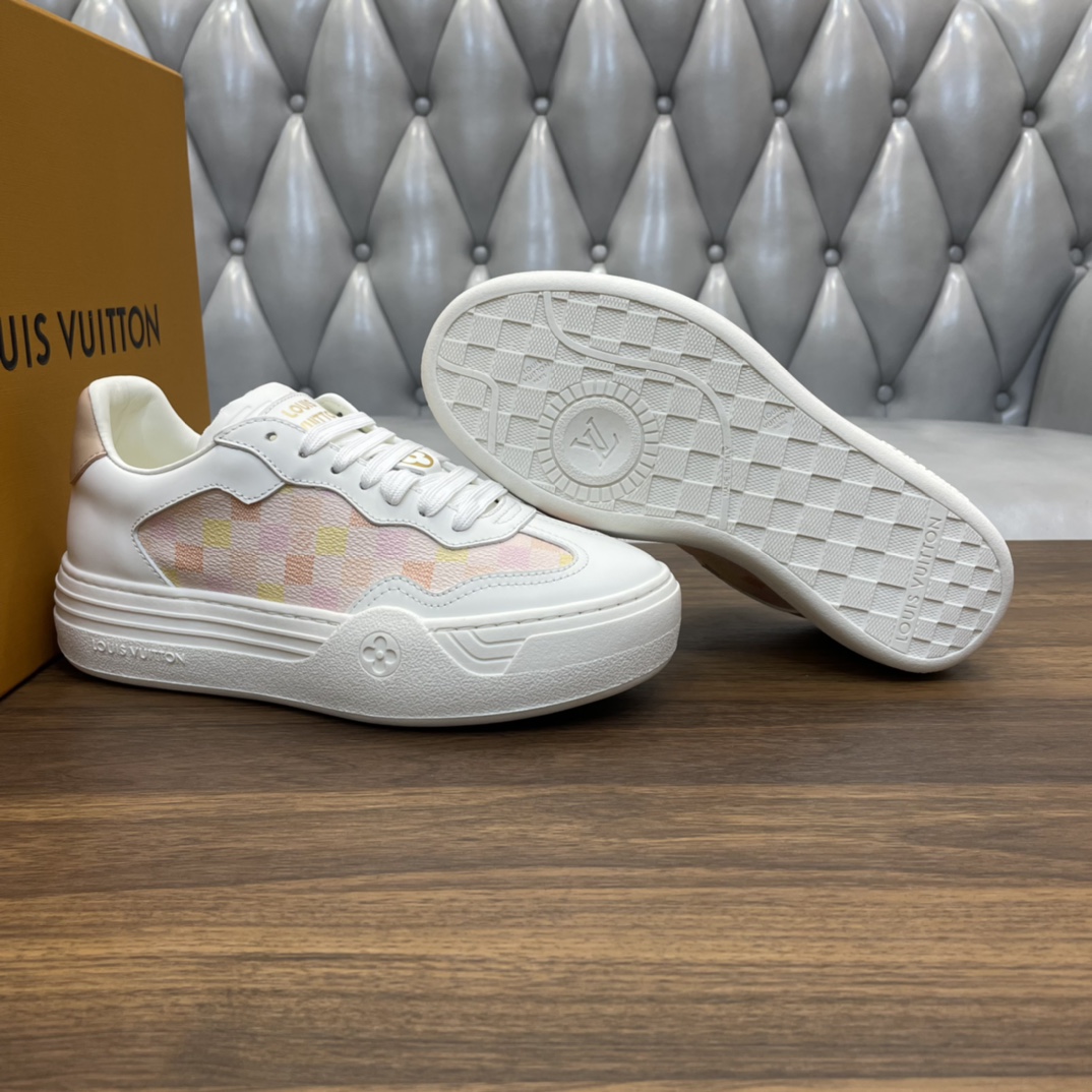 这款鞋子是AAAAA 1:1 质量 (非常棒). 使用了和原版一模一样的材料. 商标部分也保持了和路易威登/Louis Vuitton一样. 图片拍摄是实物鞋子拍摄, 您所收到的实物保证和我们图片一模一样.