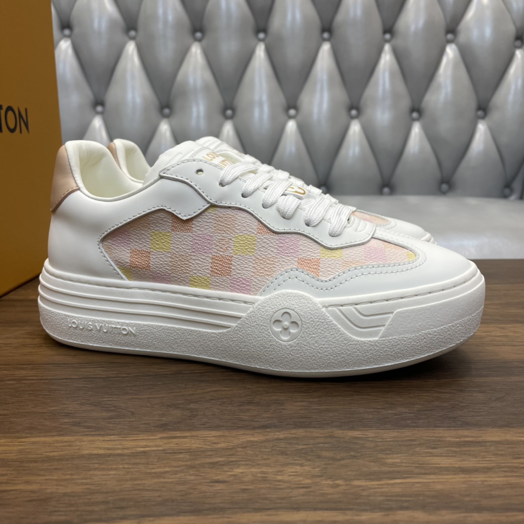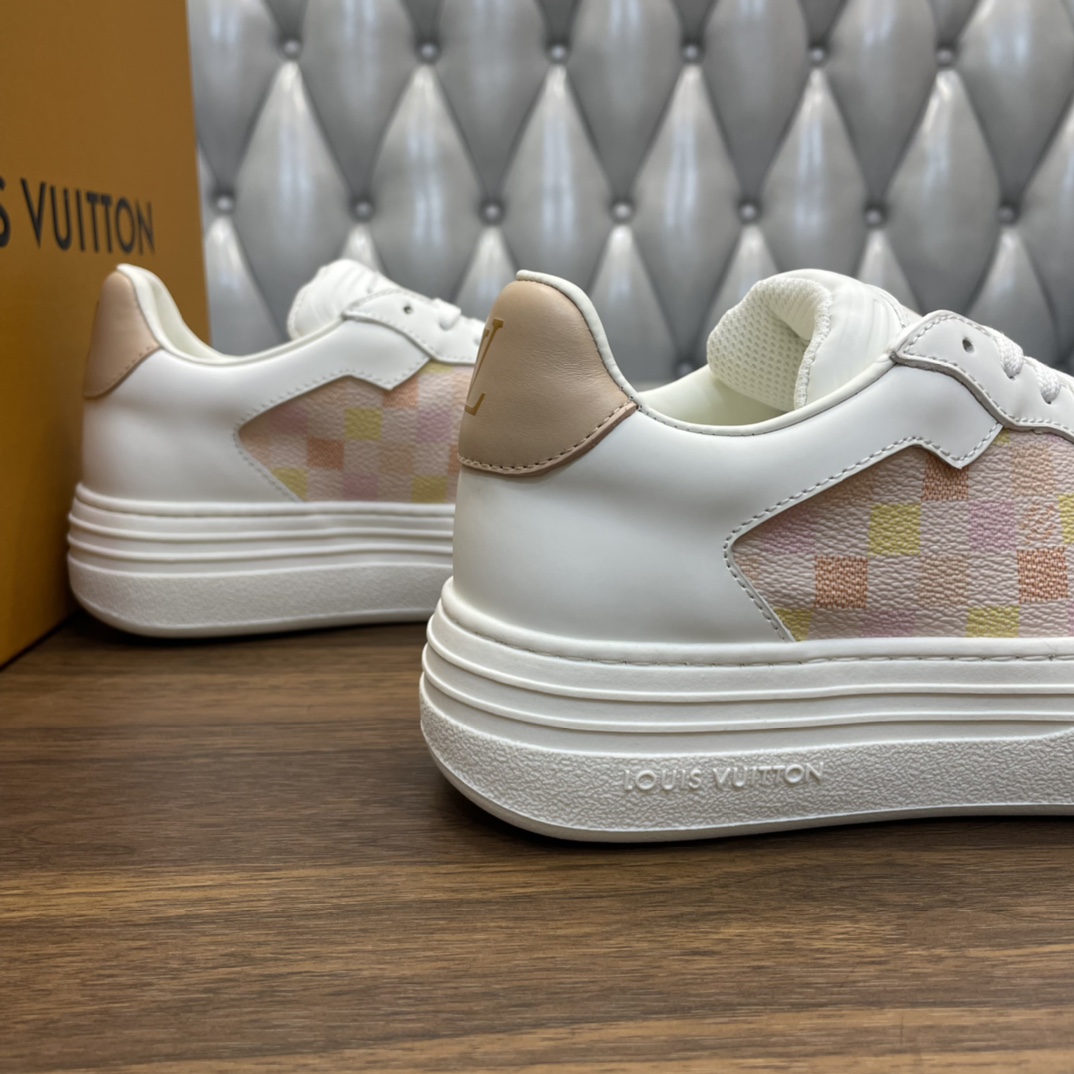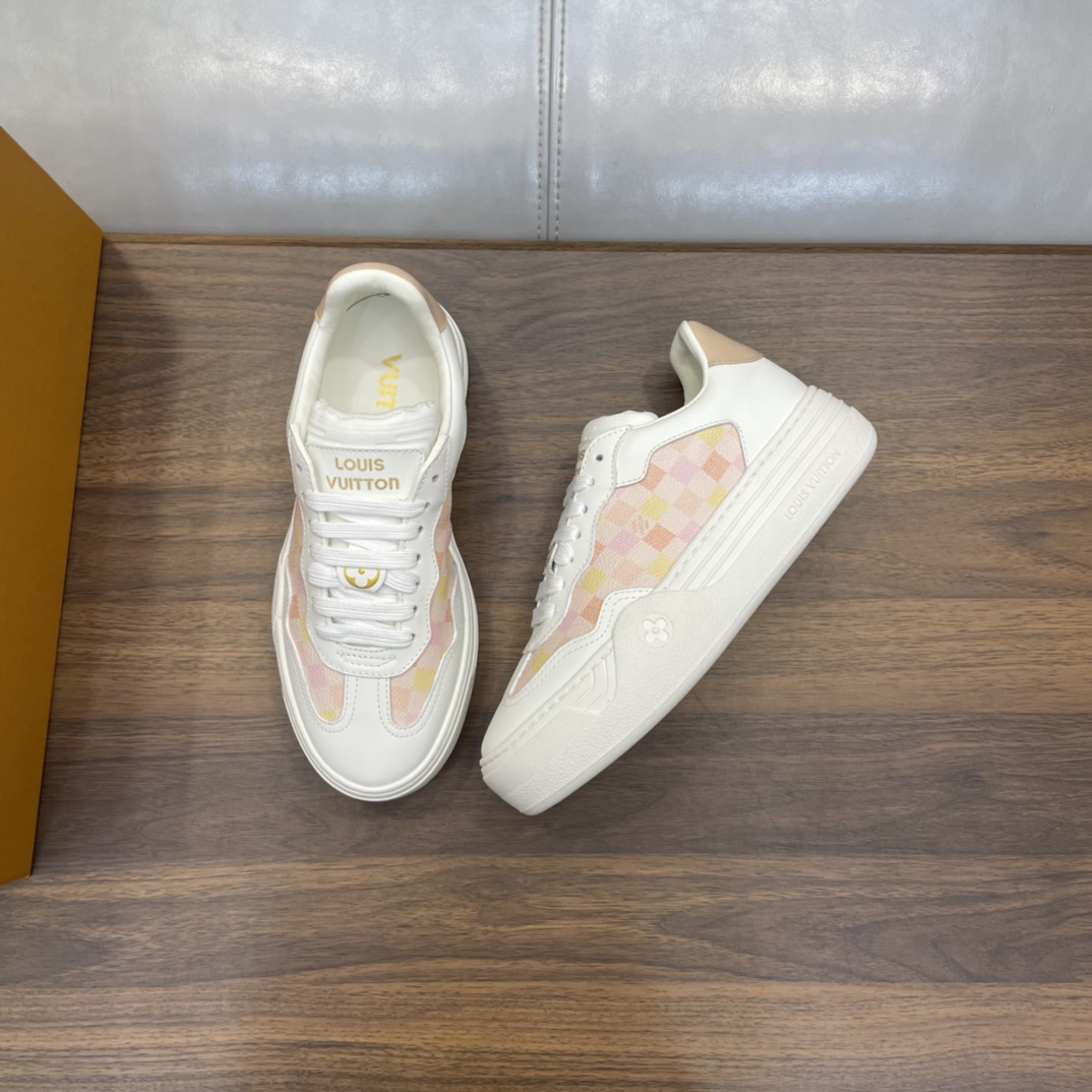 这款鞋子是AAAAA 1:1 质量 (非常棒). 使用了和原版一模一样的材料. 商标部分也保持了和路易威登/Louis Vuitton一样. 图片拍摄是实物鞋子拍摄, 您所收到的实物保证和我们图片一模一样.