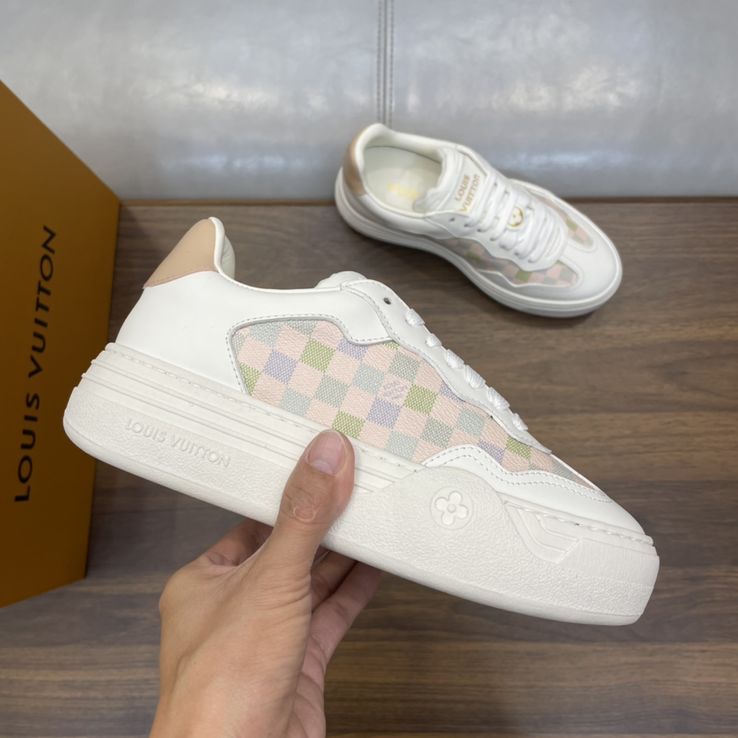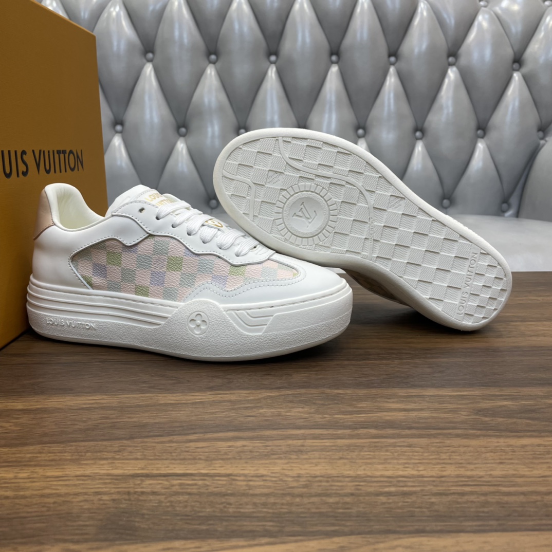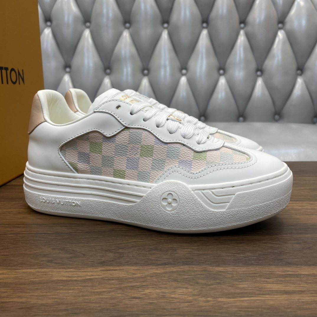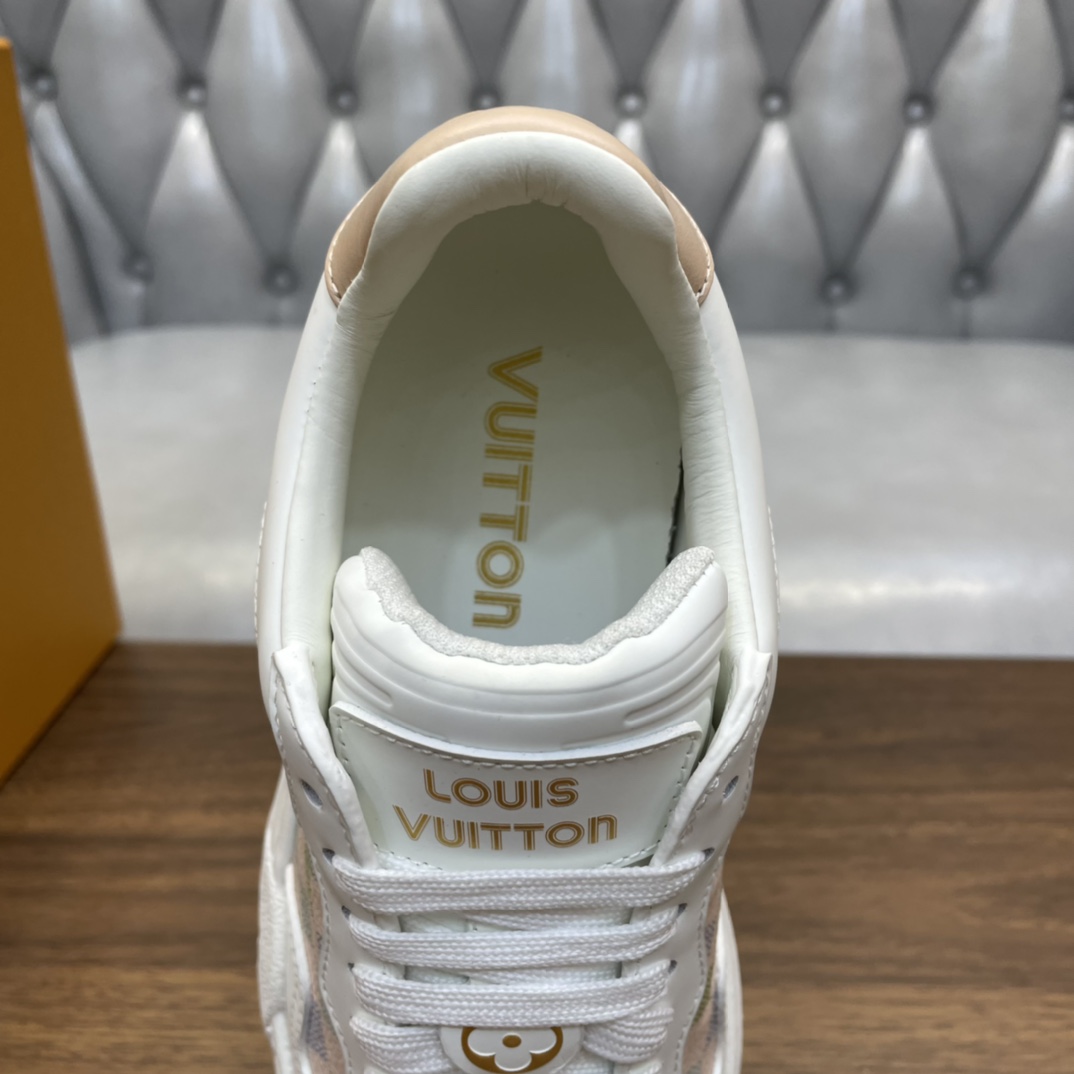这款鞋子是AAAAA 1:1 质量 (非常棒). 使用了和原版一模一样的材料. 商标部分也保持了和路易威登/Louis Vuitton一样. 图片拍摄是实物鞋子拍摄, 您所收到的实物保证和我们图片一模一样.
