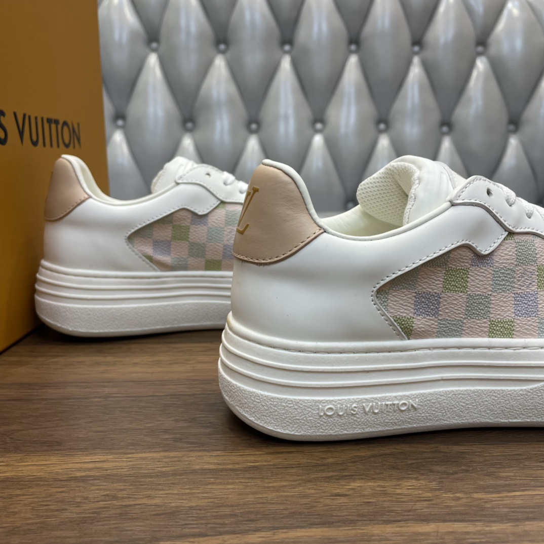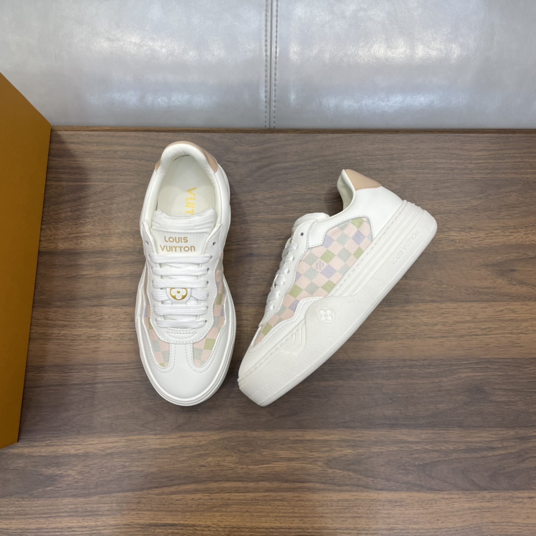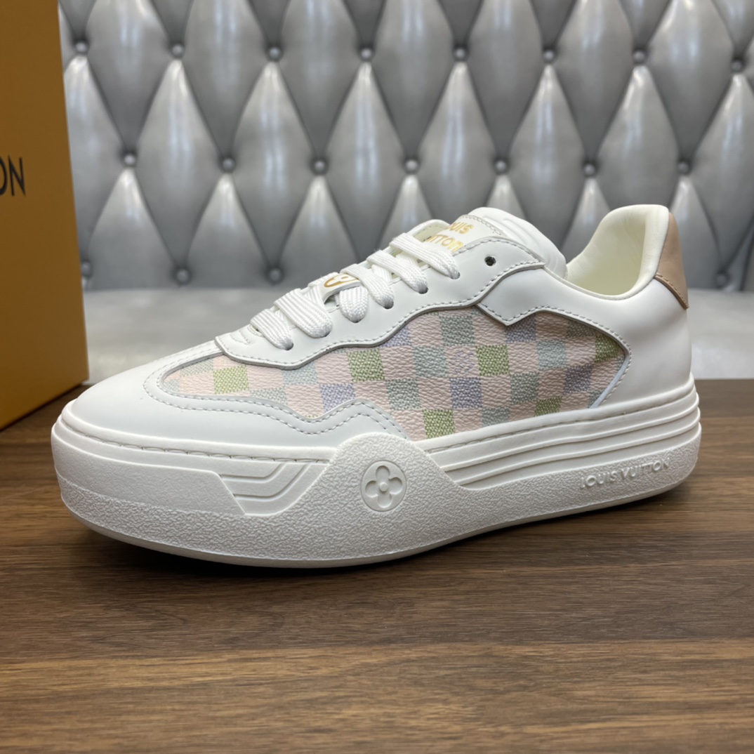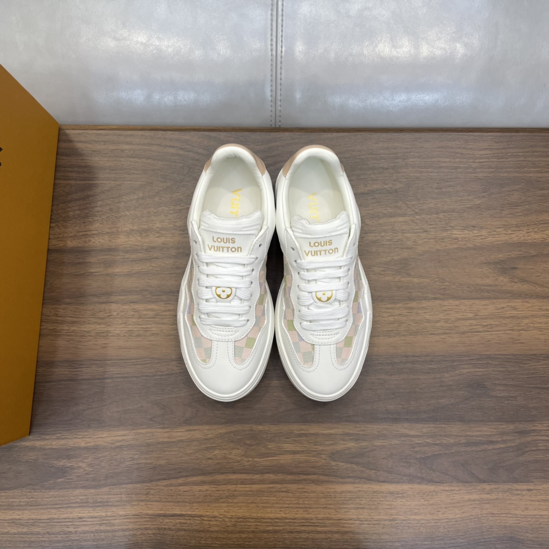 这款鞋子是AAAAA 1:1 质量 (非常棒). 使用了和原版一模一样的材料. 商标部分也保持了和路易威登/Louis Vuitton一样. 图片拍摄是实物鞋子拍摄, 您所收到的实物保证和我们图片一模一样.