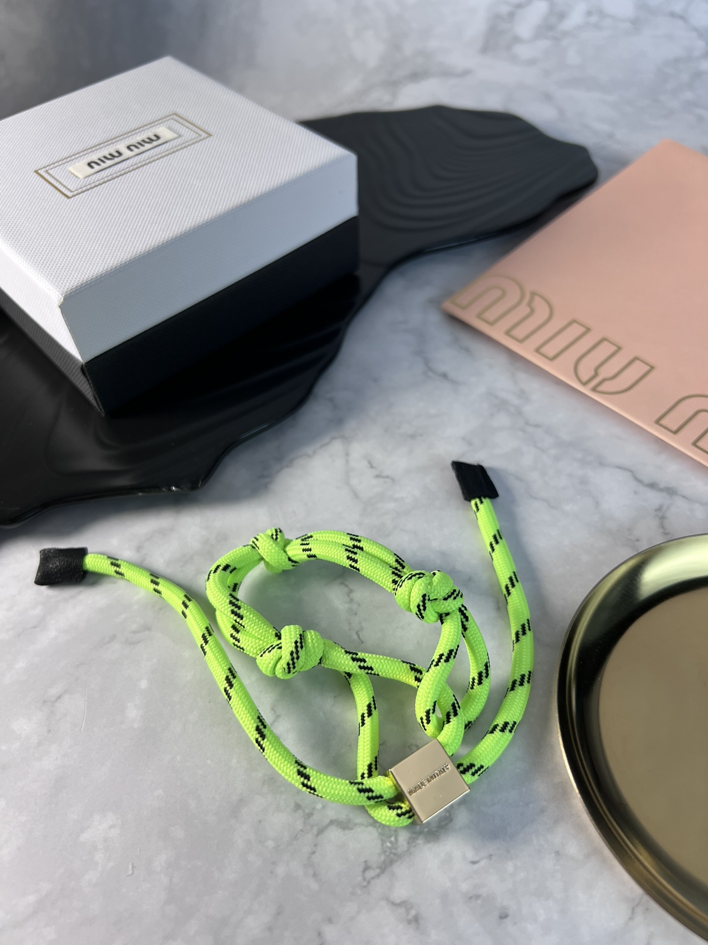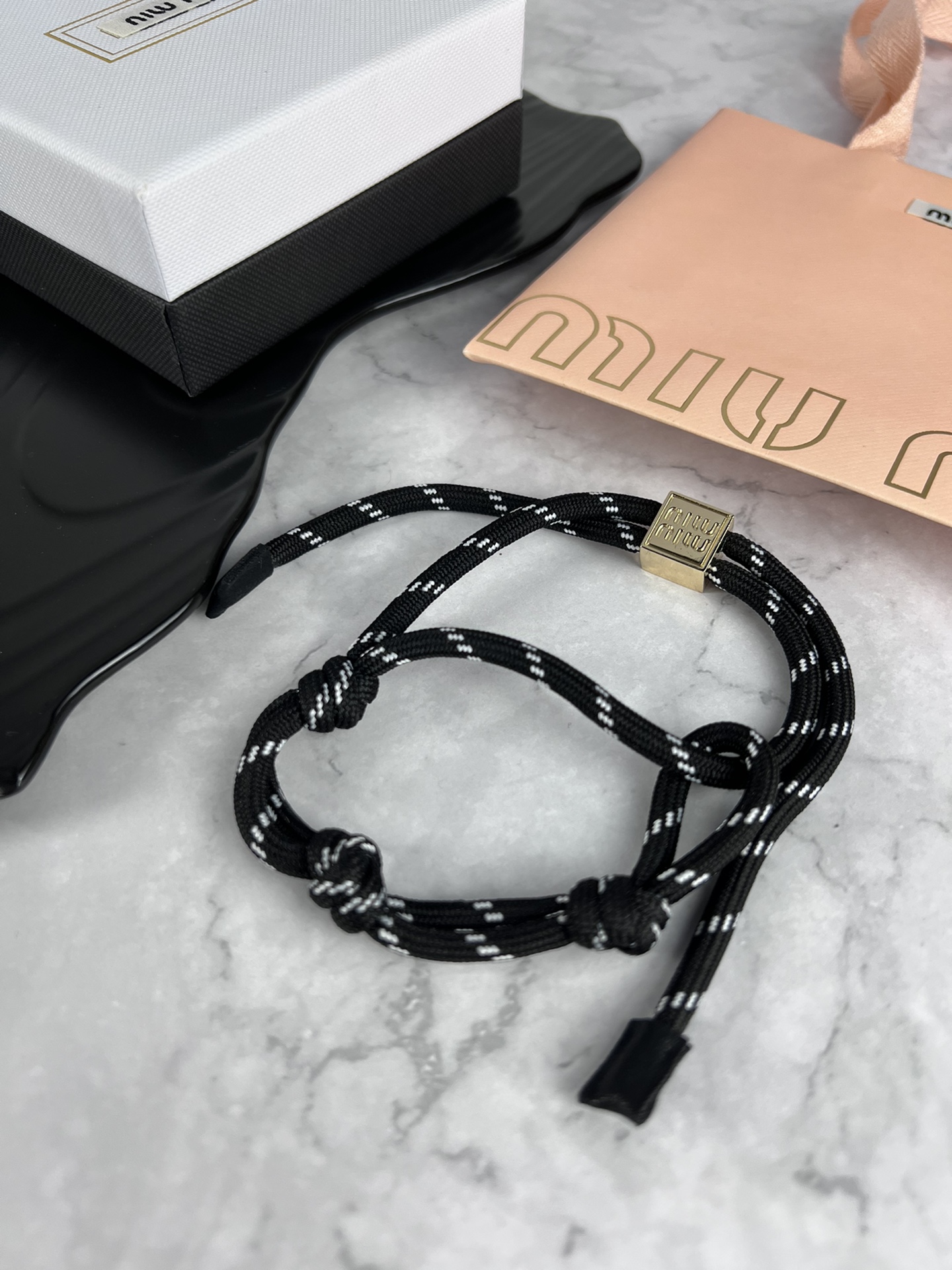 这款首饰是AAAAA 1:1 质量 (非常棒). 使用了和原版一模一样的材料. 商标部分也保持了和缪缪/Miu Miu一样. 图片拍摄是实物首饰拍摄, 您所收到的实物保证和我们图片一模一样.