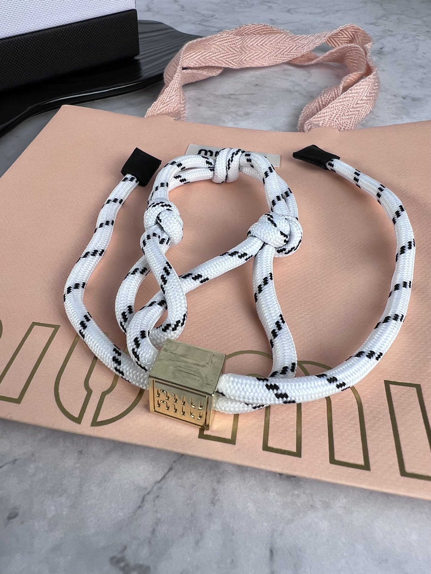 这款首饰是AAAAA 1:1 质量 (非常棒). 使用了和原版一模一样的材料. 商标部分也保持了和缪缪/Miu Miu一样. 图片拍摄是实物首饰拍摄, 您所收到的实物保证和我们图片一模一样.