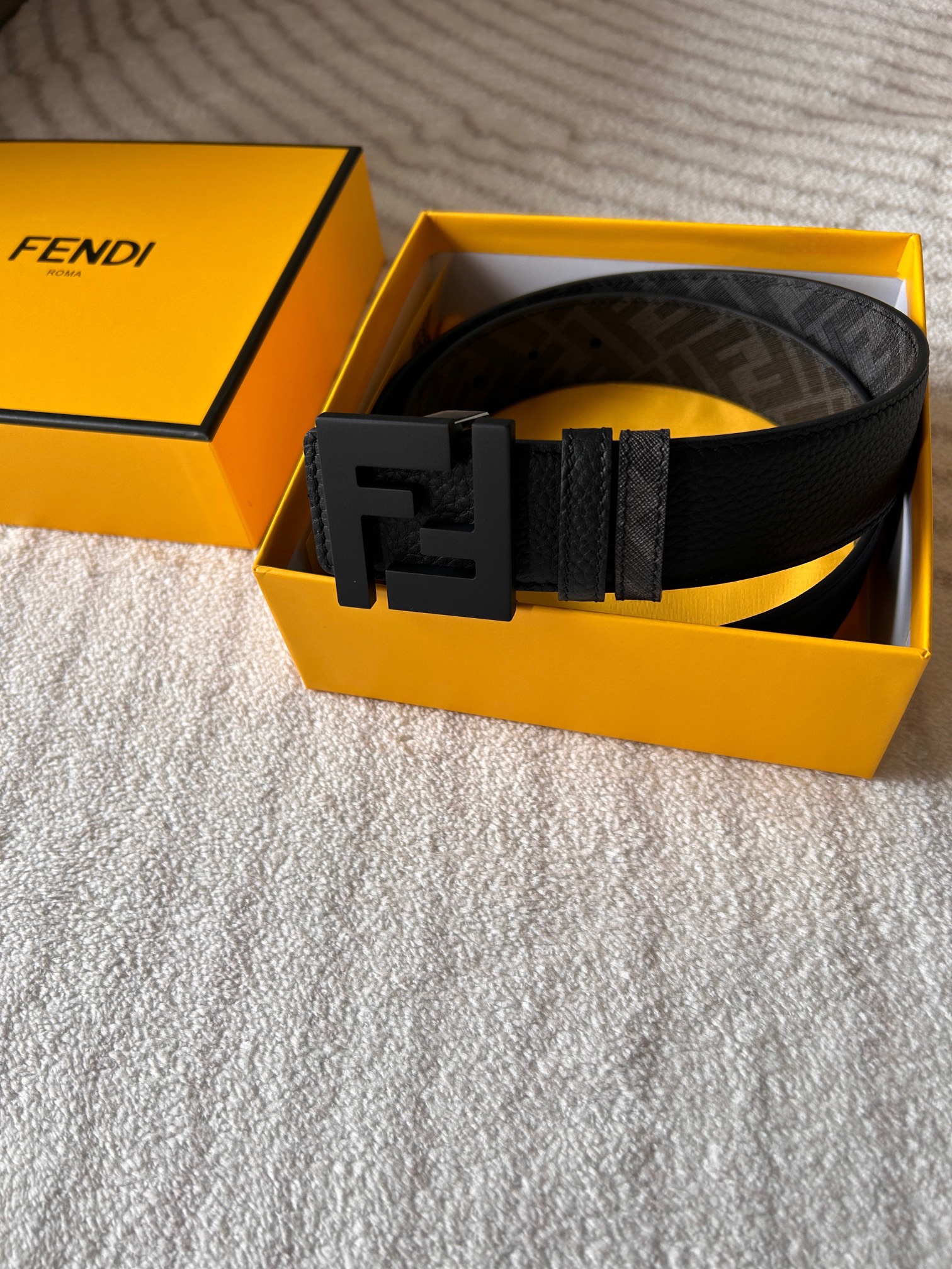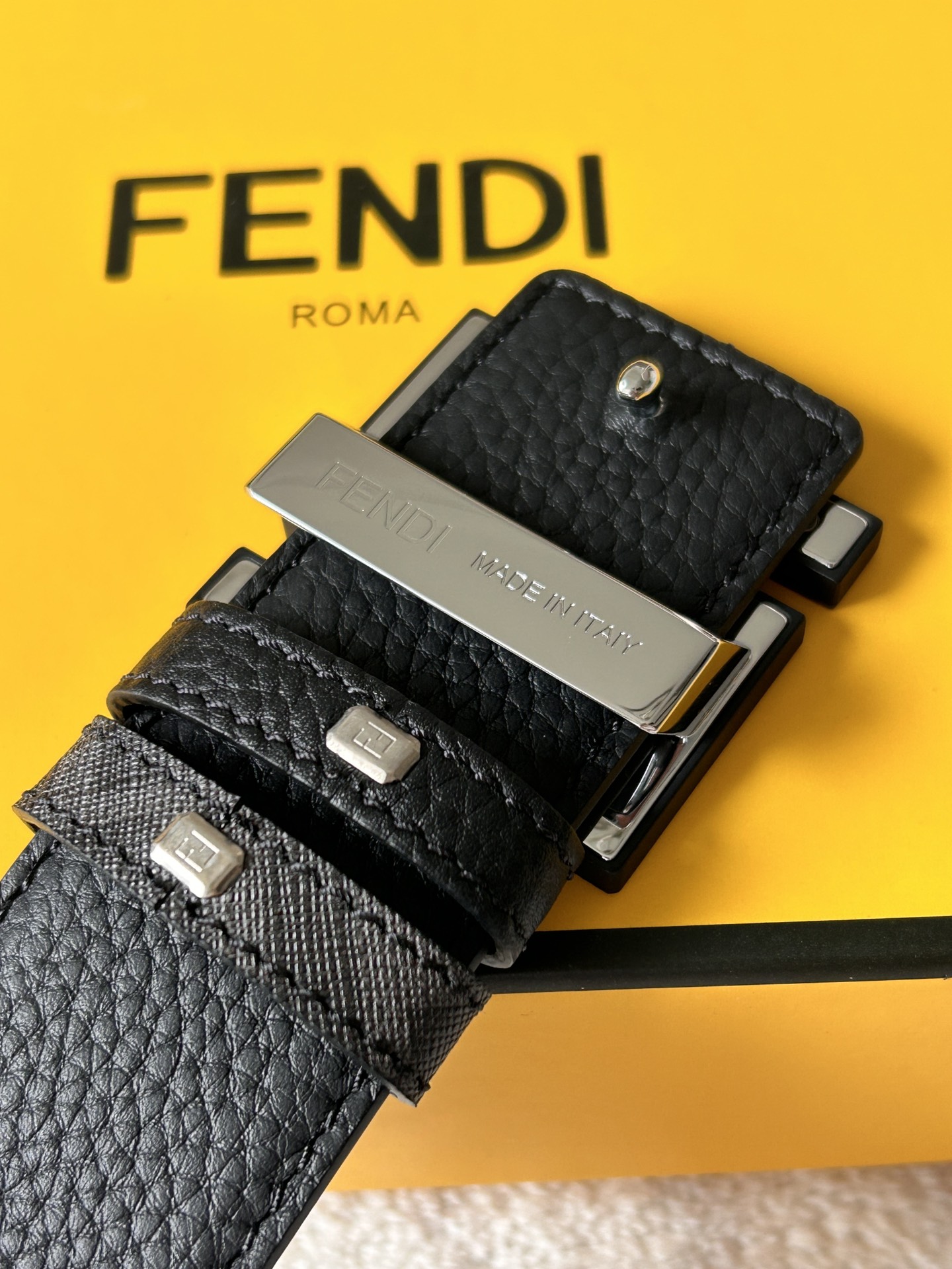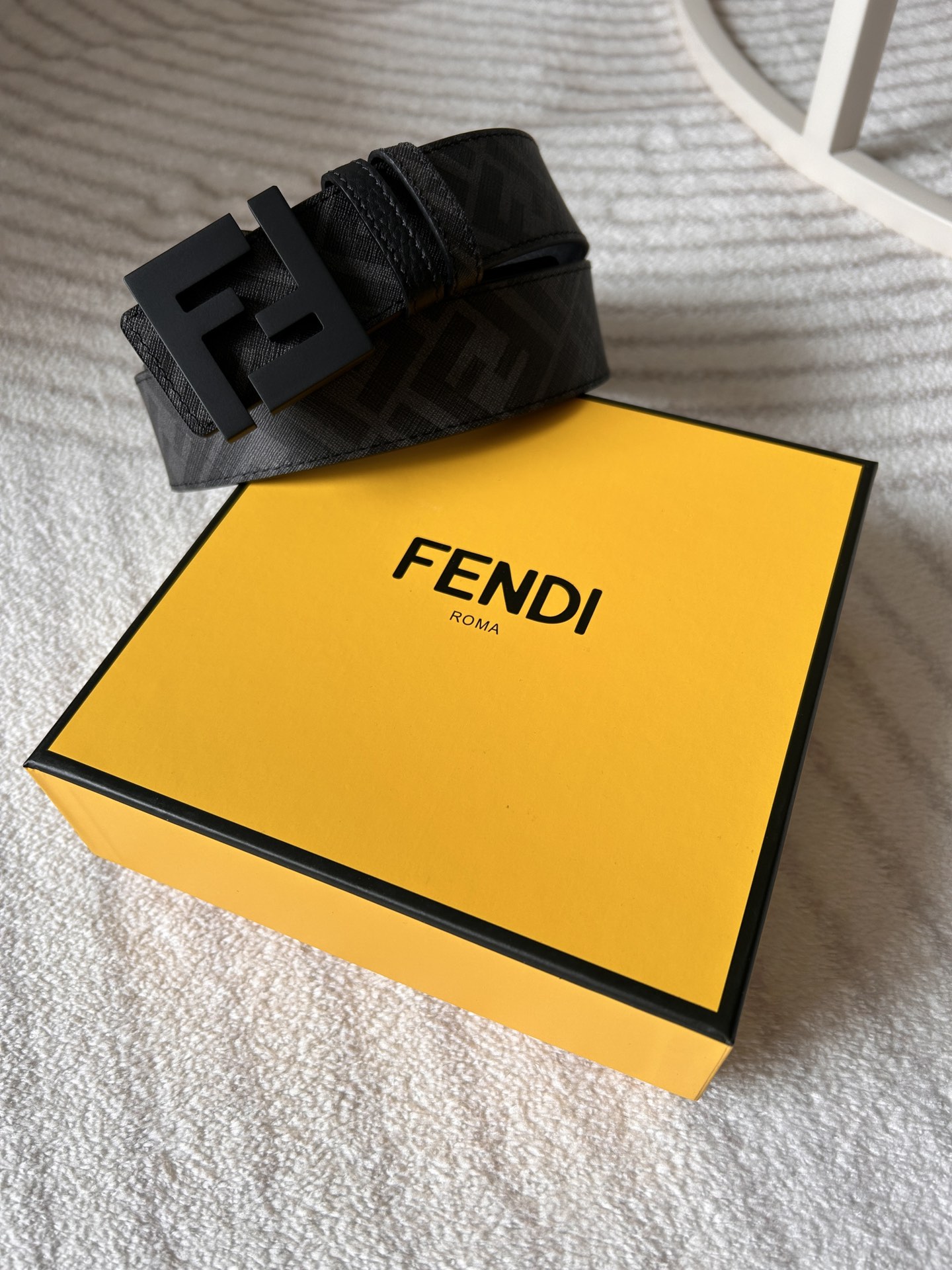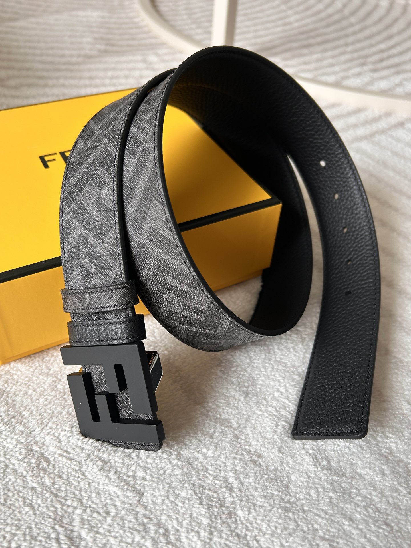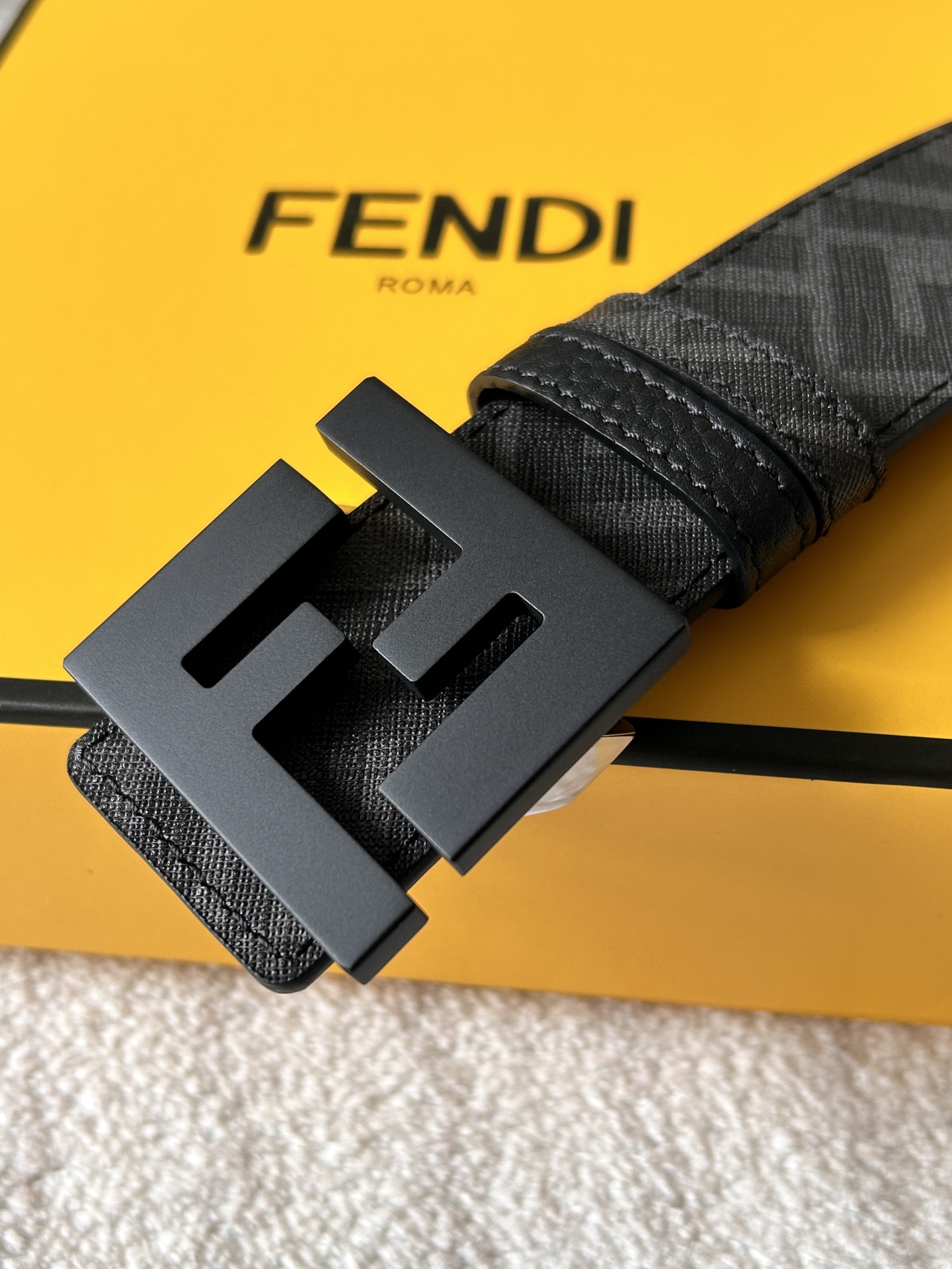 这款皮带是AAAAA 1:1 质量 (非常棒). 使用了和原版一模一样的材料. 商标部分也保持了和芬迪/Fendi一样. 图片拍摄是实物皮带拍摄, 您所收到的实物保证和我们图片一模一样.