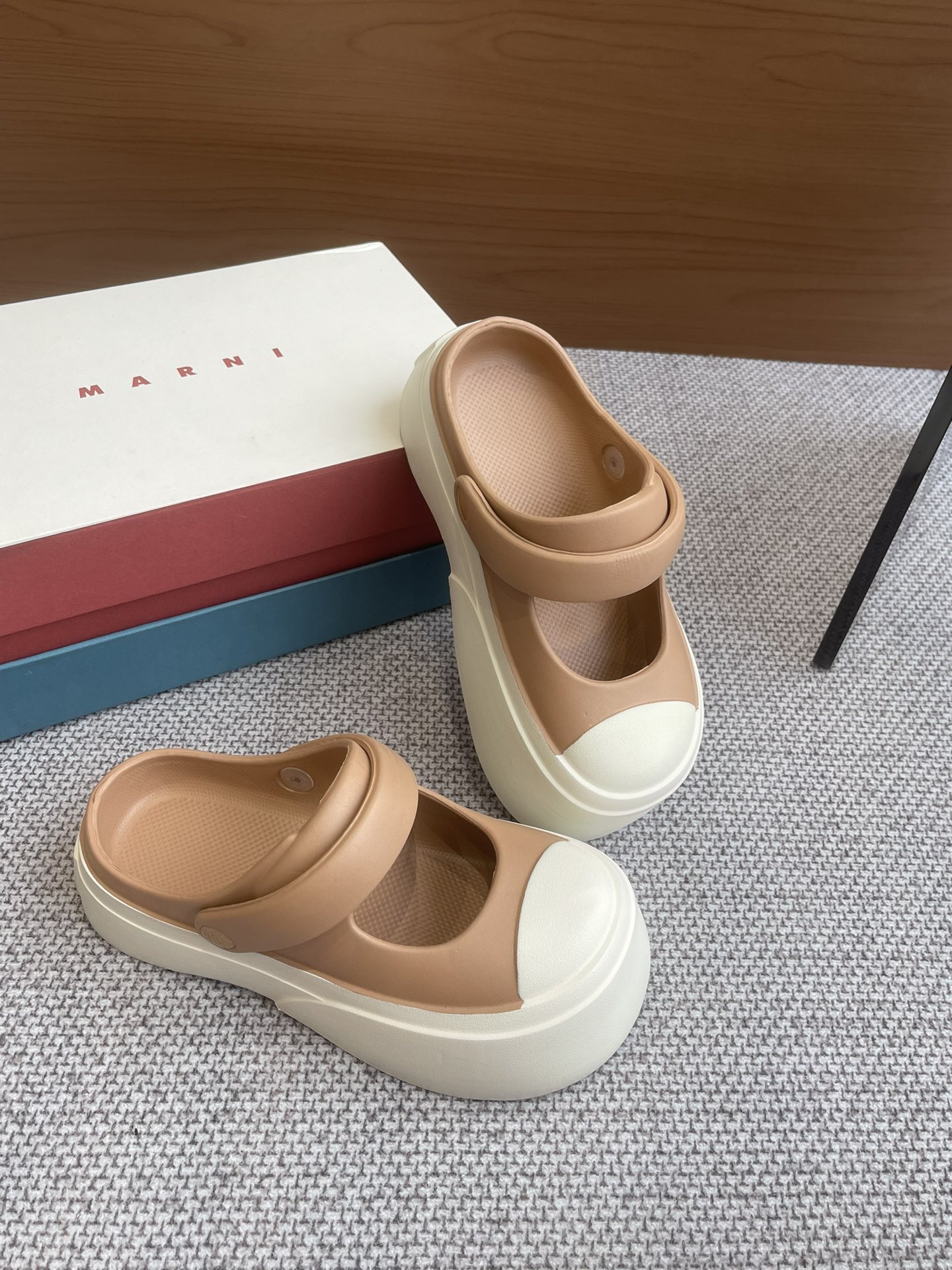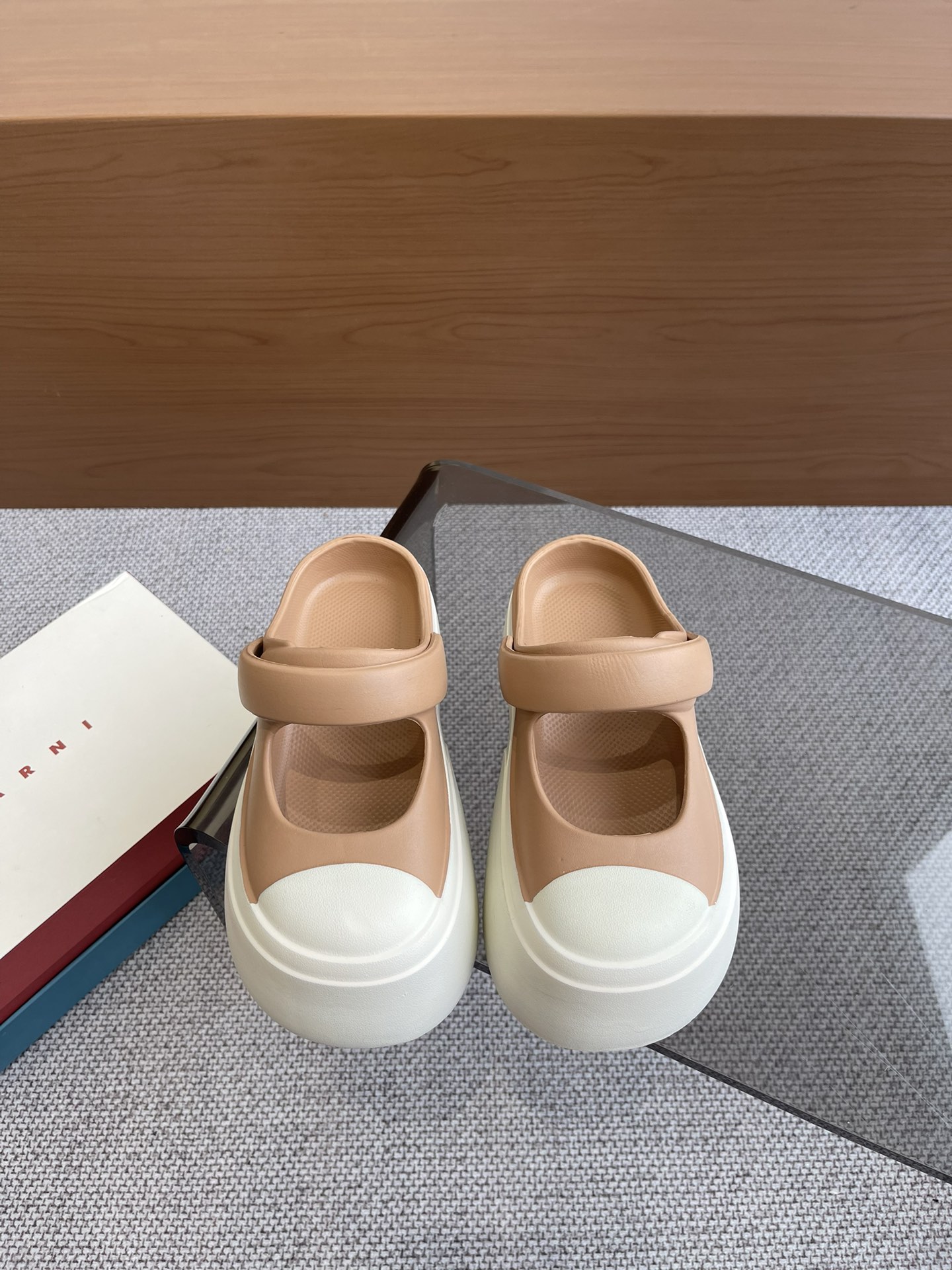 这款鞋子是AAAAA 1:1 质量 (非常棒). 使用了和原版一模一样的材料. 商标部分也保持了和马尔尼/Marni一样. 图片拍摄是实物鞋子拍摄, 您所收到的实物保证和我们图片一模一样.