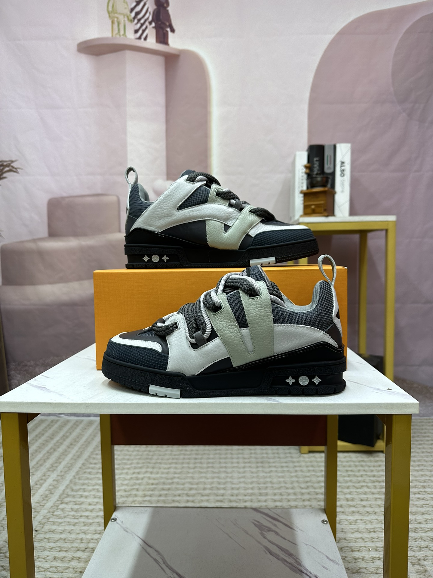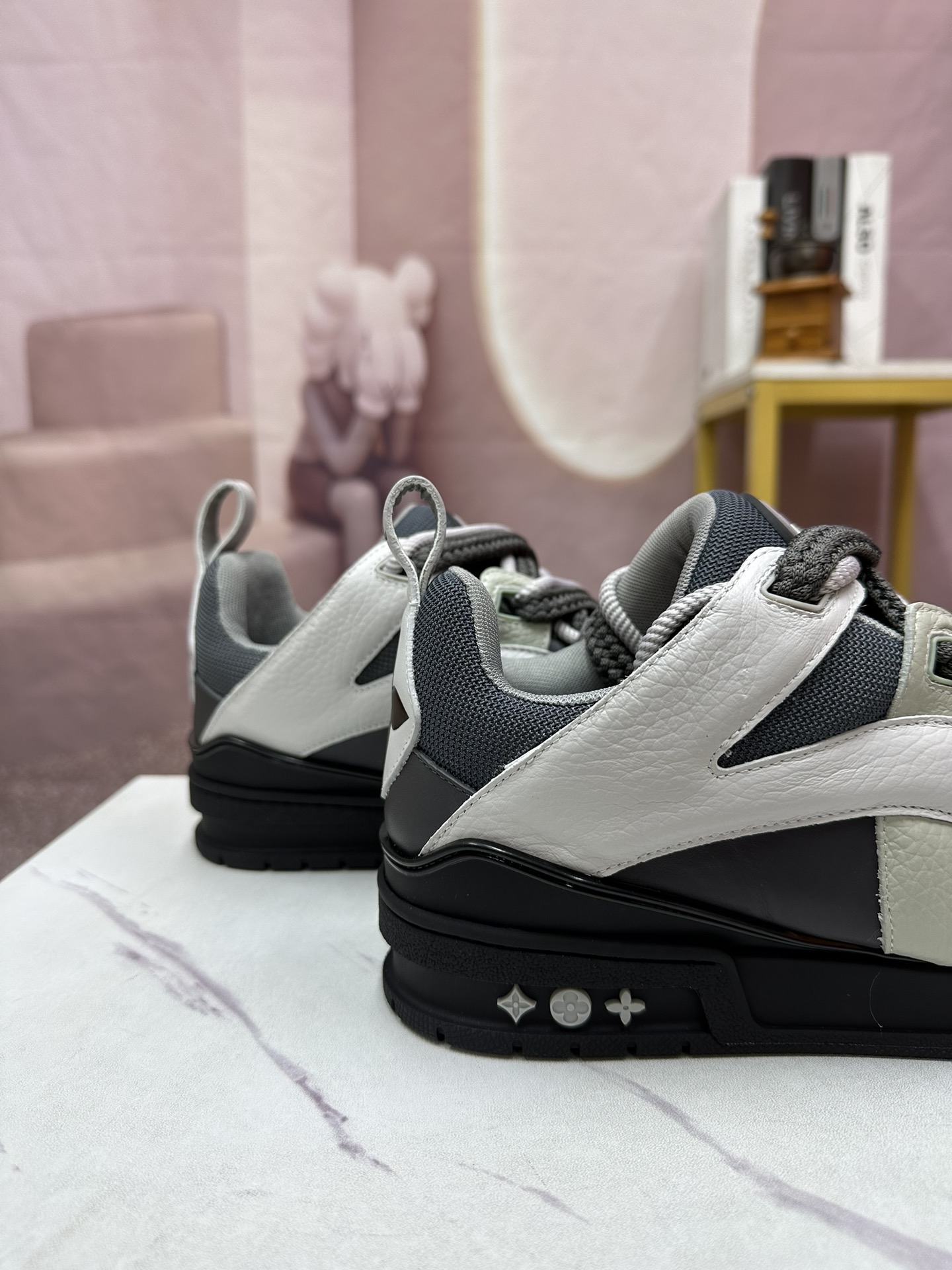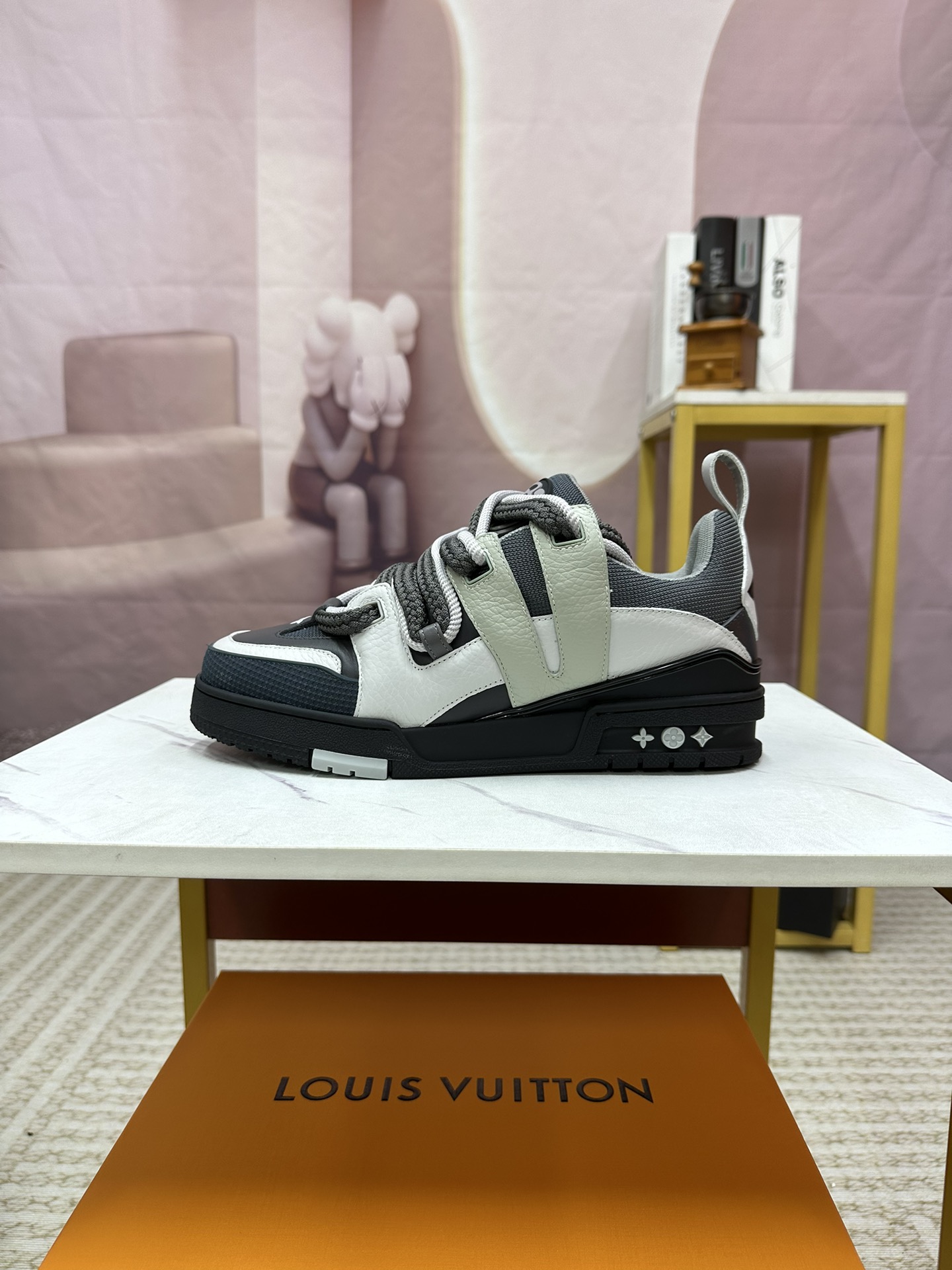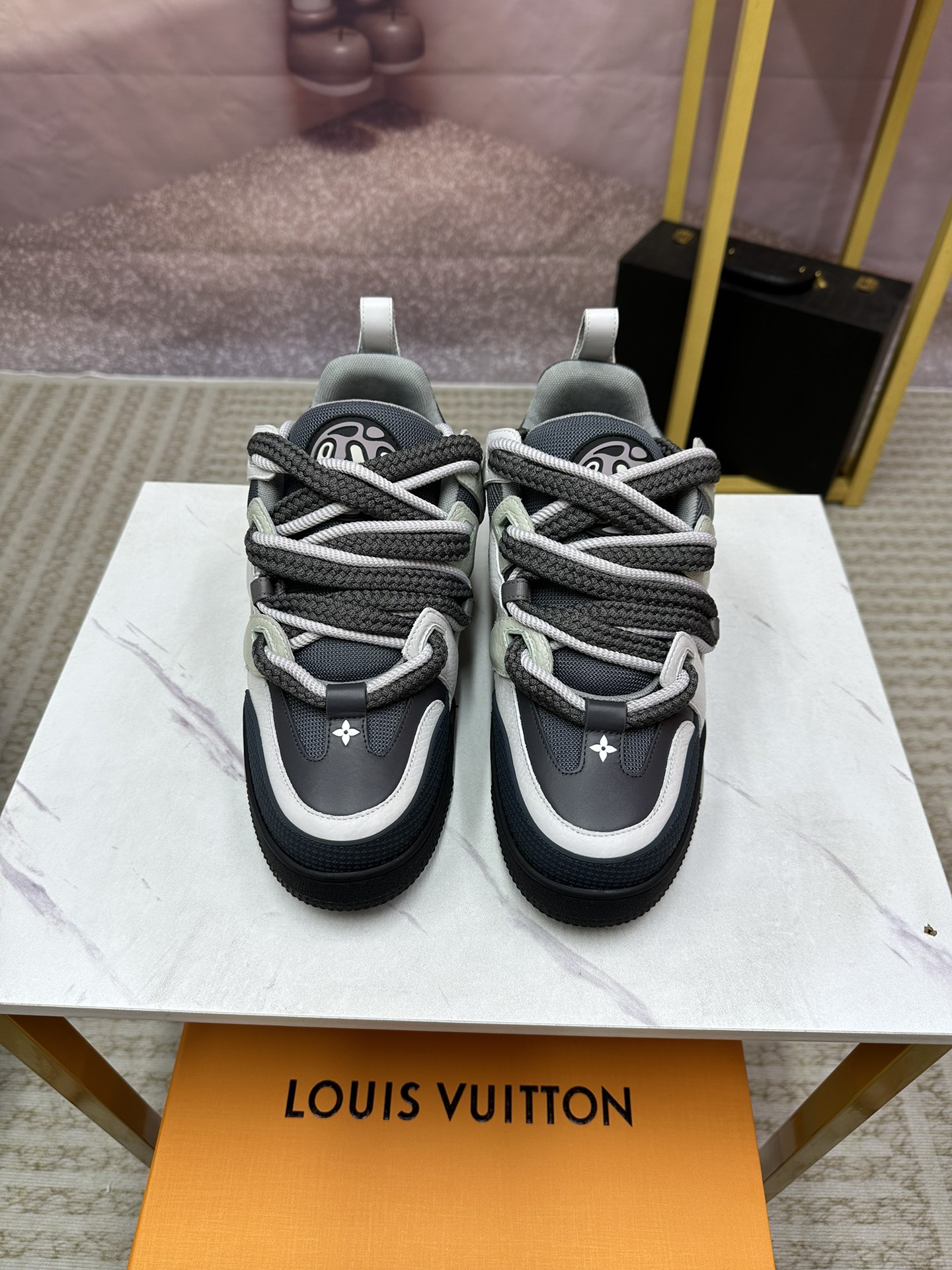 这款鞋子是AAAAA 1:1 质量 (非常棒). 使用了和原版一模一样的材料. 商标部分也保持了和路易威登/Louis Vuitton一样. 图片拍摄是实物鞋子拍摄, 您所收到的实物保证和我们图片一模一样.