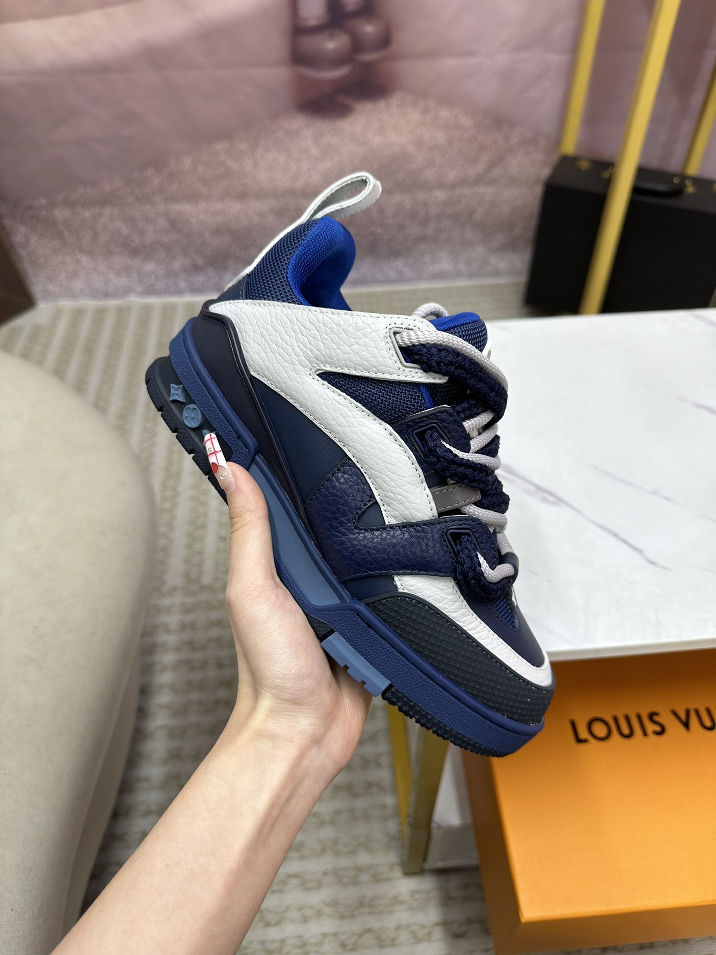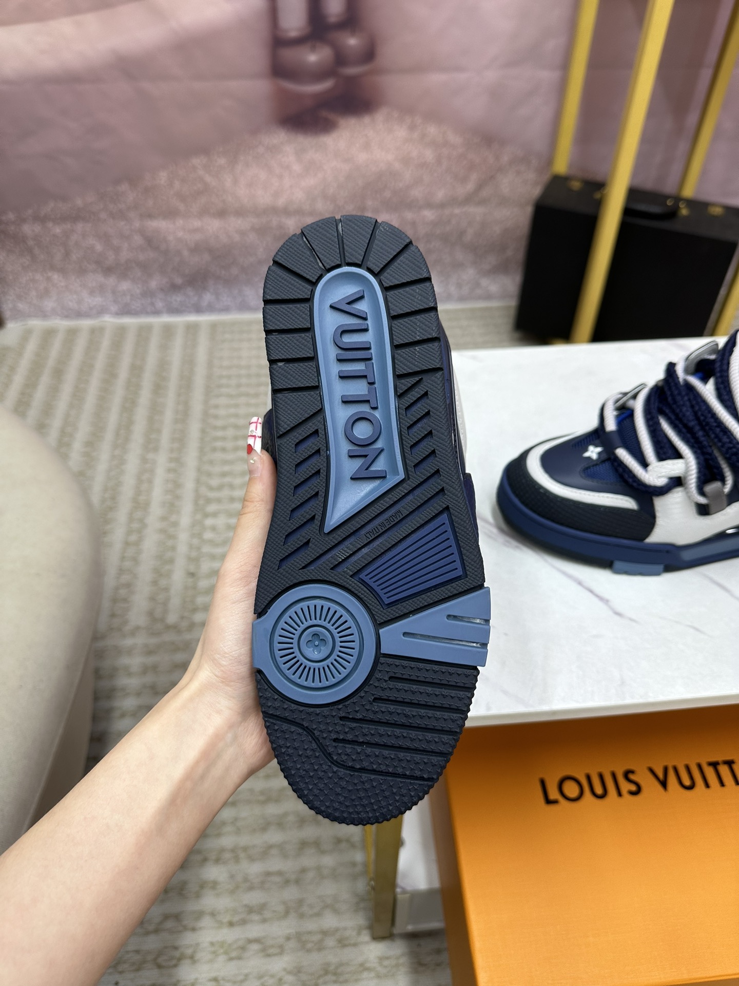 这款鞋子是AAAAA 1:1 质量 (非常棒). 使用了和原版一模一样的材料. 商标部分也保持了和路易威登/Louis Vuitton一样. 图片拍摄是实物鞋子拍摄, 您所收到的实物保证和我们图片一模一样.