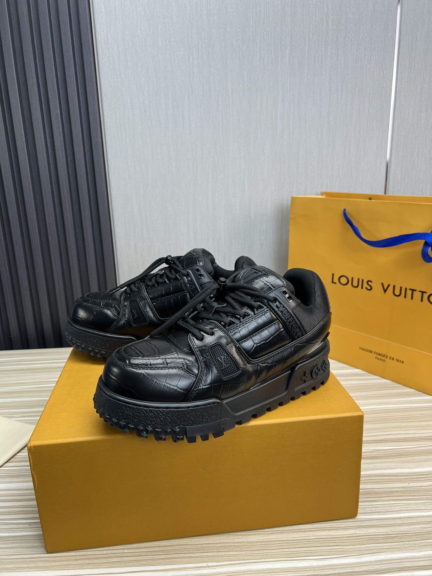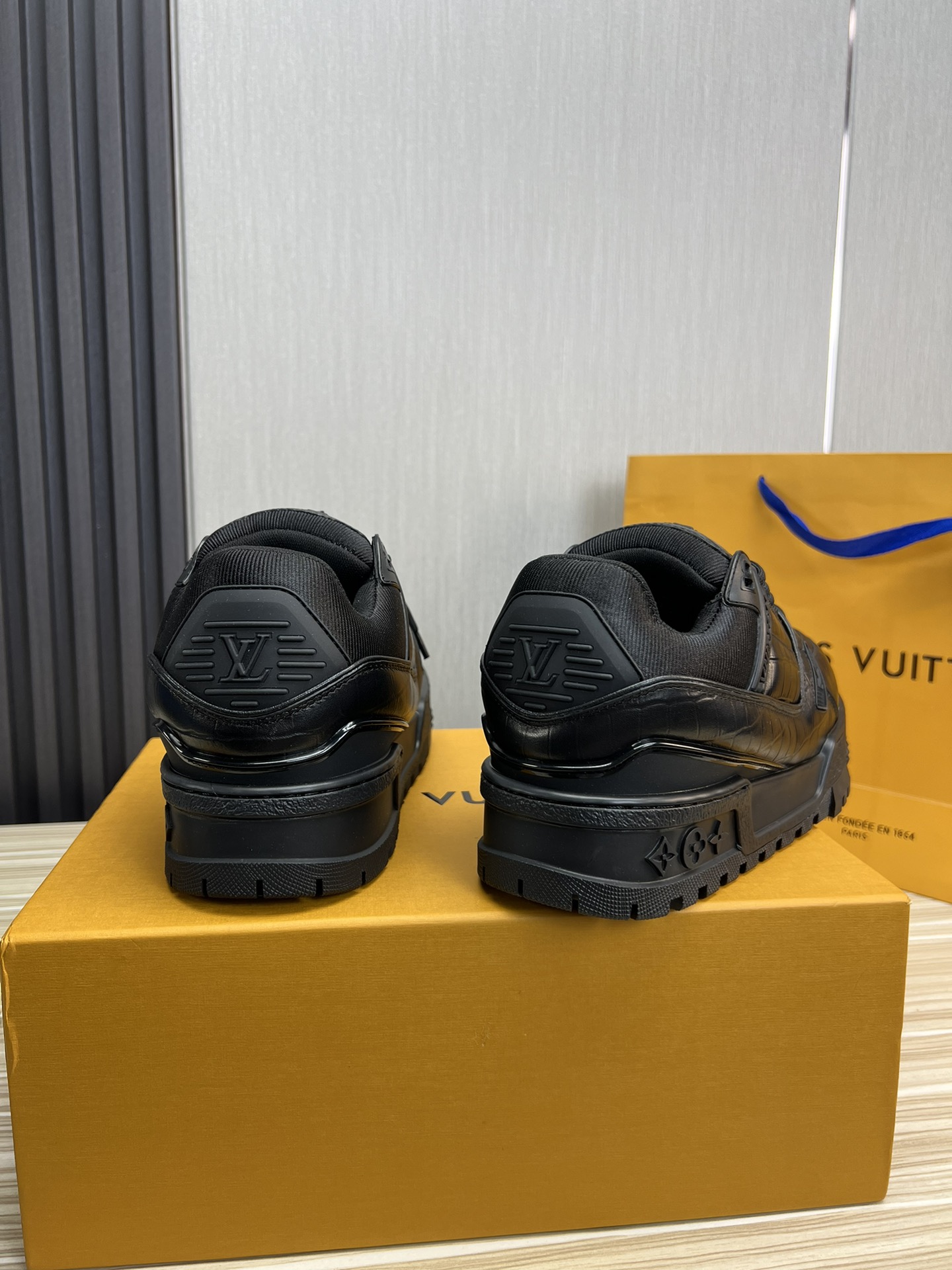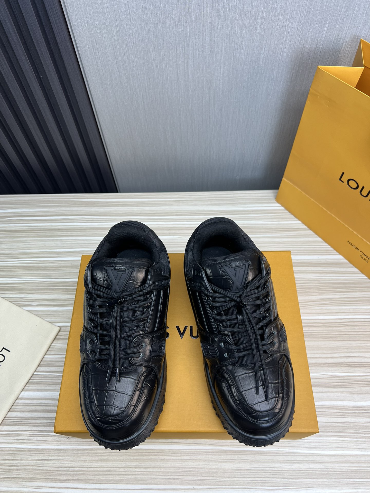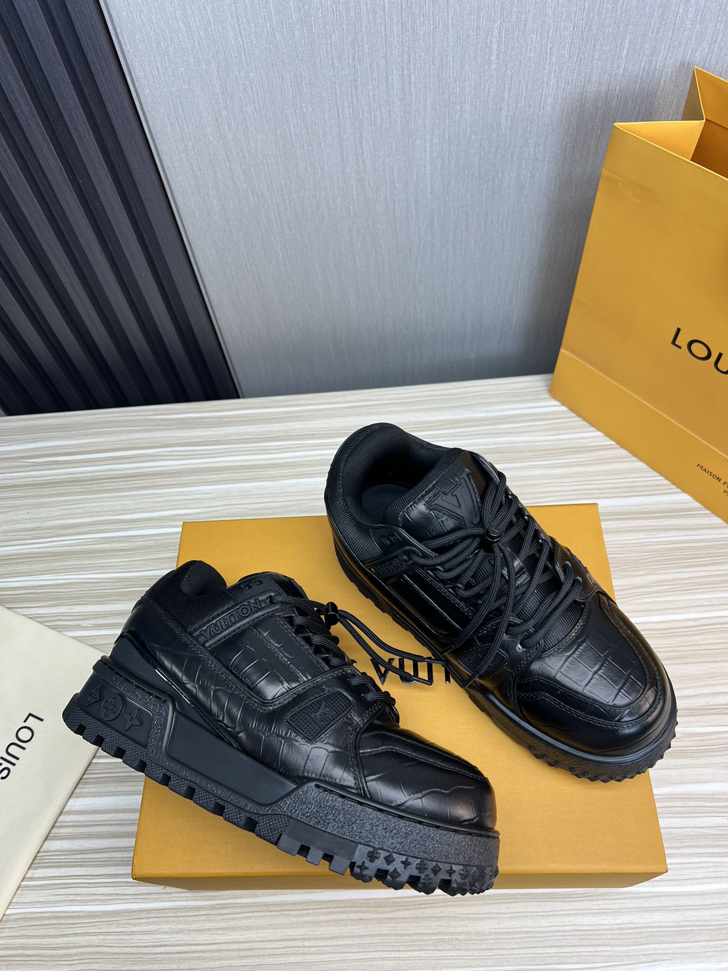 这款鞋子是AAAAA 1:1 质量 (非常棒). 使用了和原版一模一样的材料. 商标部分也保持了和路易威登/Louis Vuitton一样. 图片拍摄是实物鞋子拍摄, 您所收到的实物保证和我们图片一模一样.