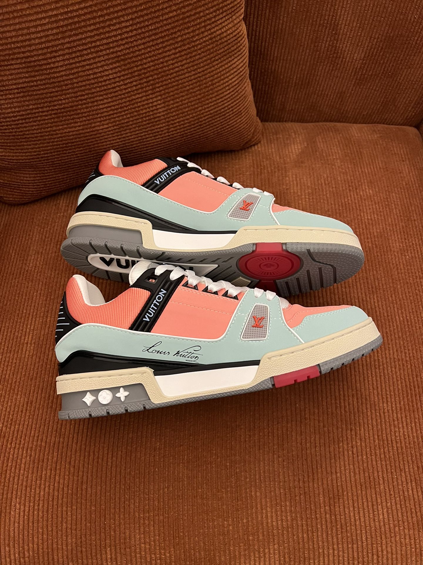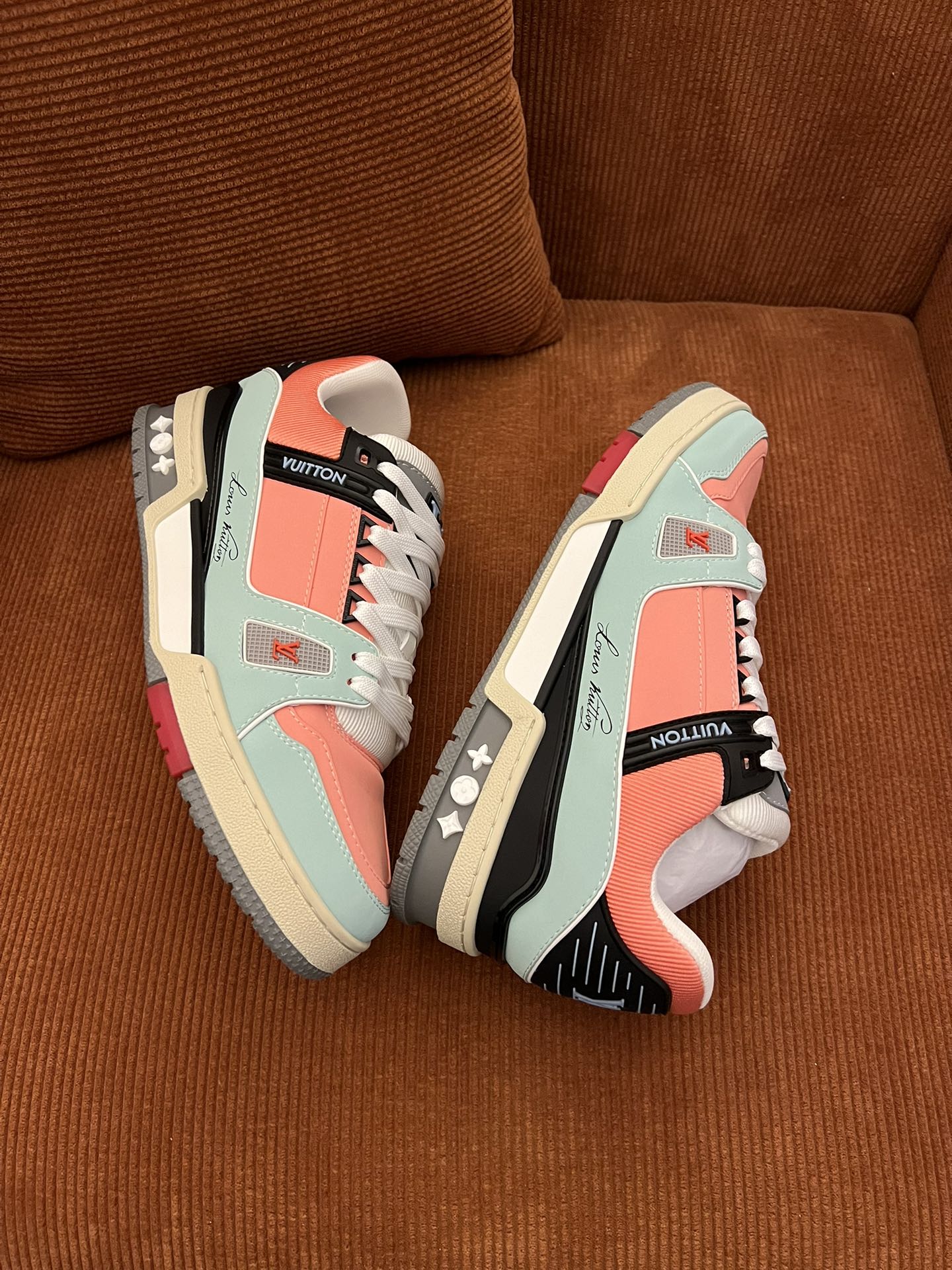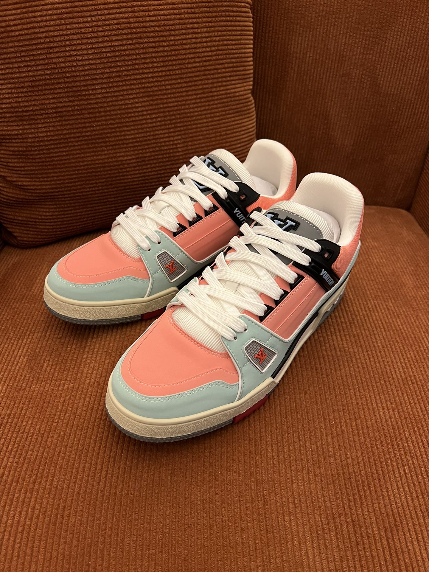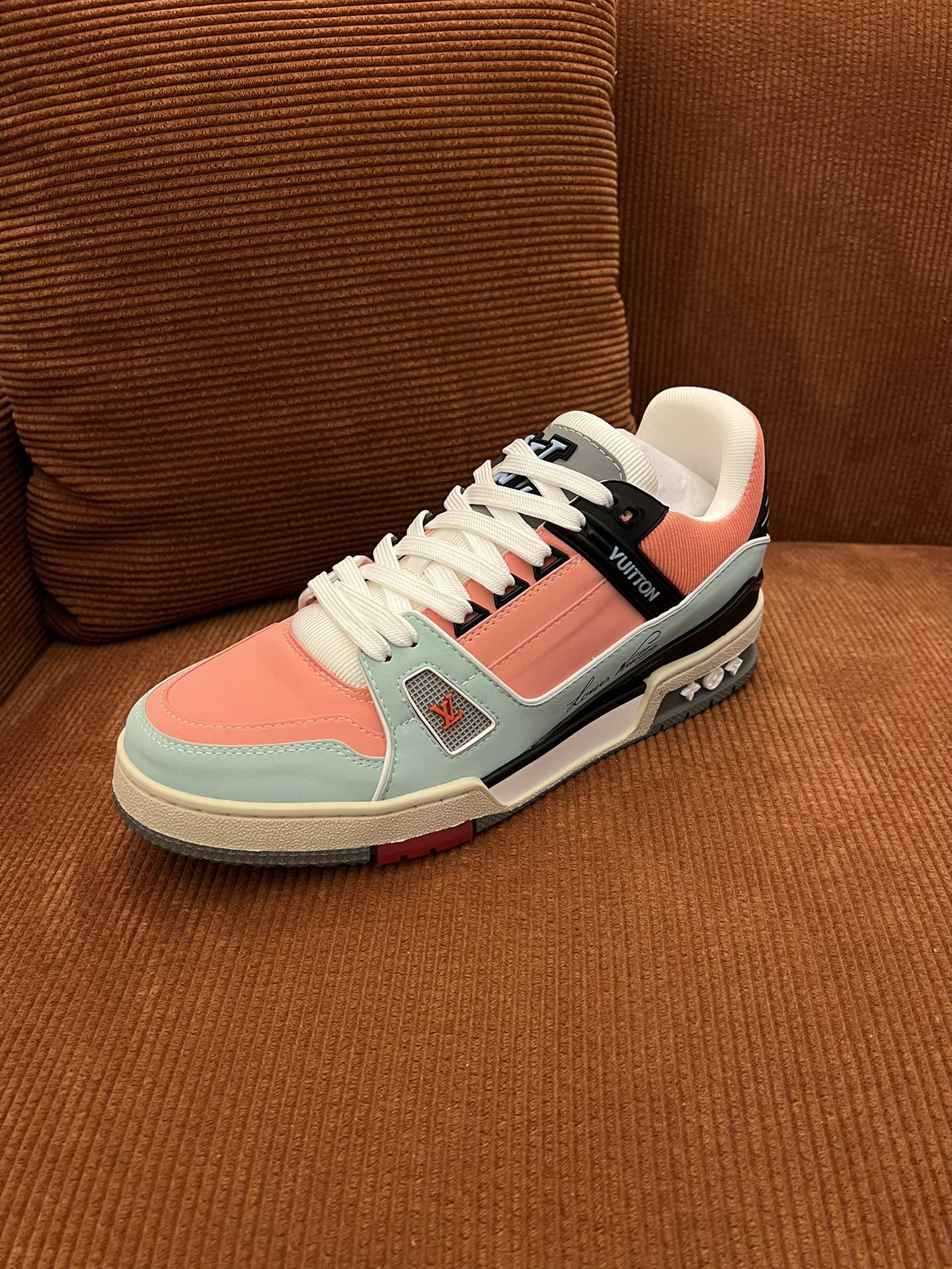 这款鞋子是AAAAA 1:1 质量 (非常棒). 使用了和原版一模一样的材料. 商标部分也保持了和路易威登/Louis Vuitton一样. 图片拍摄是实物鞋子拍摄, 您所收到的实物保证和我们图片一模一样.