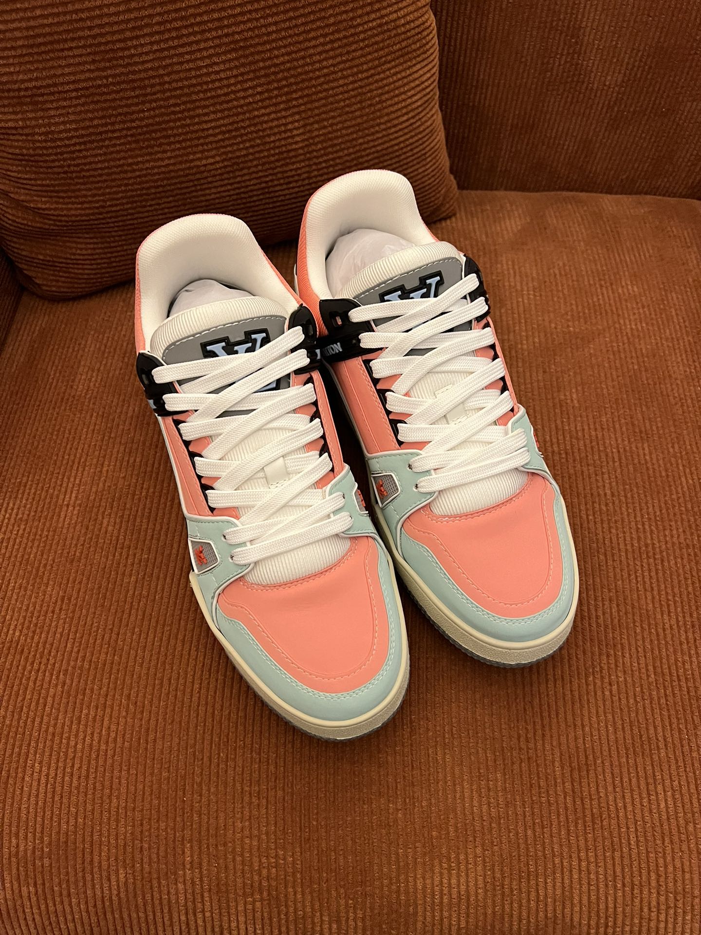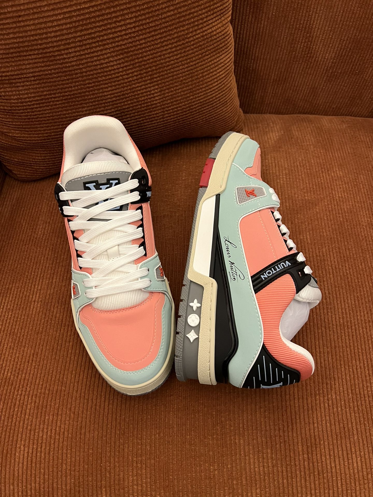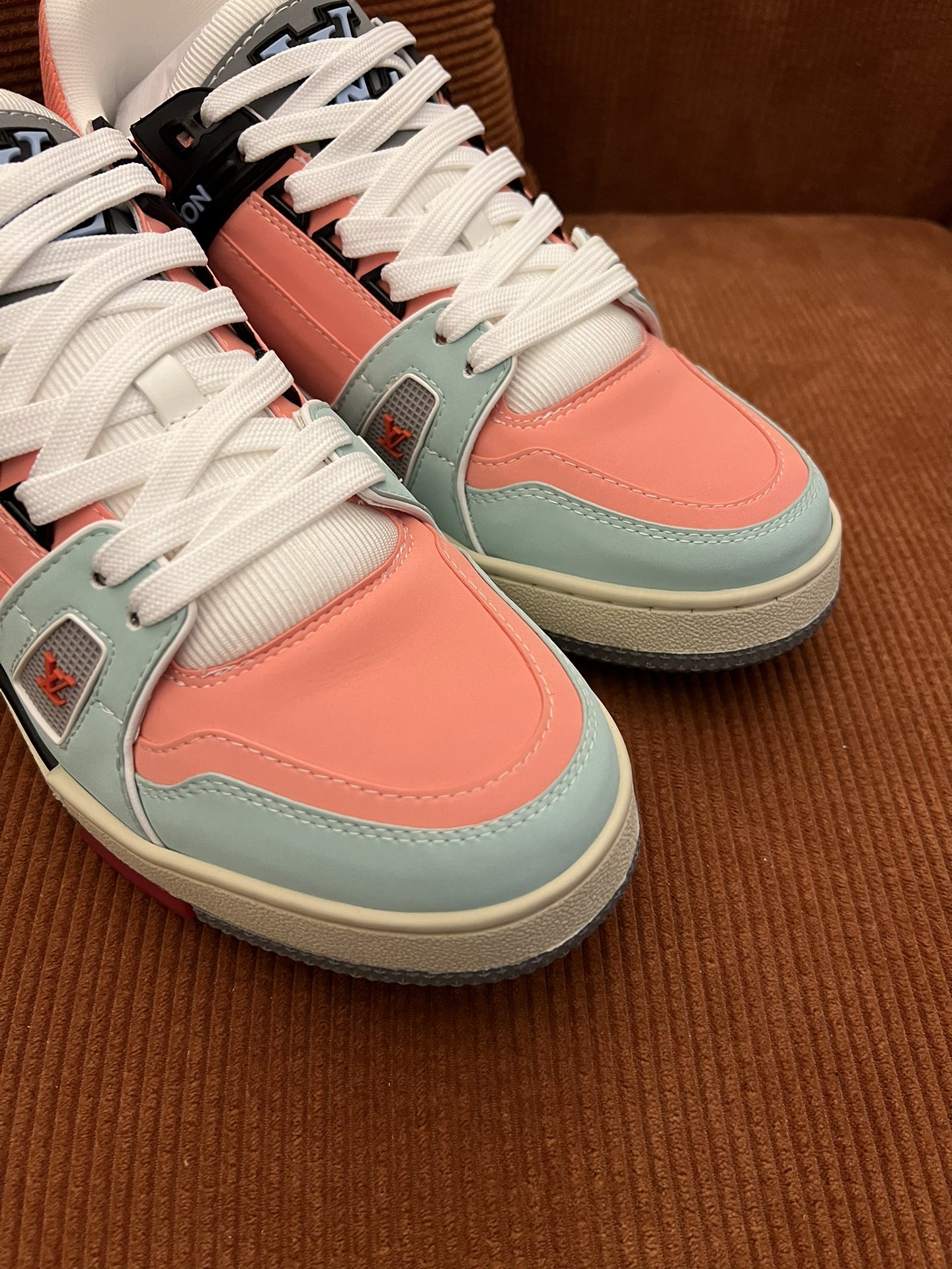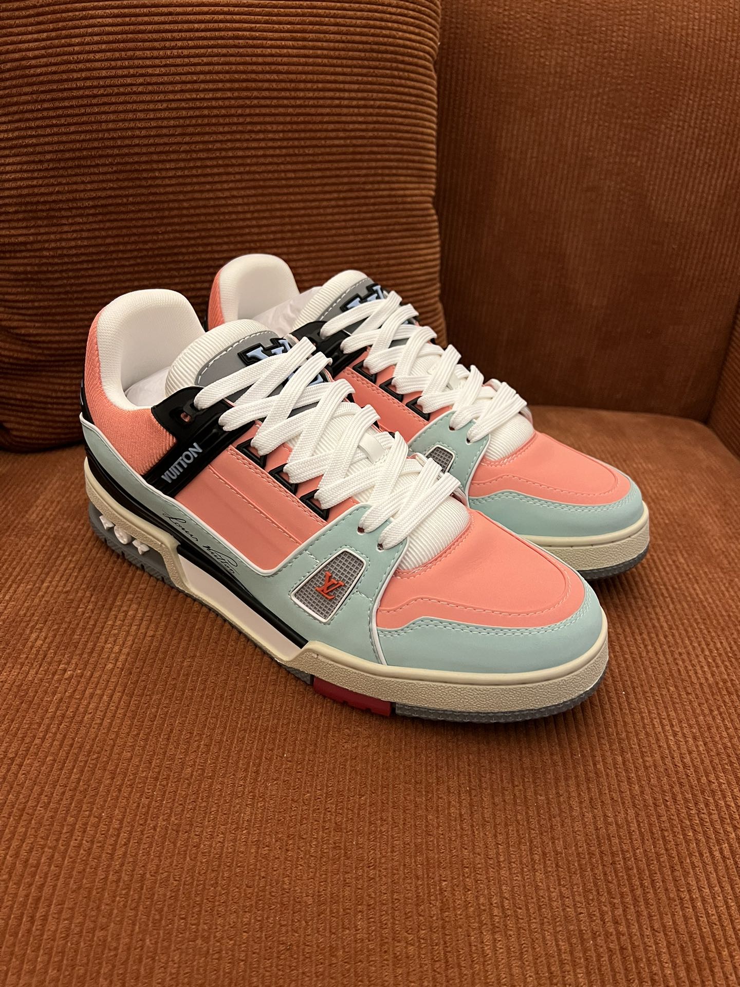 这款鞋子是AAAAA 1:1 质量 (非常棒). 使用了和原版一模一样的材料. 商标部分也保持了和路易威登/Louis Vuitton一样. 图片拍摄是实物鞋子拍摄, 您所收到的实物保证和我们图片一模一样.