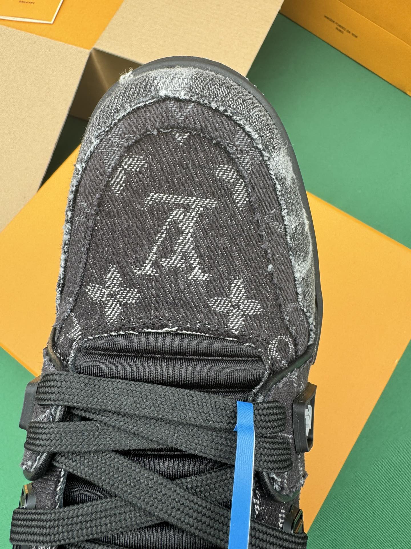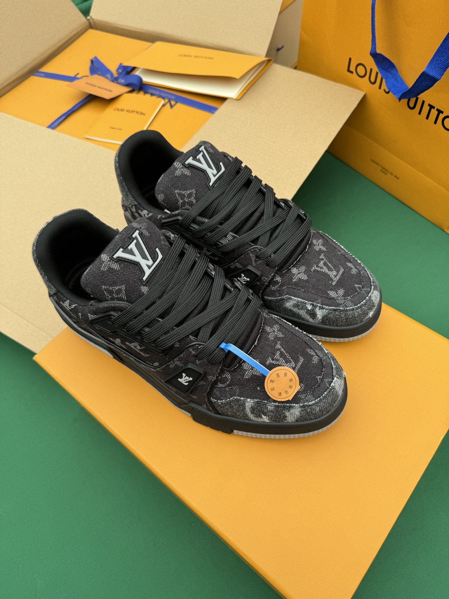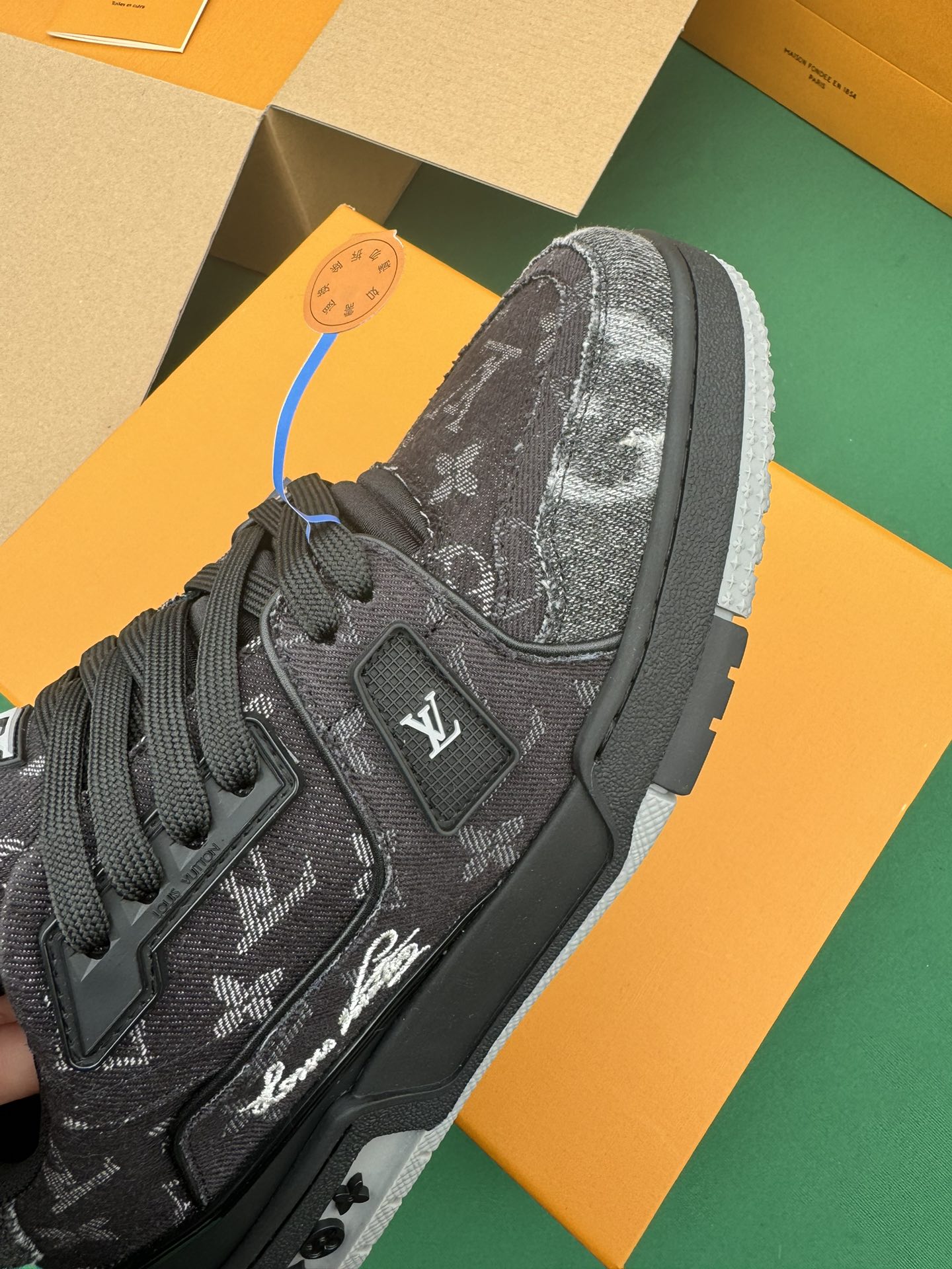 这款鞋子是AAAAA 1:1 质量 (非常棒). 使用了和原版一模一样的材料. 商标部分也保持了和路易威登/Louis Vuitton一样. 图片拍摄是实物鞋子拍摄, 您所收到的实物保证和我们图片一模一样.