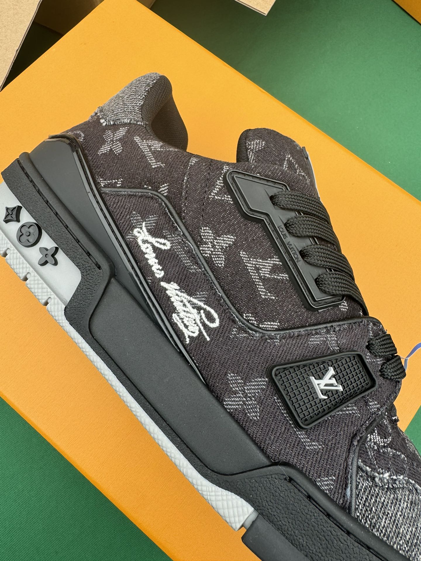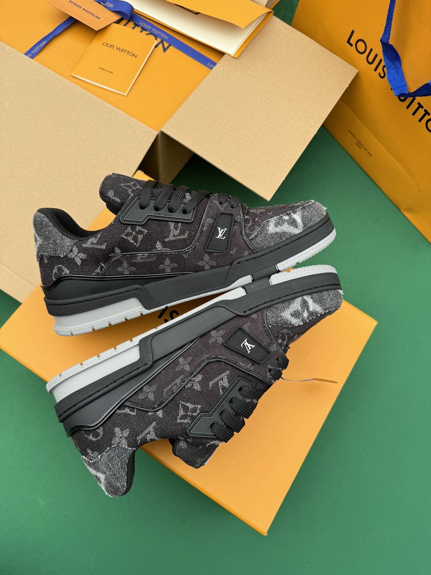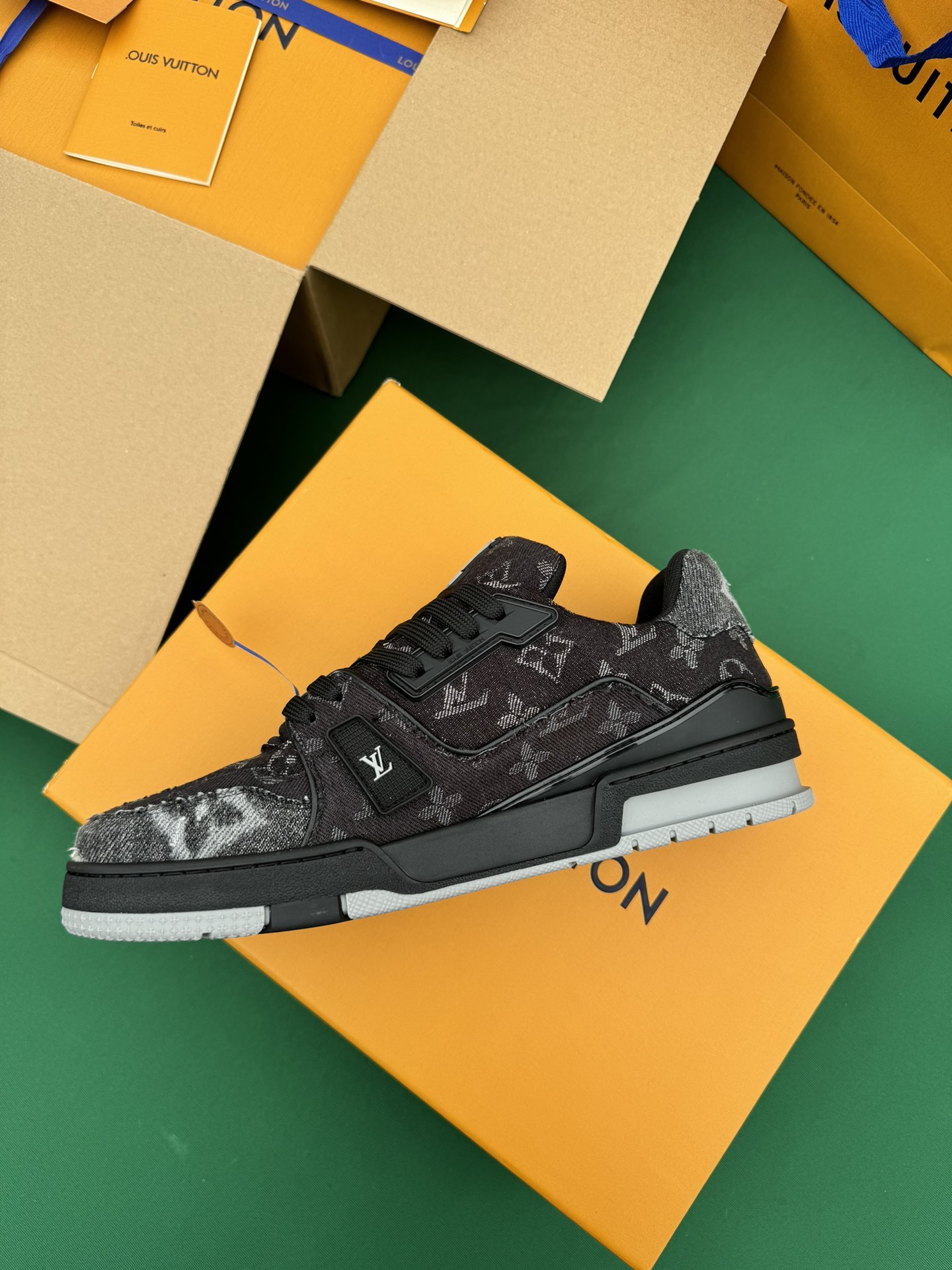 这款鞋子是AAAAA 1:1 质量 (非常棒). 使用了和原版一模一样的材料. 商标部分也保持了和路易威登/Louis Vuitton一样. 图片拍摄是实物鞋子拍摄, 您所收到的实物保证和我们图片一模一样.