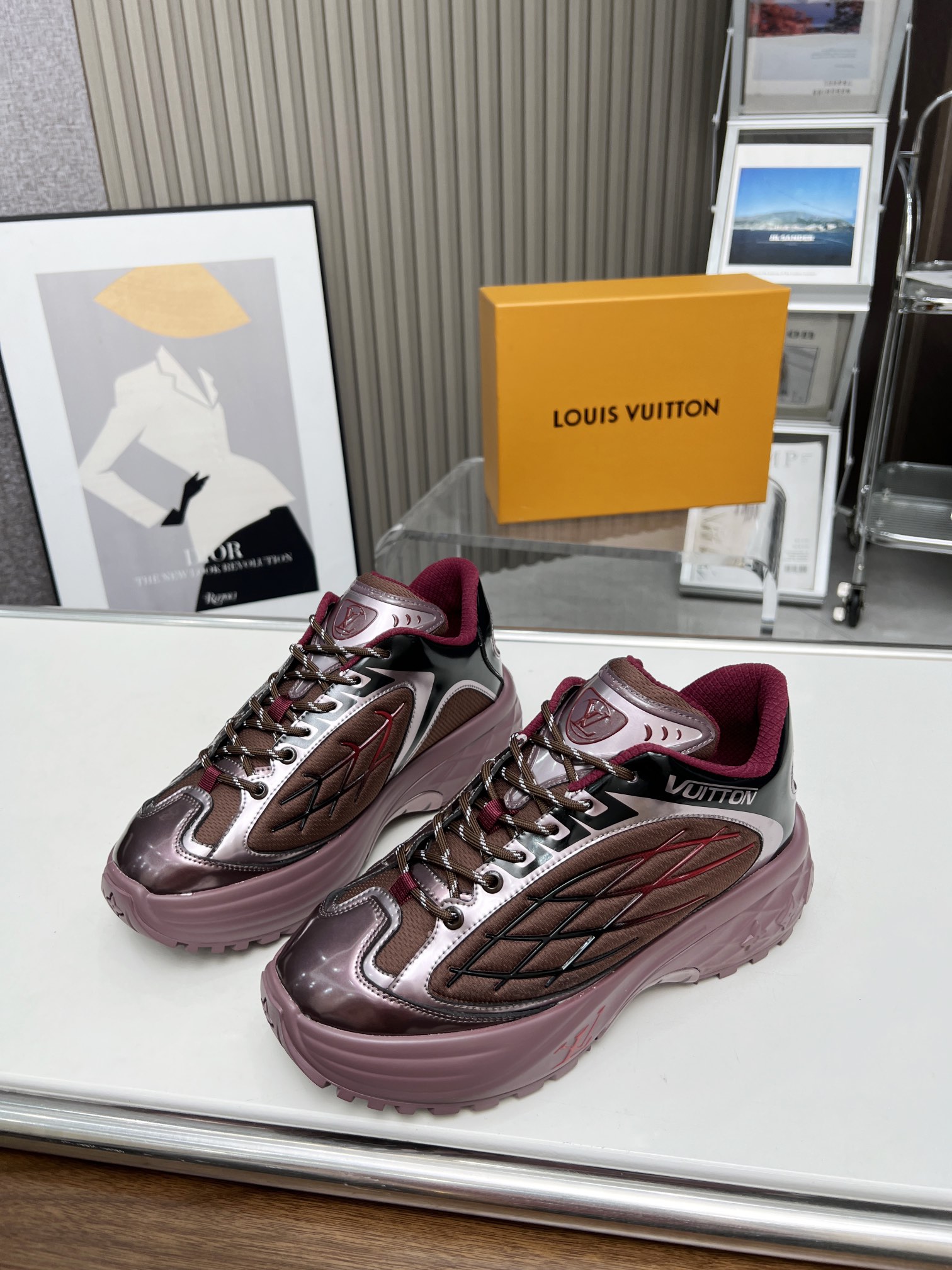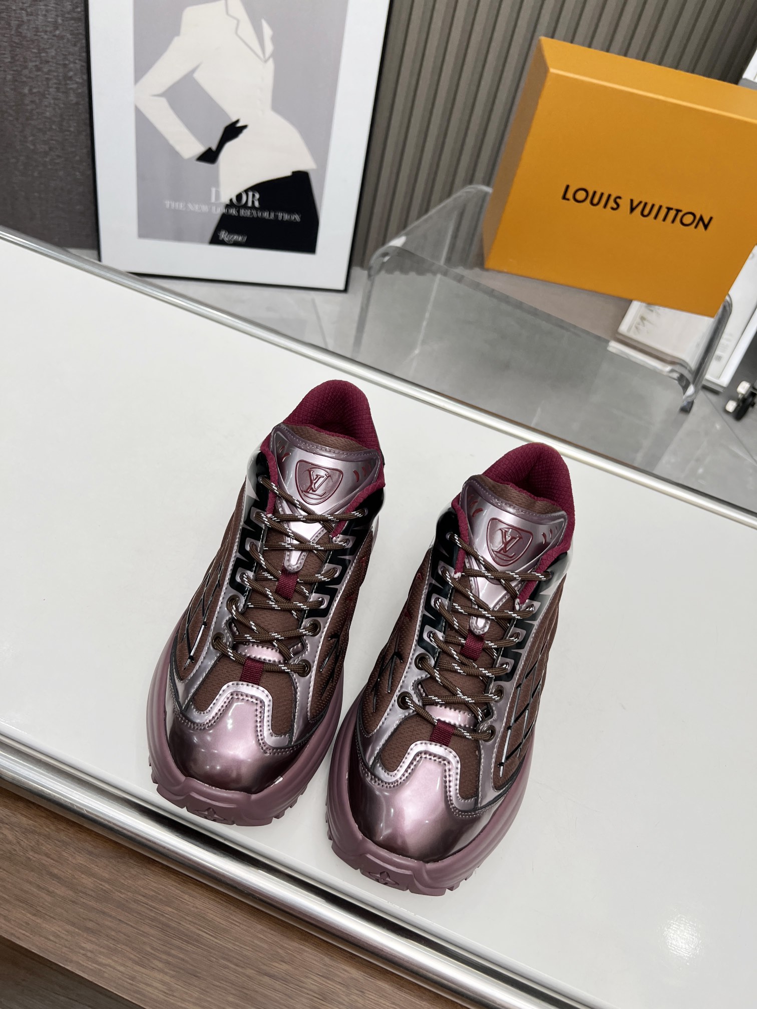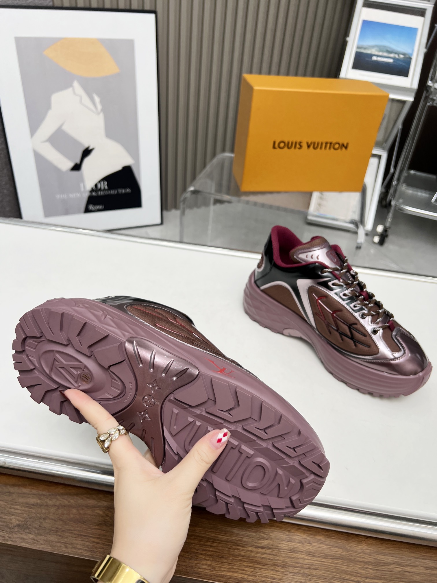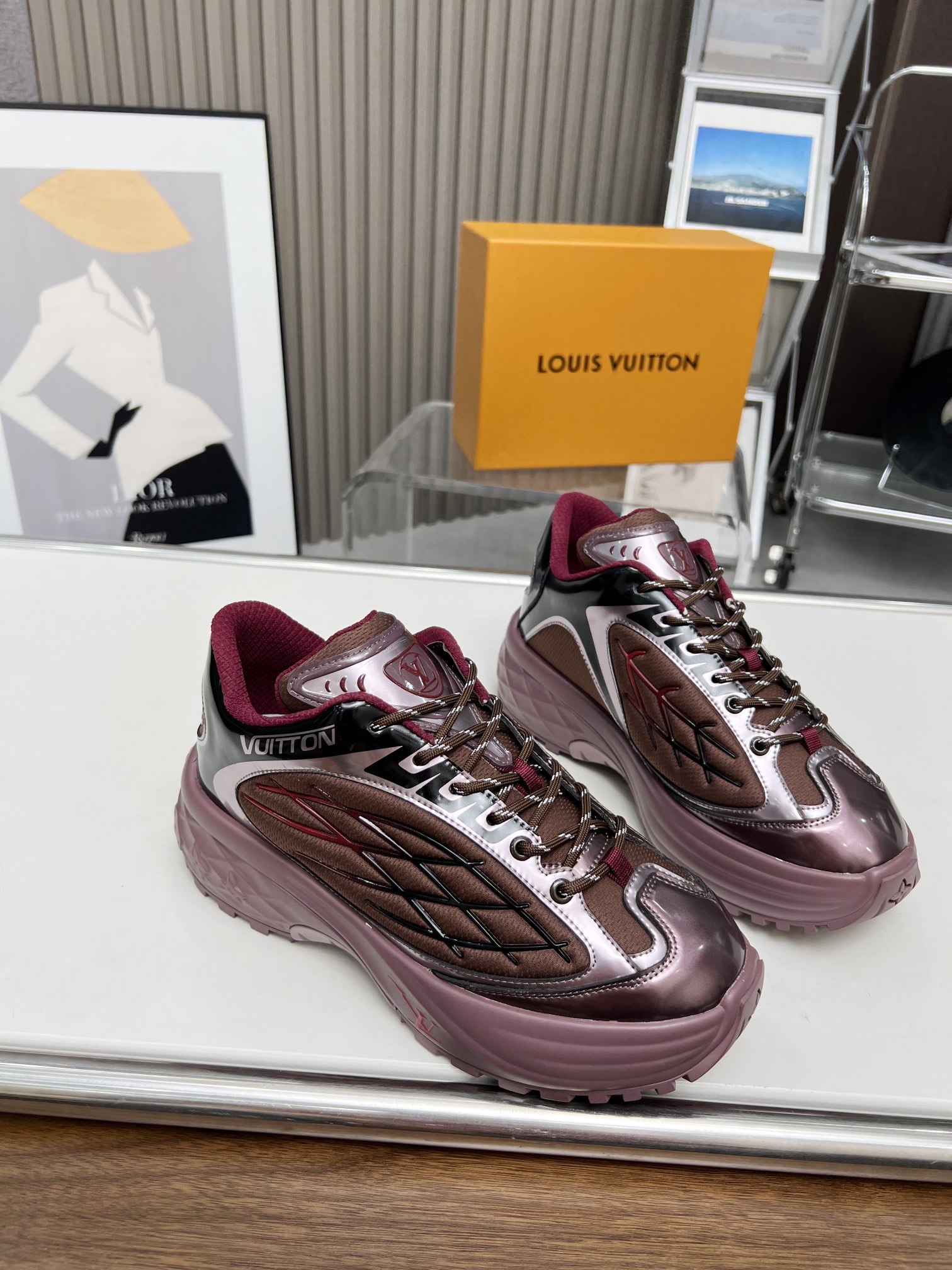 这款鞋子是AAAAA 1:1 质量 (非常棒). 使用了和原版一模一样的材料. 商标部分也保持了和路易威登/Louis Vuitton一样. 图片拍摄是实物鞋子拍摄, 您所收到的实物保证和我们图片一模一样.